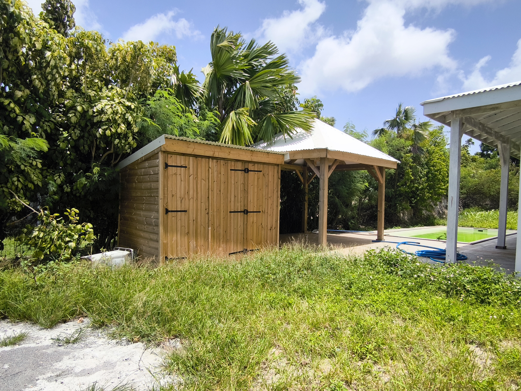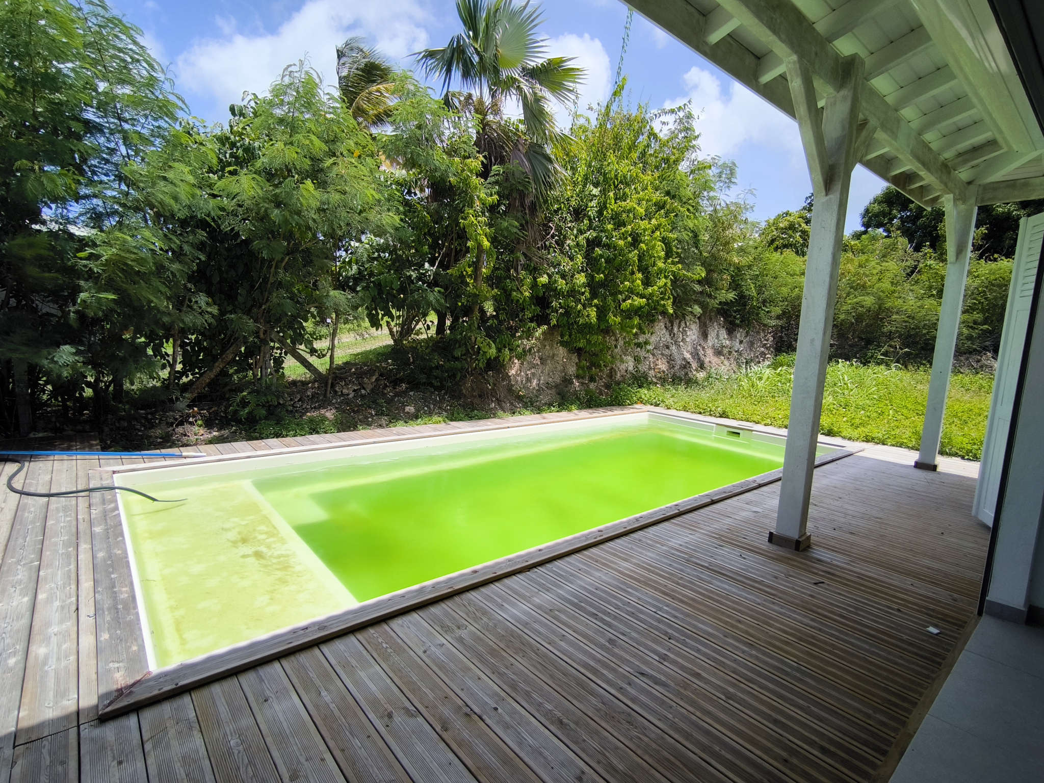 Une galerie d'environ 12m2, un carbet et une plage de deck entoure sa piscine et vous appportera un confort primordial à la vie sous les tropiques.