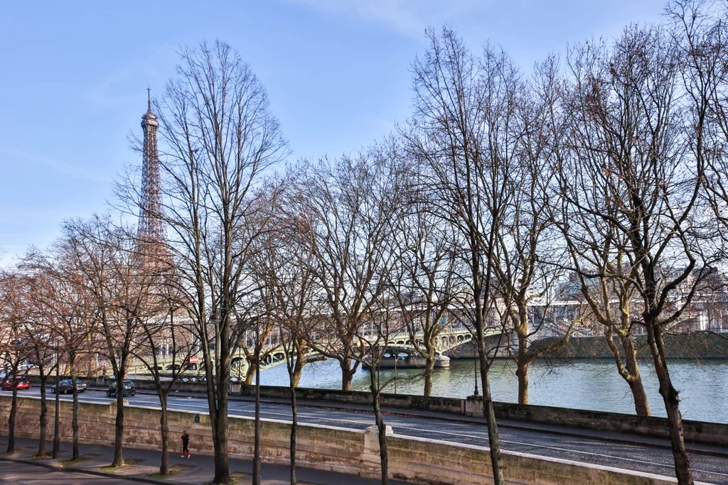 Situé avenue du Président Kennedy, au 1er étage d’un élégant immeuble Art déco avec gardien, cet appartement d’exception de 81 m² a été entièrement rénové par architecte, avec des prestations haut de gamme et un sens aigu du détail. Il se compose d’un double séjour lumineux offrant une vue imprenable sur la Tour Eiffel et la Seine, sublimé par une cheminée et une bibliothèque sur mesure, conférant à l’ensemble un charme rare et une atmosphère chaleureuse. La cuisine américaine entièrement équipée, avec îlot central et table dînatoire, s’intègre parfaitement à l’espace de vie et invite à la convivialité. L’espace nuit propose deux chambres, chacune disposant de sa salle d’eau, ainsi qu’un walking-closet, deux WC et de nombreux rangements optimisés. Une cave complète ce bien. Un appartement alliant élégance parisienne, vues emblématiques et confort contemporain, dans l’un des secteurs les plus recherchés de l’Ouest parisien.