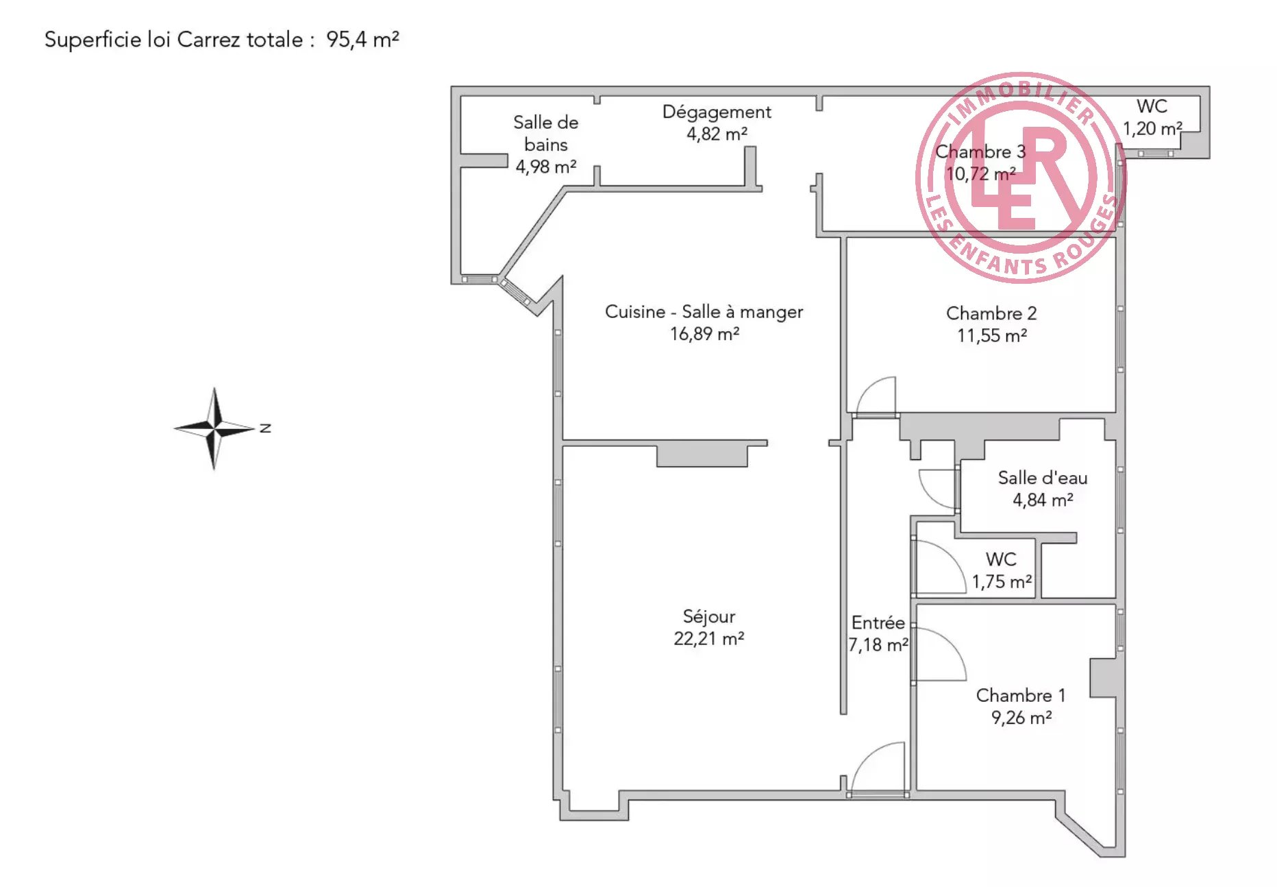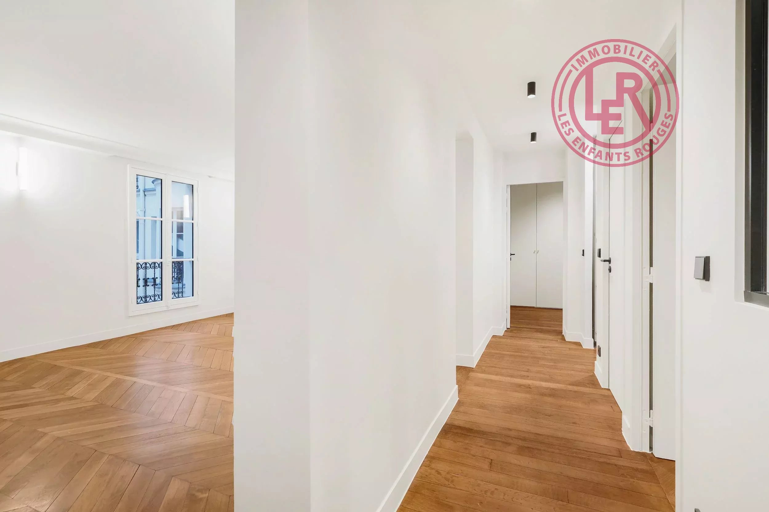 L’Agence des Enfants Rouges vous propose : Situé dans un emplacement recherché du haut du 9ᵉ arrondissement, à deux pas du square Berlioz, cet appartement de 95,40 m² loi Carrez, entièrement rénové, se trouve au deuxième étage par escalier. Il offre une entrée, un vaste double séjour, une cuisine ouverte donnant sur la salle à manger, ainsi que trois chambres confortables. L’une d’elles constitue une suite parentale disposant de sa salle de bains, d’un dressing et de toilettes. Une salle de douche et des toilettes séparées. Une cave vient compléter l’ensemble. Calme et lumineux, ce bien séduit par la qualité de sa rénovation, ses beaux volumes et ses prestations soignées. « Les informations sur les risques auxquels ce bien est exposé sont disponibles sur le site Géorisques : www.georisques.gouv.fr »