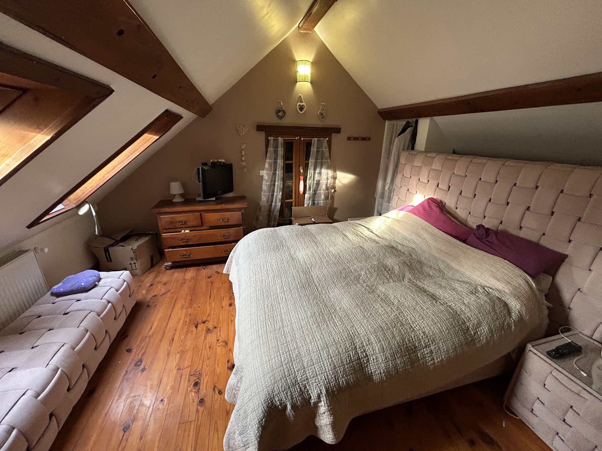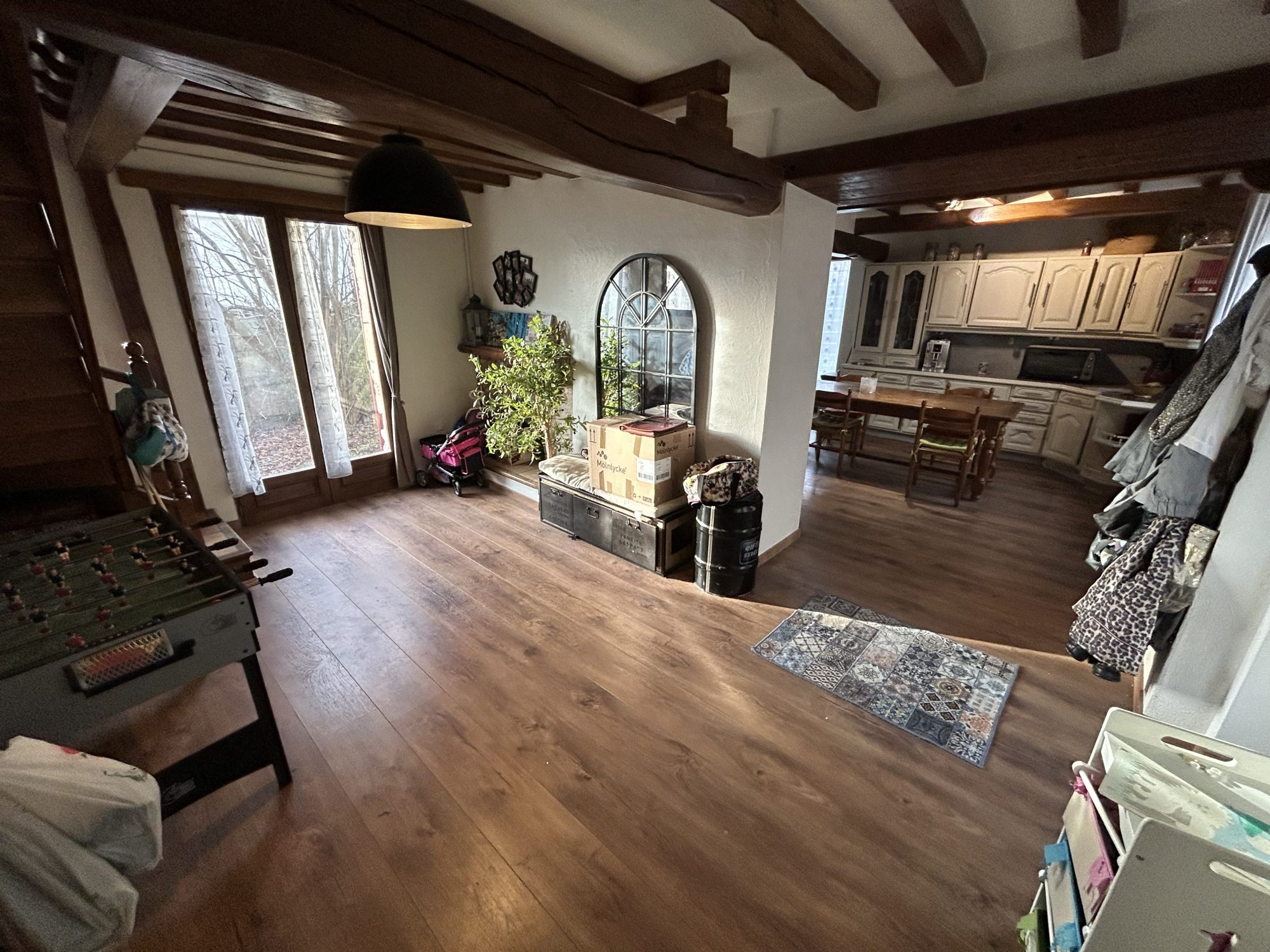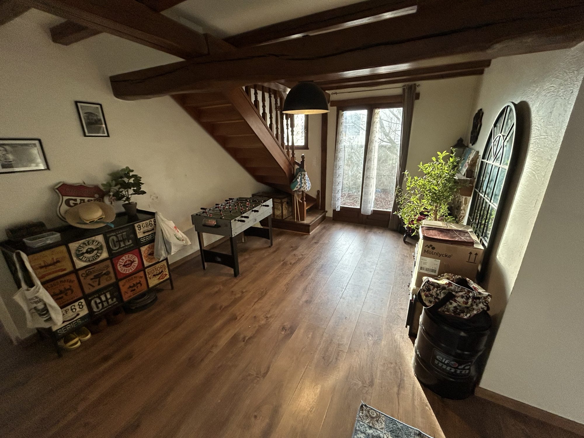 Au rez-de-chaussée : Grande entrée pouvant faire office de bureau , cuisine aménagée et équipée, séjour double lumineux avec poêle à bois,salle d'eau avec
