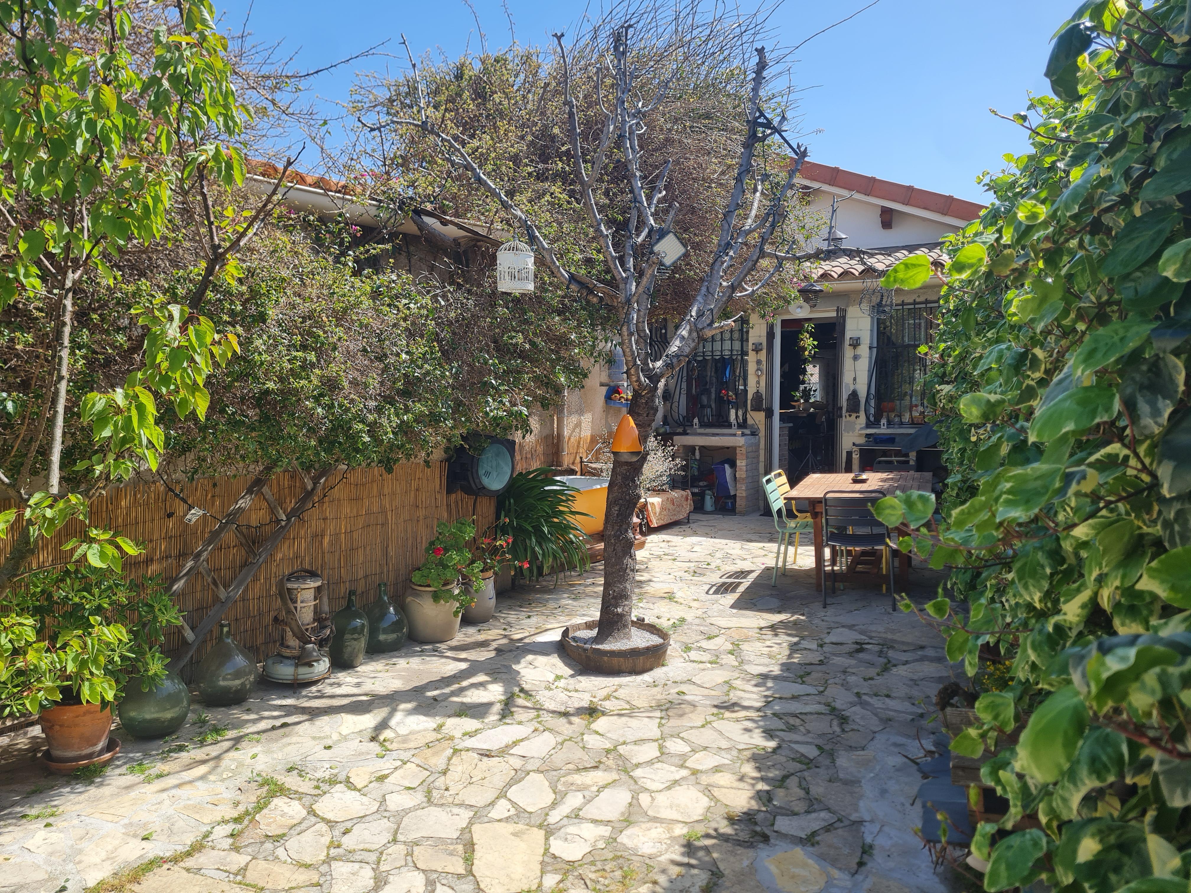 La maison se compose d'une cuisine avec grand salon- salle à manger, de deux chambres une salle d'eau et donne sur une belle terrasse ,un jardin arboré et le grand garage de 29m2.