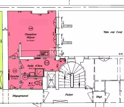 Mouton Duvernet / Brézin - Au 5ème étage avec ascenseur dans immeuble en Pierre de Taille de 1880, Studio à rafraichir de 29.8m², composé d'une entrée, une salle de d'eau, W.C séparé, d'une pièce principale avec cuisine ouverte.