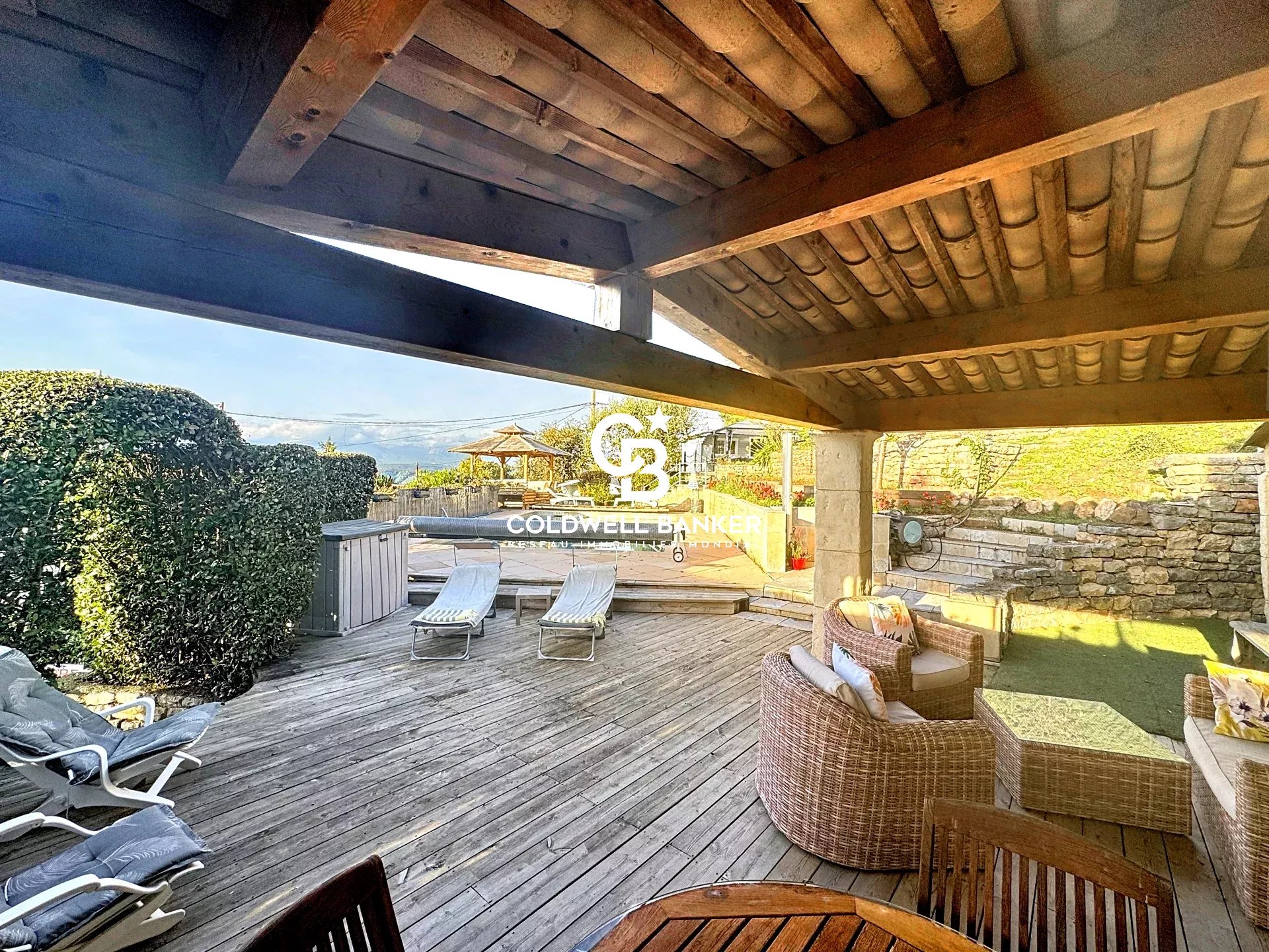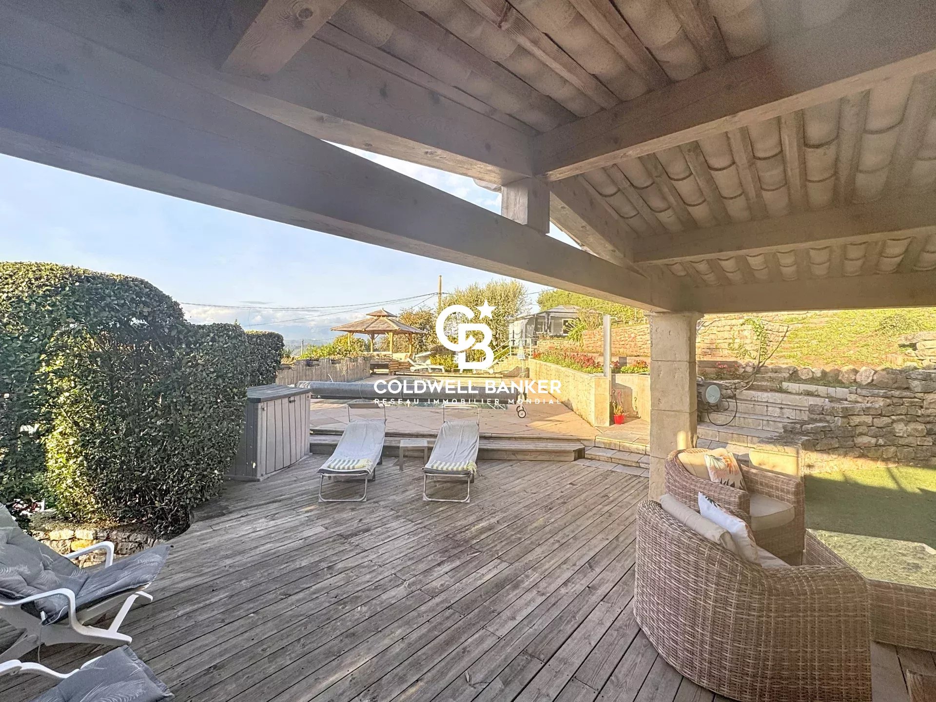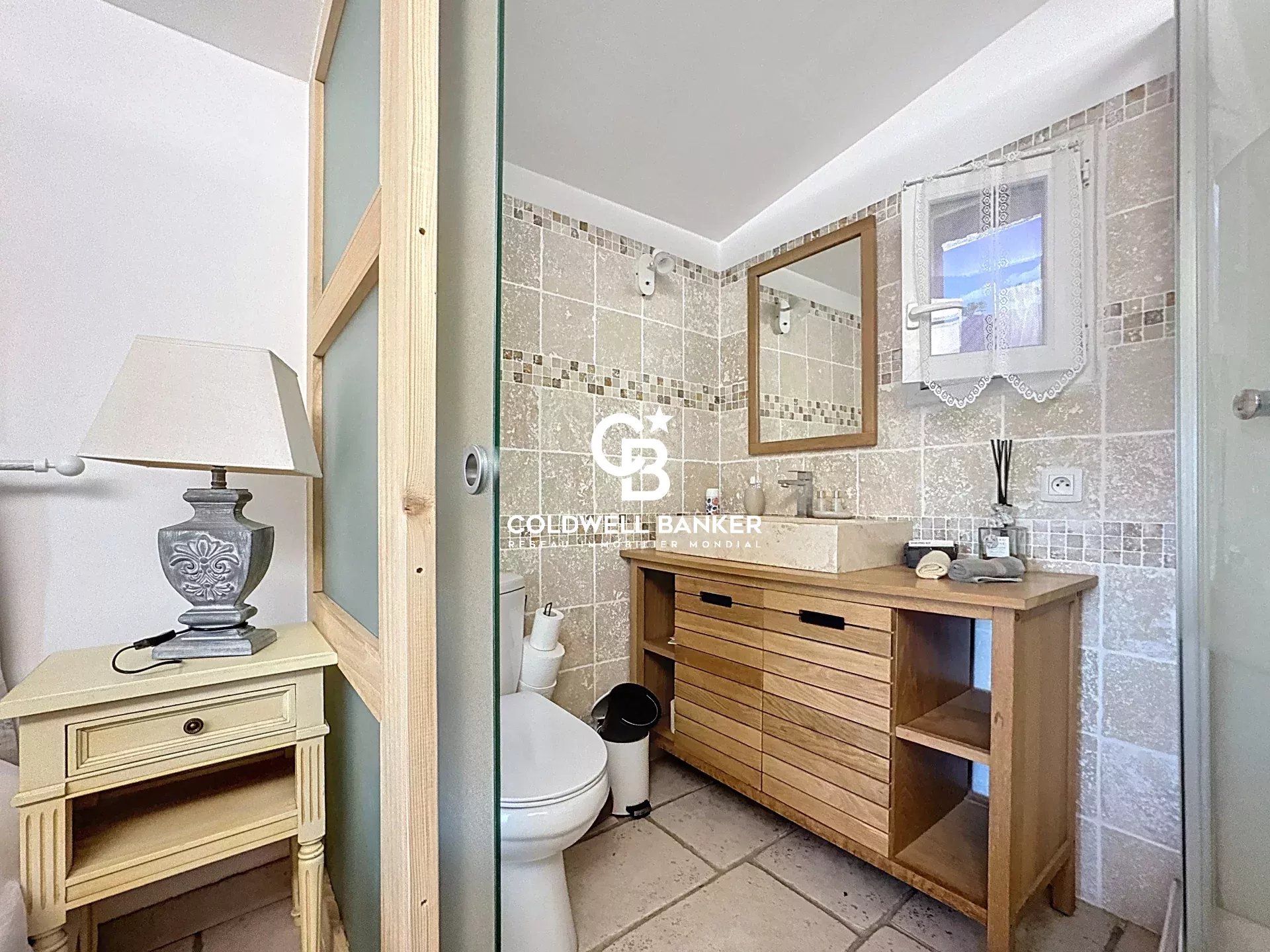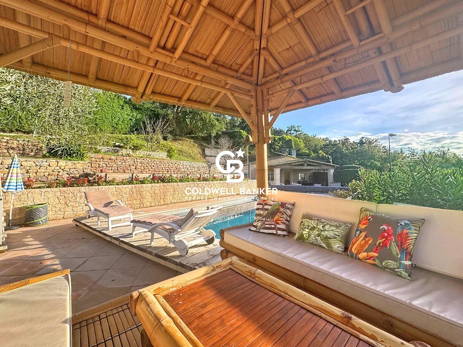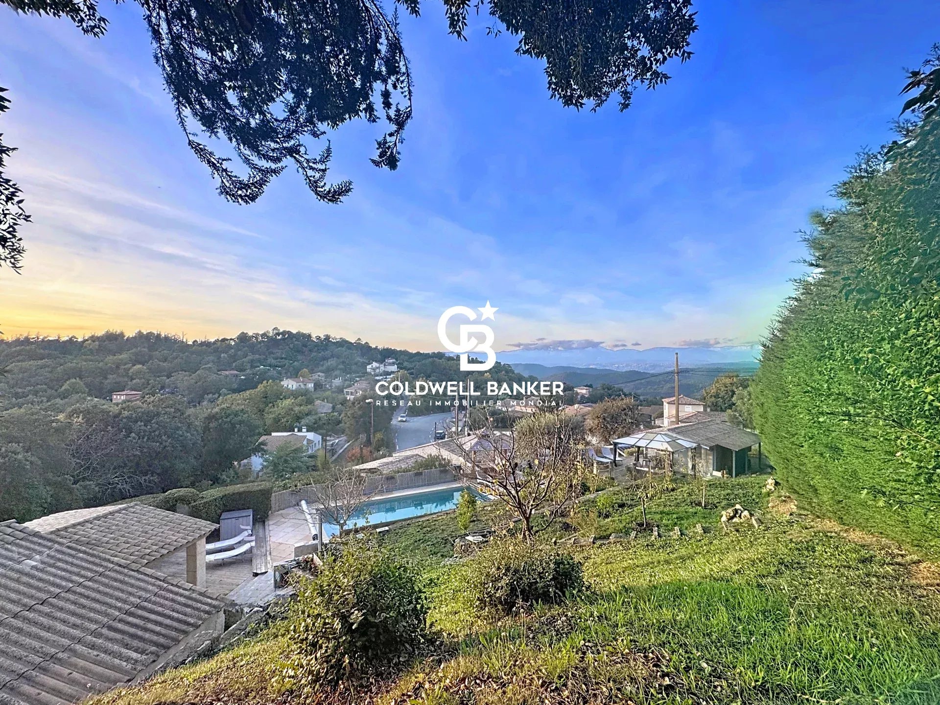 Les Adrets-de-l’Estérel – À seulement 3 minutes de l’accès autoroutier Dans un environnement calme et verdoyant, cette propriété d’environ 175 m² habitables séduit par sa vue dégagée, son parfait confort de plain-pied et son fort potentiel locatif. Édifiée sur un terrain paysager et clos d’environ 2 300 m², elle se compose de trois logements indépendants, d’un bureau séparé ainsi que de vastes dépendances. Composition La maison principale d’environ 93 m² offre un bel espace de vie lumineux avec salon-séjour cathédrale ouvert sur une mezzanine, cuisine américaine équipée, deux chambres, un dressing pouvant faire office de troisième chambre, une salle d’eau et un WC indépendant. Elle s’ouvre sur une agréable terrasse couverte d’environ 38 m² avec cuisine d’été, idéale pour les repas en plein air. Le mas indépendant d’environ 50 m² comprend un salon convivial, une cuisine ouverte, une chambre, une salle d’eau, un WC et une terrasse privative. Le chalet-studio d’environ 20 m² propose un espace de vie fonctionnel avec kitchenette, salle d’eau, WC et terrasse indépendante. Un bureau ou chambre supplémentaire d’environ 12 m² vient compléter cet ensemble. Extérieurs et dépendances Élégante piscine en mosaïque 10 × 5 m avec nage à contre-courant et gazebo. Double garage de 80 m² et garage additionnel de 35 m². Terrain joliment paysager avec espace potager. Confort et prestations Chauffage par insert à bois. Climatisation réversible. Vue dégagée, environnement verdoyant et accès autoroutier direct. Cette propriété rare combine charme provençal, fonctionnalité et sérénité. Elle conviendra aussi bien à une grande famille qu’à un projet de résidence principale avec revenus locatifs. Contact: Vanessa Soares 0672852109 ou vanessa.soares@coldwellbanker.fr