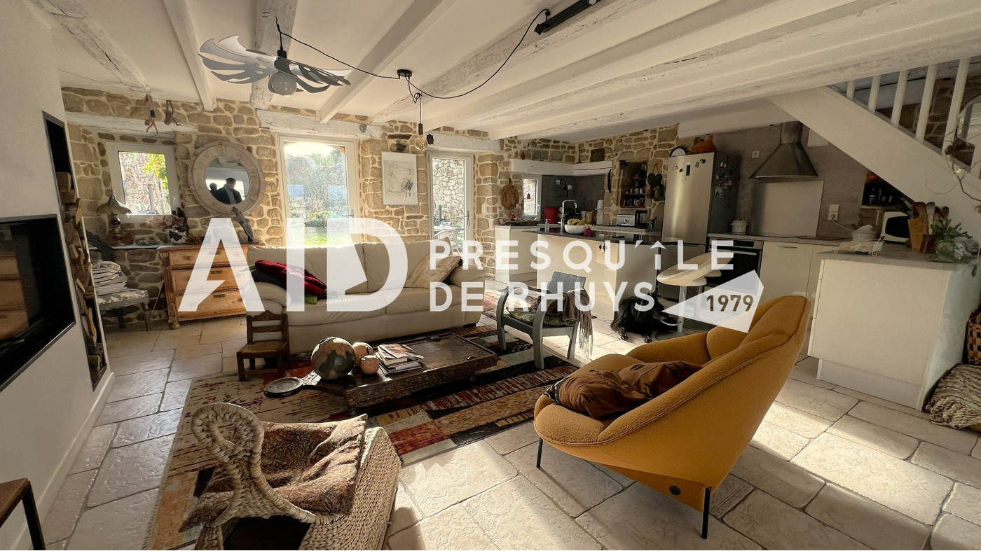 Sur la commune d'Arzon en première ligne face à la mer, l'agence AID vous fait découvrir cet ensemble immobilier composé d'une maison en pierres de 139,20m² habitables rénovée en 2009 et d'une dépendance de 18,72m² habitables à proximité immédiate des commerces et des plages. L'entrée dessert une vaste pièce de vie de 66m² à l'ambiance chaleureuse et conviviale avec sa cuisine ouverte et sa cheminée contemporaine. Les ouvertures au Nord et au Sud permettront d'apprécier la vue mer d'un côté et le joli jardin intimiste bordé de murs en pierres de l'autre. Vous monterez l'escalier pour rejoindre un espace nuit articulé sur deux niveaux comprenant une suite parentale vue mer de 31m² avec salle d'eau privative et WC, deux chambres et une seconde salle d'eau avec WC. Les larges baies vitrées et la terrasse du premier étage vous permettront de voir évoluer au fil de la journée ce paysage de carte postale animée et d'être aux premières loges pour contempler le balais majestueux des bateaux qui passent devant Locmariaquer. Le jardin calme et verdoyant avec sa terrasse ensoleillée sera propice à la détente en famille. Vous le traverserez pour rejoindre la dépendance actuellement aménagée en atelier avec douche et WC. Cet espace pourra facilement être transformé en garage, salle de sport ou en studio pour accueillir vos convives en leur garantissant indépendance et tranquillité. Vous serez charmés par l'atmosphère unique et le charme du lieu : une véritable havre de paix à partir duquel toutes les activités et commodités sont accessibles à pieds ! (3.00 % honoraires TTC à la charge de l'acquéreur.)