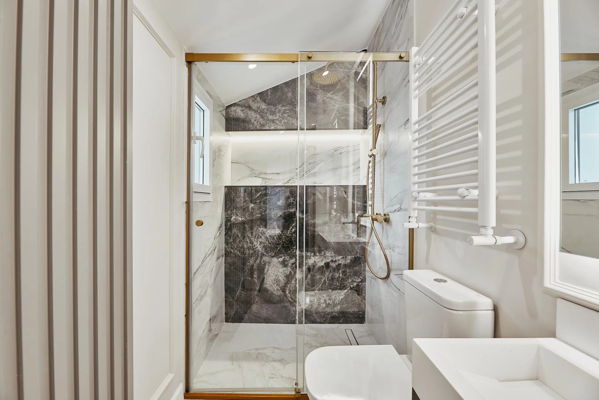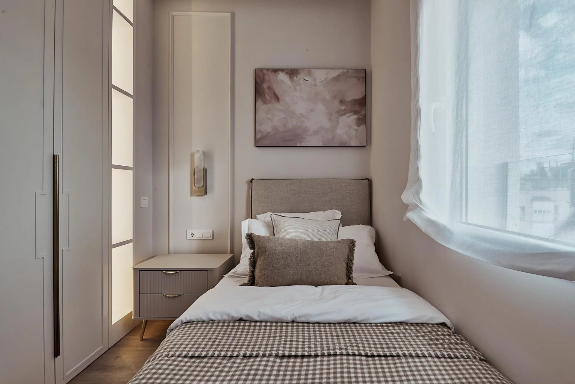 Veraltia presents this beautifully redesigned top-floor interior apartment in a classic 1930s building with elevator, located in the sought-after Goya area of the Salamanca district. With a cadastral area of 54 m² on the seventh floor, the space has been transformed to maximize light, balance, and comfort.