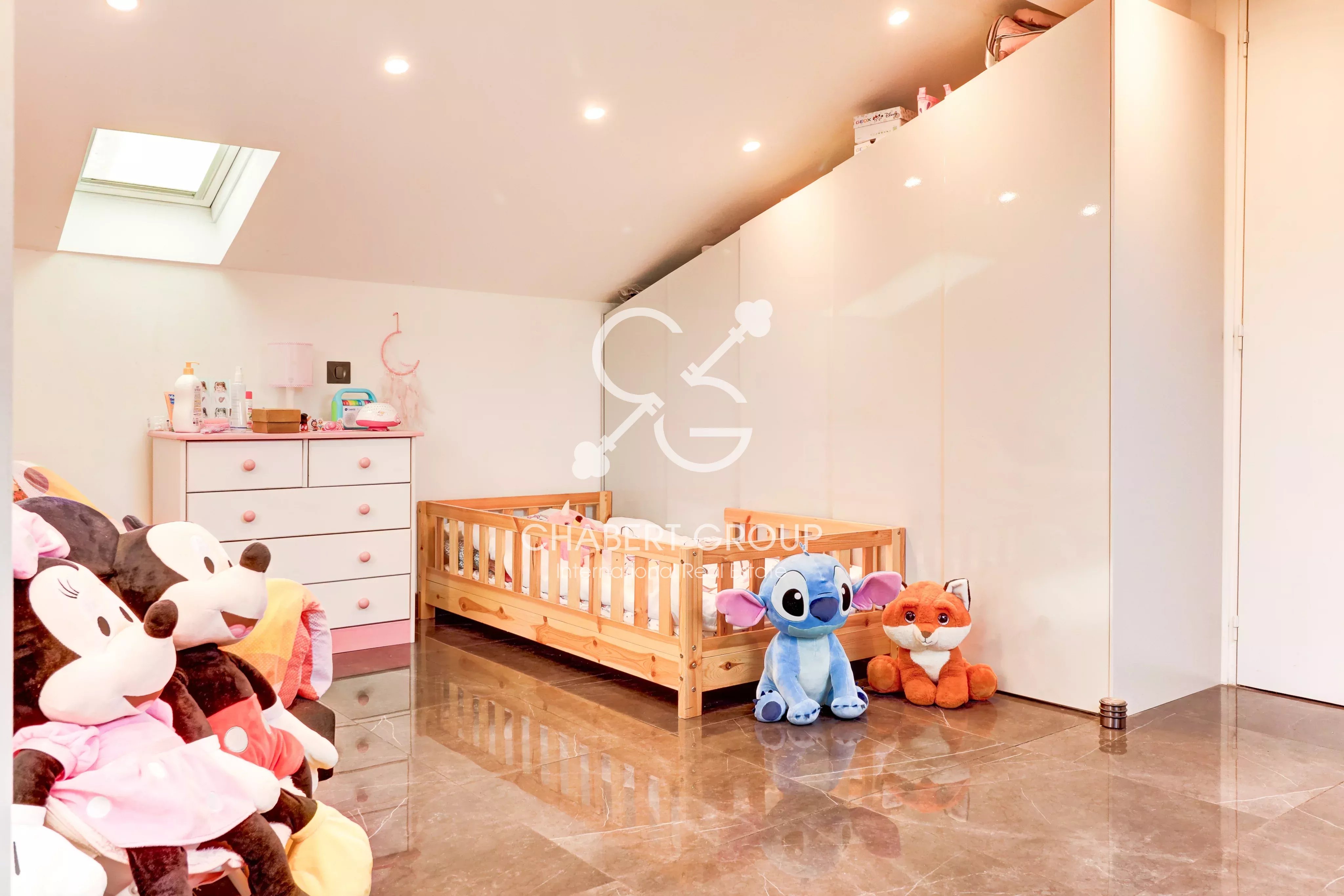 Una scala pratica e spaziosa conduce a un mezzanino ben arredato con una comoda camera da letto, ideale per un bambino o un adolescente, o che potrebbe essere trasformata in uno studio. C'è anche un secondo bagno con WC e un ripostiglio.
