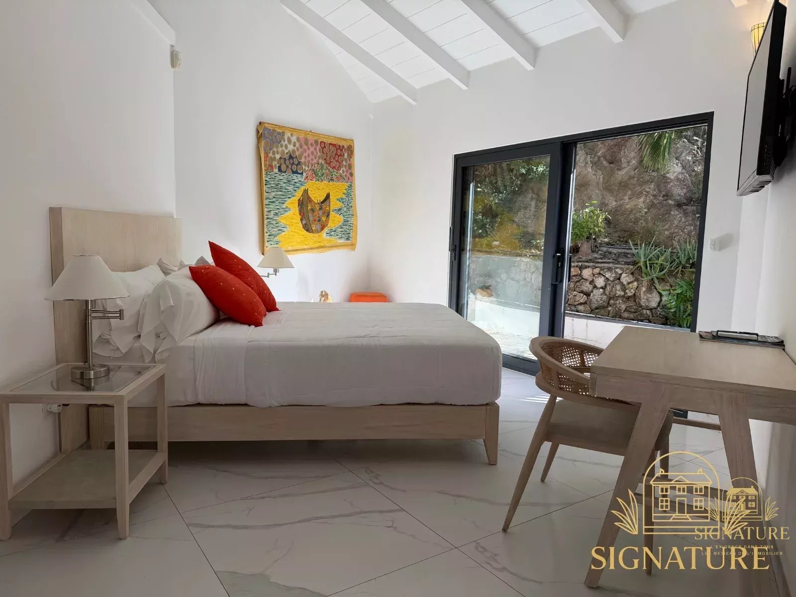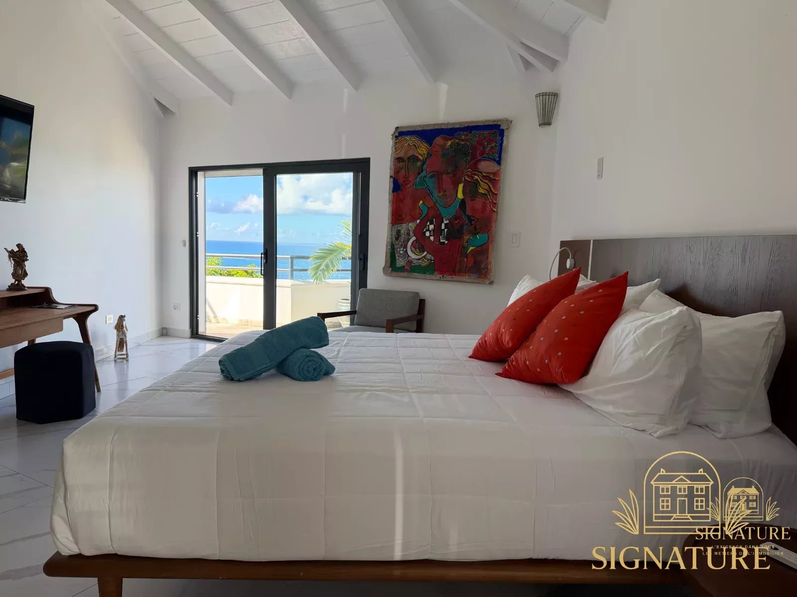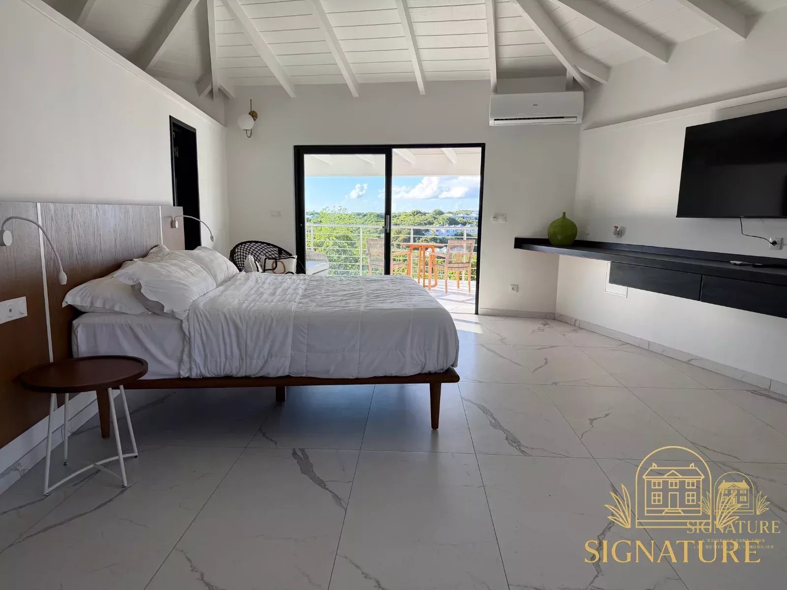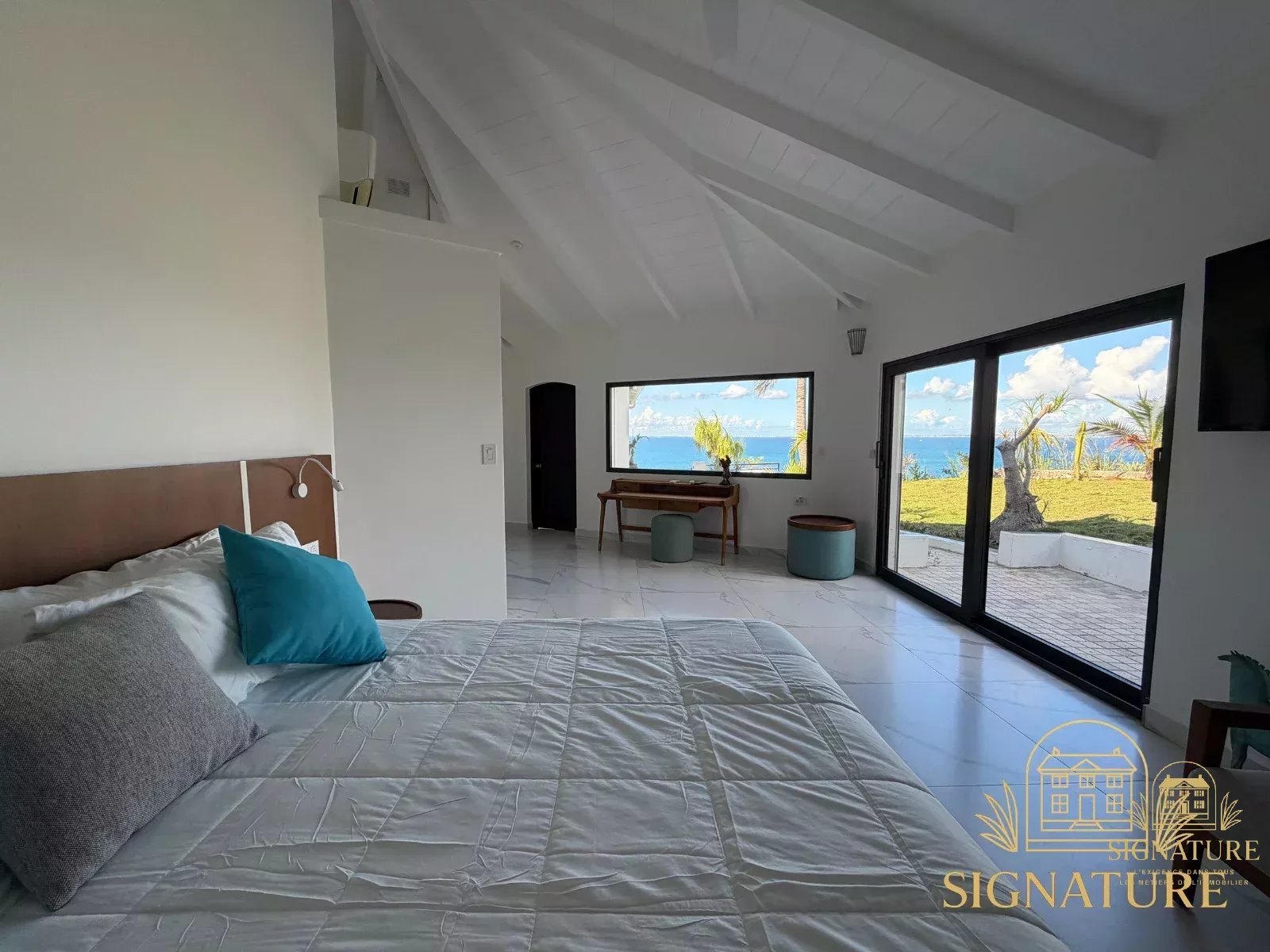 Située au sein de la résidence très prisée des Terres Basses, cette villa bénéficie d’un emplacement recherché et d’une vue mer exceptionnelle, offrant un panorama dégagé sur la plage de Baie Rouge et l’île d’Anguilla. Description du bien : Développant une surface habitable d’environ 235 m², la villa principale se compose de quatre chambres, chacune disposant de sa propre salle d’eau, offrant confort et indépendance à ses occupants. Les espaces de vie s’ouvrent sur l’extérieur et profitent pleinement de la vue mer panoramique. Un studio indépendant complète la propriété. Il comprend une cuisine, une salle de bain ainsi qu’une terrasse, idéal pour recevoir ou pour un usage locatif. La villa bénéficie d’une vue à 180° sur la mer, avec un panorama dégagé sur la plage de Baie Rouge et l’île d’Anguilla. Elle est également équipée d’un portail électrique, d’une citerne ainsi que d’un groupe électrogène, l’ensemble sur un terrain de 10 000 mètres carré. La résidence : Résidence sécurisée et recherchée des Terres Basses, appréciée pour son cadre de vie exclusif, son environnement calme et sa proximité avec les plages du secteur. Bien rare sur le marché local, adapté aussi bien à une résidence principale ou secondaire qu’à un investissement locatif saisonnier. Prix : 2 990 000 € FAI Ref : 1837