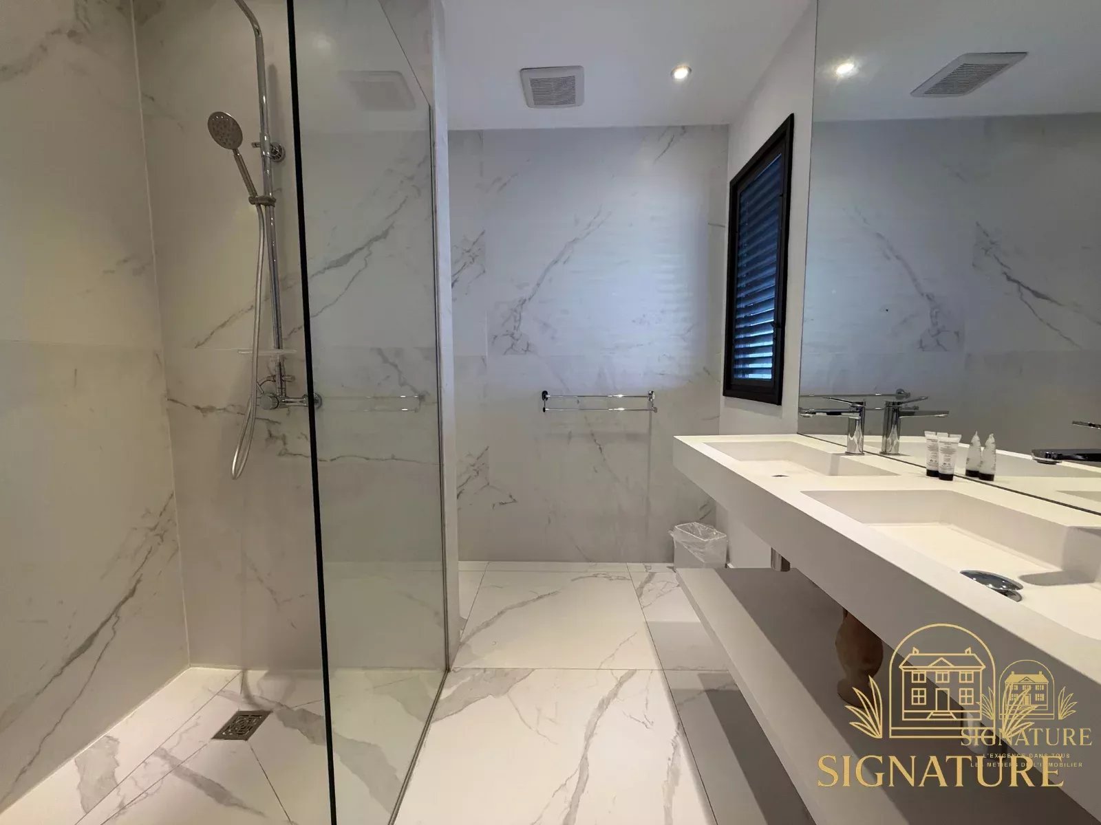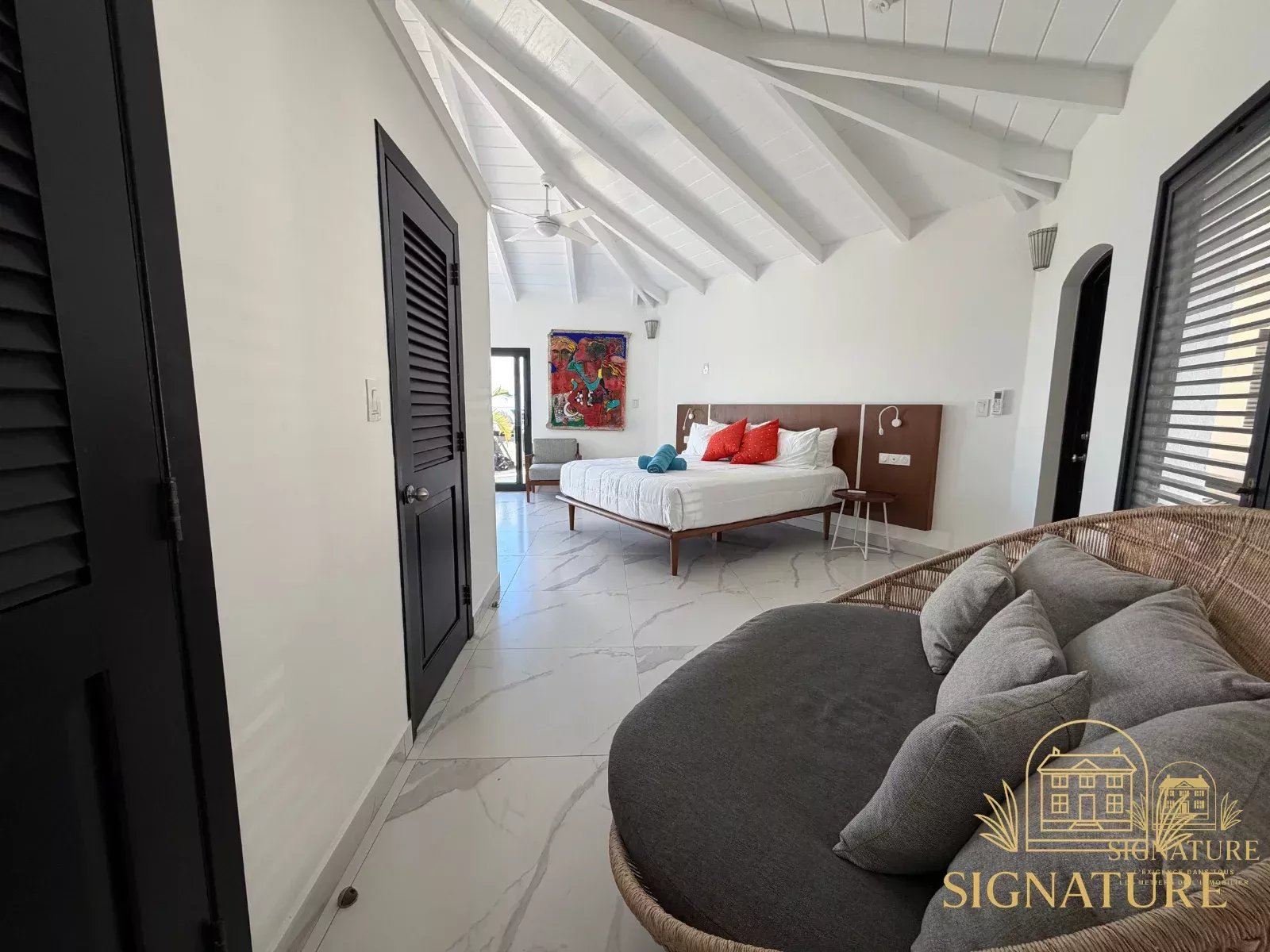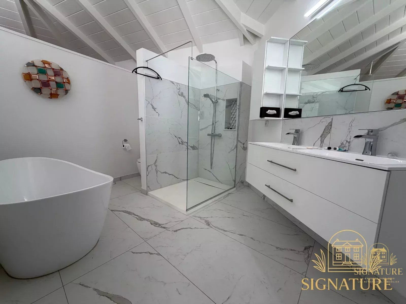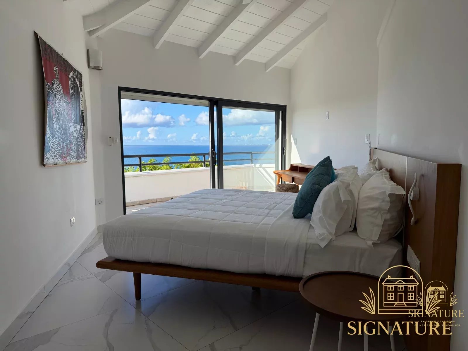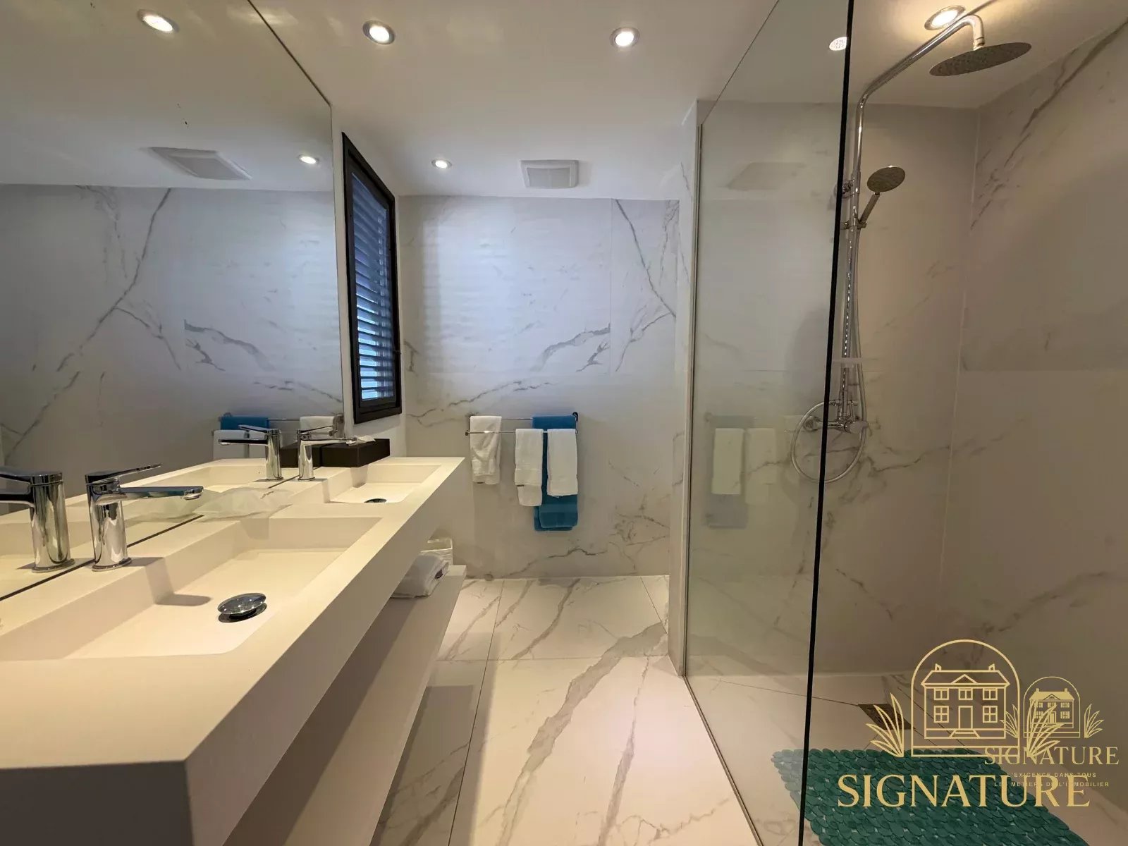 Située au sein de la résidence très prisée des Terres Basses, cette villa bénéficie d’un emplacement recherché et d’une vue mer exceptionnelle, offrant un panorama dégagé sur la plage de Baie Rouge et l’île d’Anguilla. Description du bien : Développant une surface habitable d’environ 235 m², la villa principale se compose de quatre chambres, chacune disposant de sa propre salle d’eau, offrant confort et indépendance à ses occupants. Les espaces de vie s’ouvrent sur l’extérieur et profitent pleinement de la vue mer panoramique. Un studio indépendant complète la propriété. Il comprend une cuisine, une salle de bain ainsi qu’une terrasse, idéal pour recevoir ou pour un usage locatif. La villa bénéficie d’une vue à 180° sur la mer, avec un panorama dégagé sur la plage de Baie Rouge et l’île d’Anguilla. Elle est également équipée d’un portail électrique, d’une citerne ainsi que d’un groupe électrogène, l’ensemble sur un terrain de 10 000 mètres carré. La résidence : Résidence sécurisée et recherchée des Terres Basses, appréciée pour son cadre de vie exclusif, son environnement calme et sa proximité avec les plages du secteur. Bien rare sur le marché local, adapté aussi bien à une résidence principale ou secondaire qu’à un investissement locatif saisonnier. Prix : 2 990 000 € FAI Ref : 1837