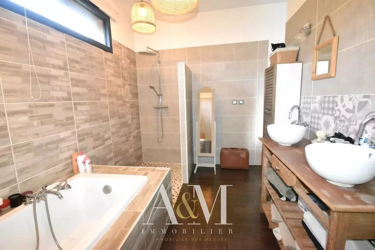 Idéalement située à proximité immédiate des écoles, du centre-ville, des pistes cyclables et du bassin, cette élégante maison des années 1950, entièrement rénovée en 2018, offre un cadre de vie rare et recherché. Développant environ 180 m² habitables sur une parcelle de plus de 600 m², la maison séduit dès l’entrée par son atmosphère chaleureuse et conviviale. La pièce de vie, aux volumes généreux, accueille un salon-séjour avec cuisine ouverte entièrement aménagée et équipée, baignée de lumière grâce à de nombreuses ouvertures donnant directement sur le jardin et la piscine. Un espace idéal pour recevoir et profiter pleinement de l’intérieur comme de l’extérieur. Les amateurs de vin apprécieront la cave souterraine vitrée, véritable élément de caractère et de convivialité. Dans le prolongement de la cuisine, un cellier-buanderie parfaitement aménagé apporte un confort fonctionnel au quotidien. L’espace nuit se compose : de deux chambres, chacune disposant de sa salle d’eau avec douche et toilettes, d’une superbe suite parentale ouvrant sur la piscine, comprenant une grande chambre, un vaste dressing et une élégante salle de bains avec douche, ainsi qu’un WC indépendant. À l’extérieur, un studio indépendant d’environ 40 m² (avec salle d’eau, WC et chambre) ainsi qu’un atelier complètent l’ensemble, offrant de multiples possibilités : accueil, télétravail ou rendement locatif. Le jardin, sans aucun vis-à-vis, est soigneusement aménagé autour d’une piscine chauffée de 6,5 x 3,5 m, propice à la détente dans un environnement calme et convivial. Localisation idéale : plage et centre-ville accessibles en quelques minutes à vélo, collège à 5 minutes, Une maison de style affirmé, inspirée de l’esprit ferret, alliant charme, confort moderne et emplacement d’exception. un pied-à-terre ou un investissement locatif sans travaux. À visiter sans tarder ! Contactez rapidement A&M immobilier Fréderic BOUYER au 06.80.27.20.51 (E.I. agent commercial N° RSAC: Bx:450115837 ou Marie FREDOUT au 06.72.79.69.33(E.I. agent commercial N° RSAC: Bx:852 609 353