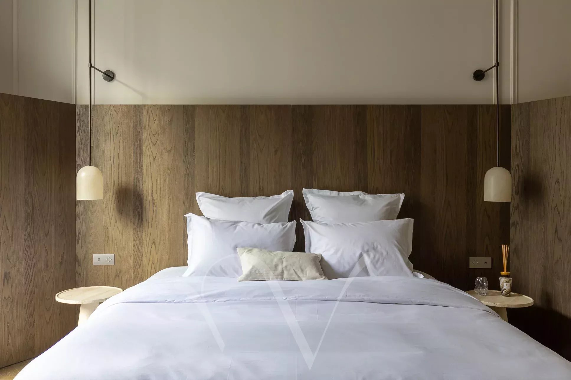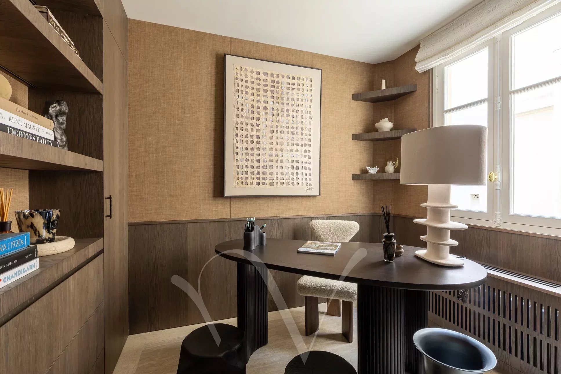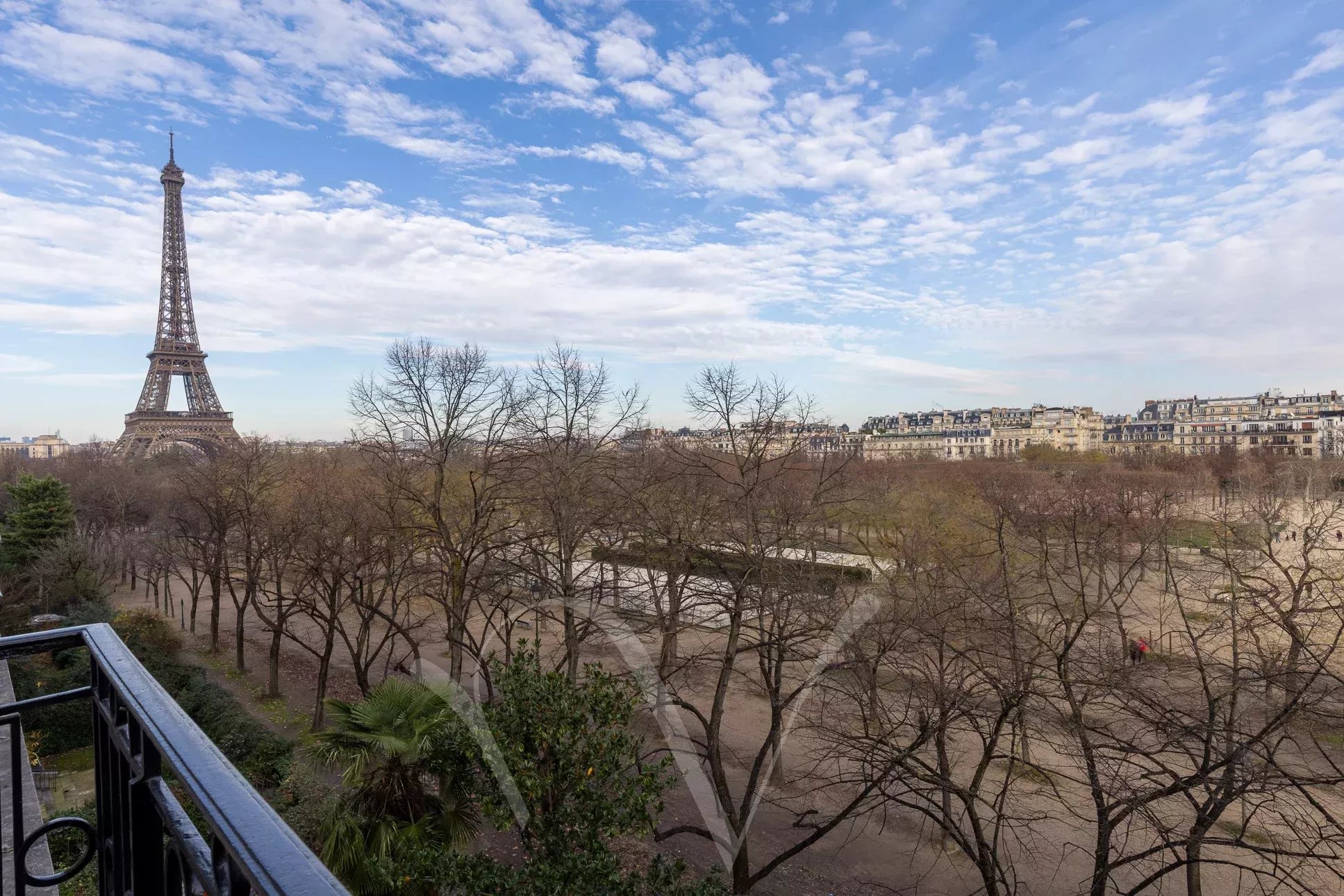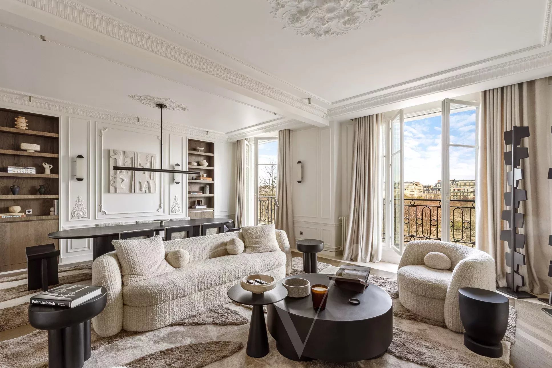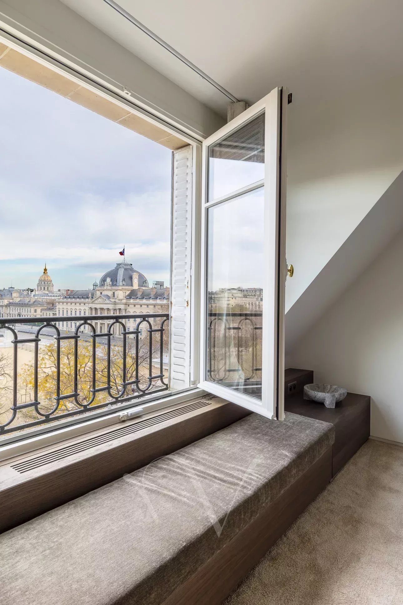 Situé au cœur du recherché quartier Ecole Militaire, cet appartement d’exception développe une surface de 191 m² et occupe les deux derniers étages d’un immeuble 1930 aux belles parties communes, avec ascenseur et gardien. Entièrement rénové par Félix Millory avec des matériaux de grande qualité, il offre des volumes élégants et une atmosphère à la fois contemporaine et chaleureuse. En première ligne sur le Champ-de-Mars, l’appartement bénéficie de vues spectaculaires et dégagées sur l’École militaire, les Invalides et la Tour Eiffel.