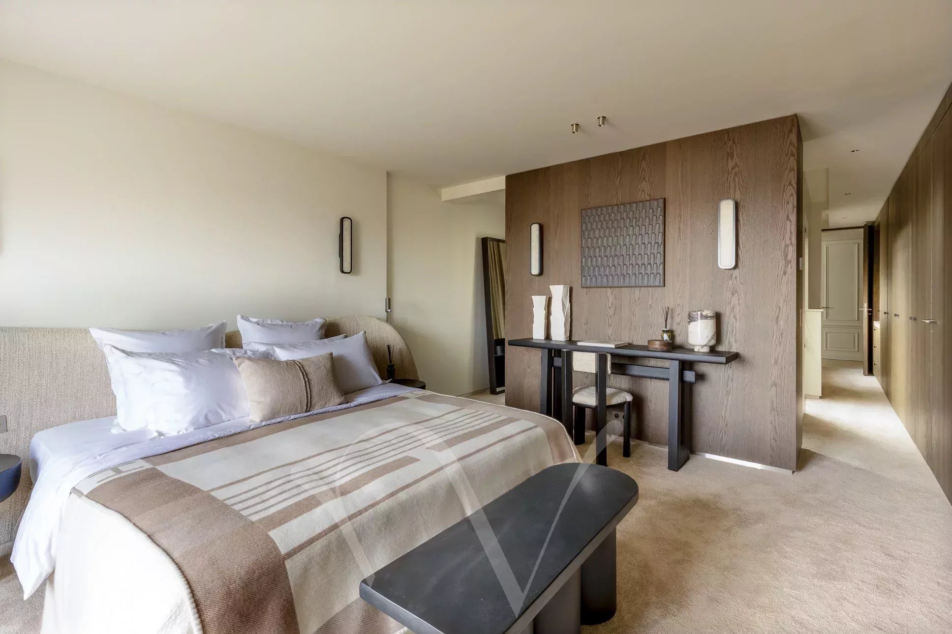 Le premier niveau se compose d’une entrée, d’un vaste salon-salle à manger très lumineux, d’une cuisine entièrement équipée, d’un bureau ainsi que d’une chambre avec sa salle de bains. À l’étage supérieur, deux chambres supplémentaires disposent chacune de leur salle de bains, garantissant confort et intimité. Calme, lumineux et parfaitement agencé, cet appartement réunit tous les attributs d’un bien de prestige : prestations haut de gamme, vues remarquables, rénovation de qualité et emplacement exceptionnel. Deux caves ainsi qu’une place de parking.