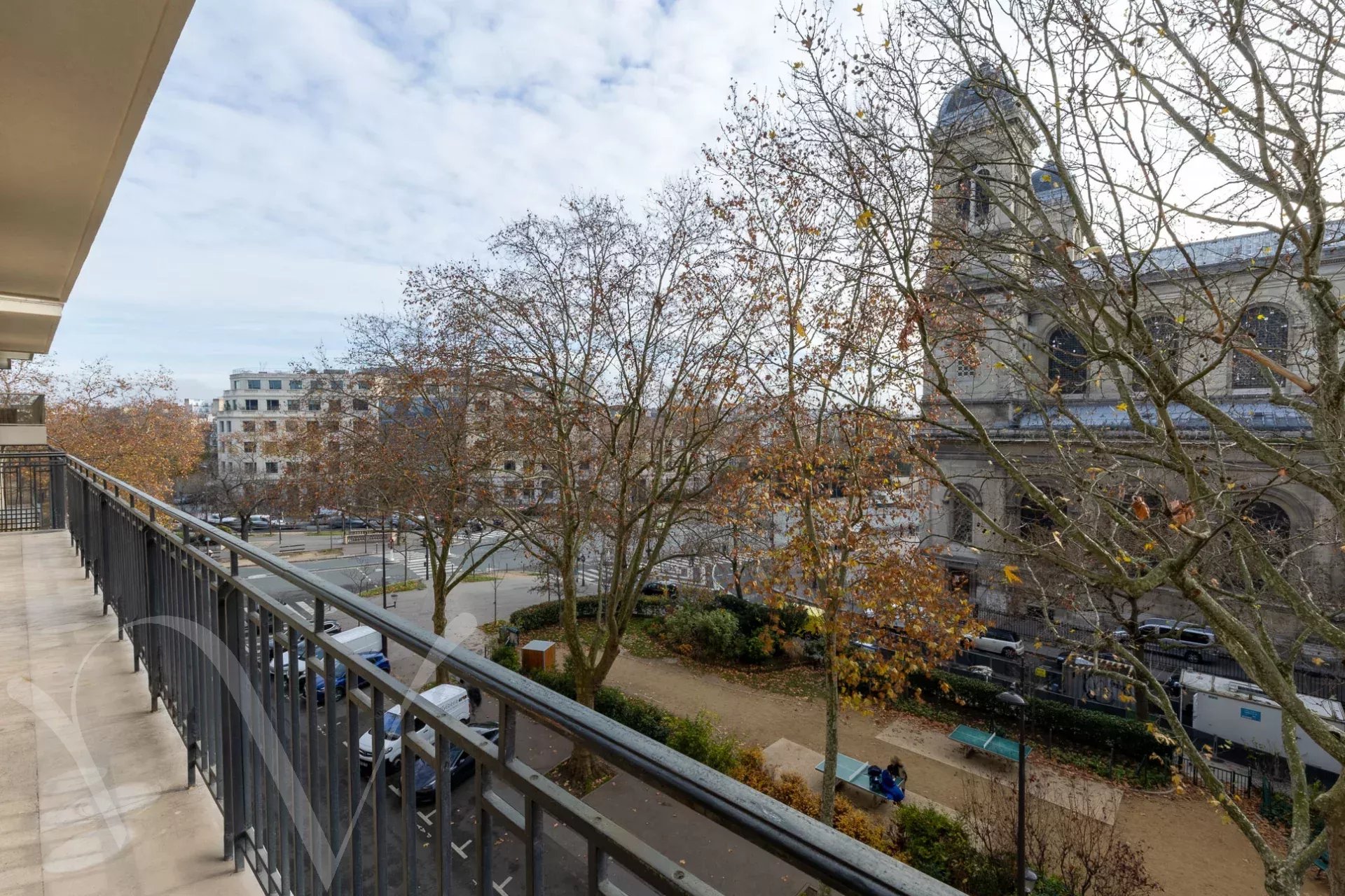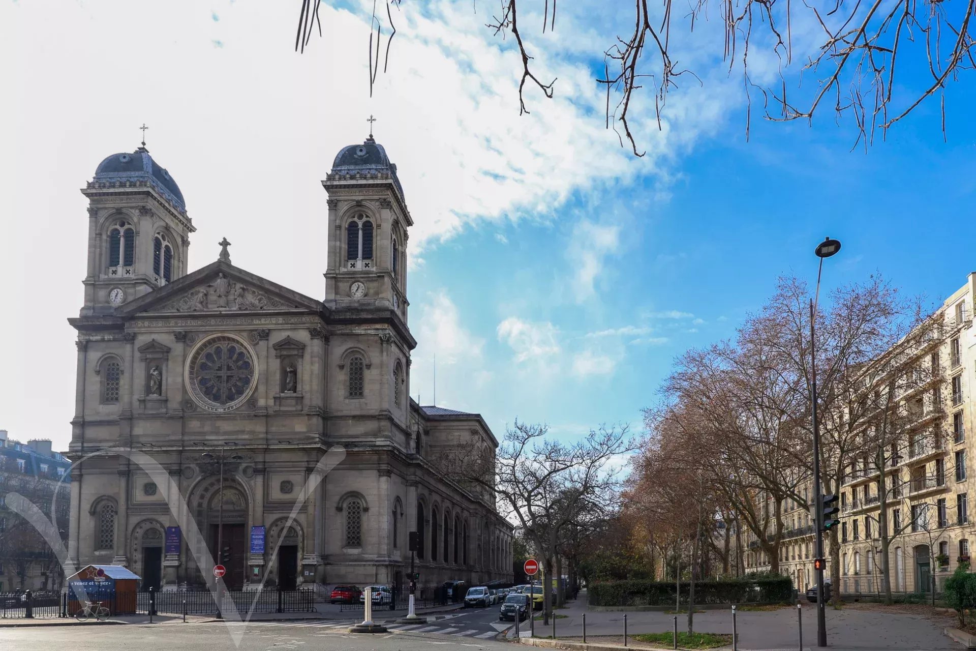 Cet appartement bénéficie d'une belle vue sur le square et l'église Saint-François-Xavier. Quartier très aéré. Orientation sud-est. Appartement à rénover, plan aisément modulable pour créer une troisième chambre.