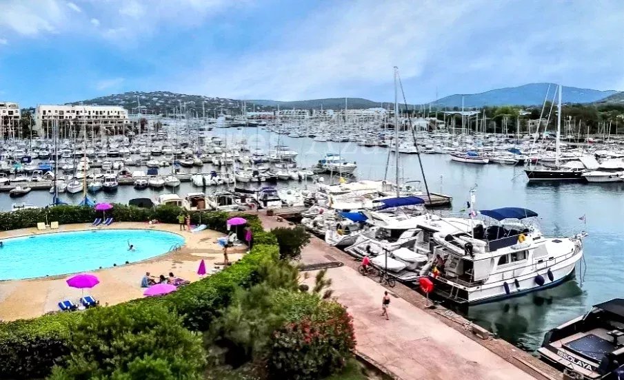 Cet appartement rénové avec soin, d’une superficie de 49 m² (39,85 m² selon la Loi Carrez) et disposant d’une chambre, se distingue par son emplacement idéal, son orientation plein sud et ses vues magnifiques sur le port, la mer Méditerranée et l’arrière-pays de Saint-Tropez. L’appartement comprend une cuisine ouverte, entièrement équipée, qui s’intègre parfaitement au lumineux espace de vie, ainsi qu’une chambre confortable avec un dressing intégré. On trouve également une salle de bains séparée avec douche et des toilettes indépendantes. Un atout majeur de cet appartement est son balcon spacieux, de 1,65 x 5,37 mètres, offrant un espace généreux pour des repas en plein air détendus et des vues imprenables sur la marina et la mer. Idéal pour les propriétaires de bateau, cet appartement se situe directement au bord de la marina et présente un potentiel intéressant pour la location saisonnière. De plus, le légendaire village de Saint-Tropez se trouve à seulement quelques minutes à vélo ou en voiture. Piscine (juillet & aout) et tennis (gratuit) dans le domaine. En parfait état, charmant et lumineux, c’est le pied-à-terre idéal !