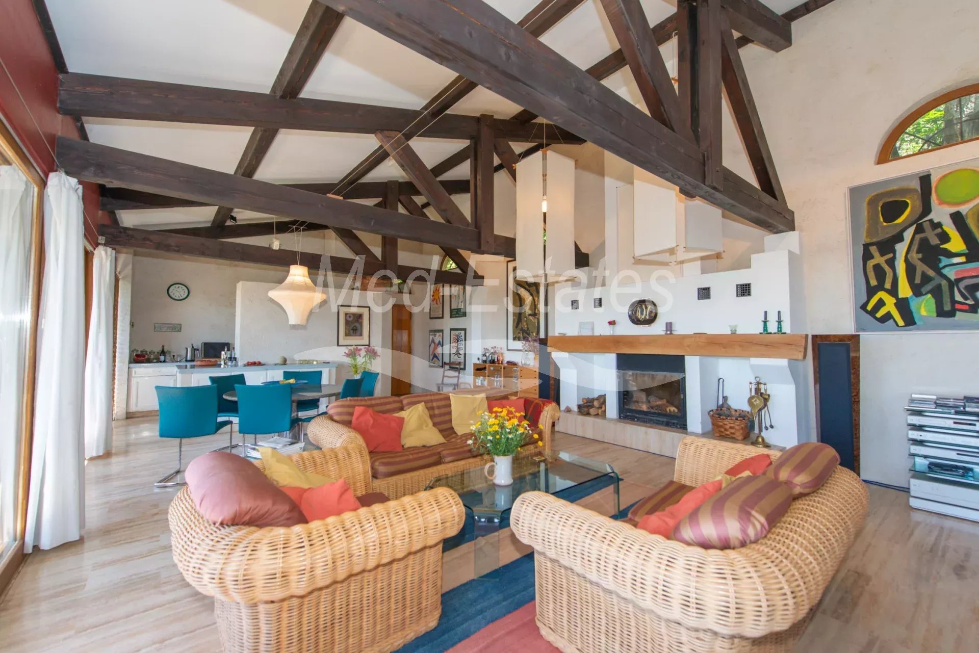 Saint Clement: Villa d'architecte 'maison solaire passive' de 1989 avec une surface habitable de +/- 200m2 avec 5 chambres à coucher, sur un terrain de 21.000 m2 avec piscine (chauffée). La maison est bien isolée et parfaitement orientée vers le soleil. La situation est optimale : non loin du centre de La Garde Freinet avec ses magasins et restaurants ; à seulement 15 minutes de Grimaud et à +/-20 min des plages. Saint Tropez/ Pampelonne/ Gigaro,... est à peine à une demi-heure. La villa Entrée ; grand hall ouvert avec barbecue et four à pizza ainsi qu'un cellier. Le salon et la salle à manger avec cheminée disposent d'une grande baie vitrée et d'un balcon qui offre une vue magnifique sur la vallée et les collines jusqu'à la Méditerranée! La cuisine ouverte est adjacente au salon et à la salle à manger. 2 chambres à coucher, avec salle de bain. Un bureau. WC visiteurs et douche séparée, ainsi qu'un petit débarras. Un escalier mène à la chambre de la tour, dans laquelle se trouve la chambre principale avec balcon ; salle de bain ensuite avec WC. Niveau jardin : grand atelier ou garage. Appartement d'amis avec douche et WC privés, ainsi que des armoires encastrées. L'espace extérieur Grande piscine à débordement (chauffée). Magnifique jardin avec des plantes et des arbres méditerranéens (chênes-lièges, oliviers, châtaigniers,...). 2 garages, carport et terrain de pétanque. 2ème carport devant la maison. Villa originale avec une ambiance agréable, au calme absolu, proche du centre - une vue magnifique!