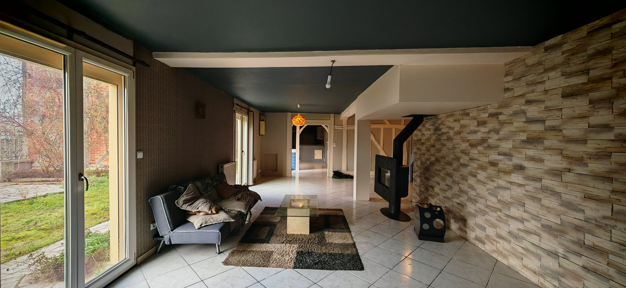 La maison offre de beaux volumes avec une pièce de vie de près de 60 m2, cuisine ouverte avec cellier, poêle à bois performant, ainsi que 4 chambres à l'étage et salles d'eau/bains.