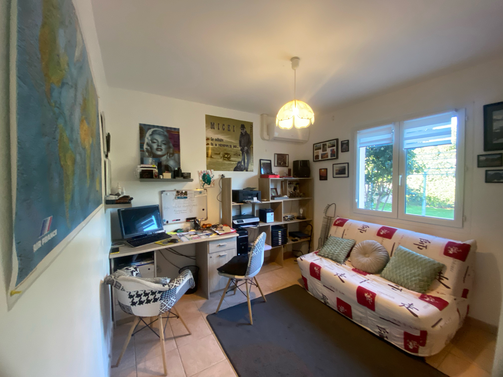 Belle pièce de vie lumineuse, cuisine indépendante entièrement équipée.