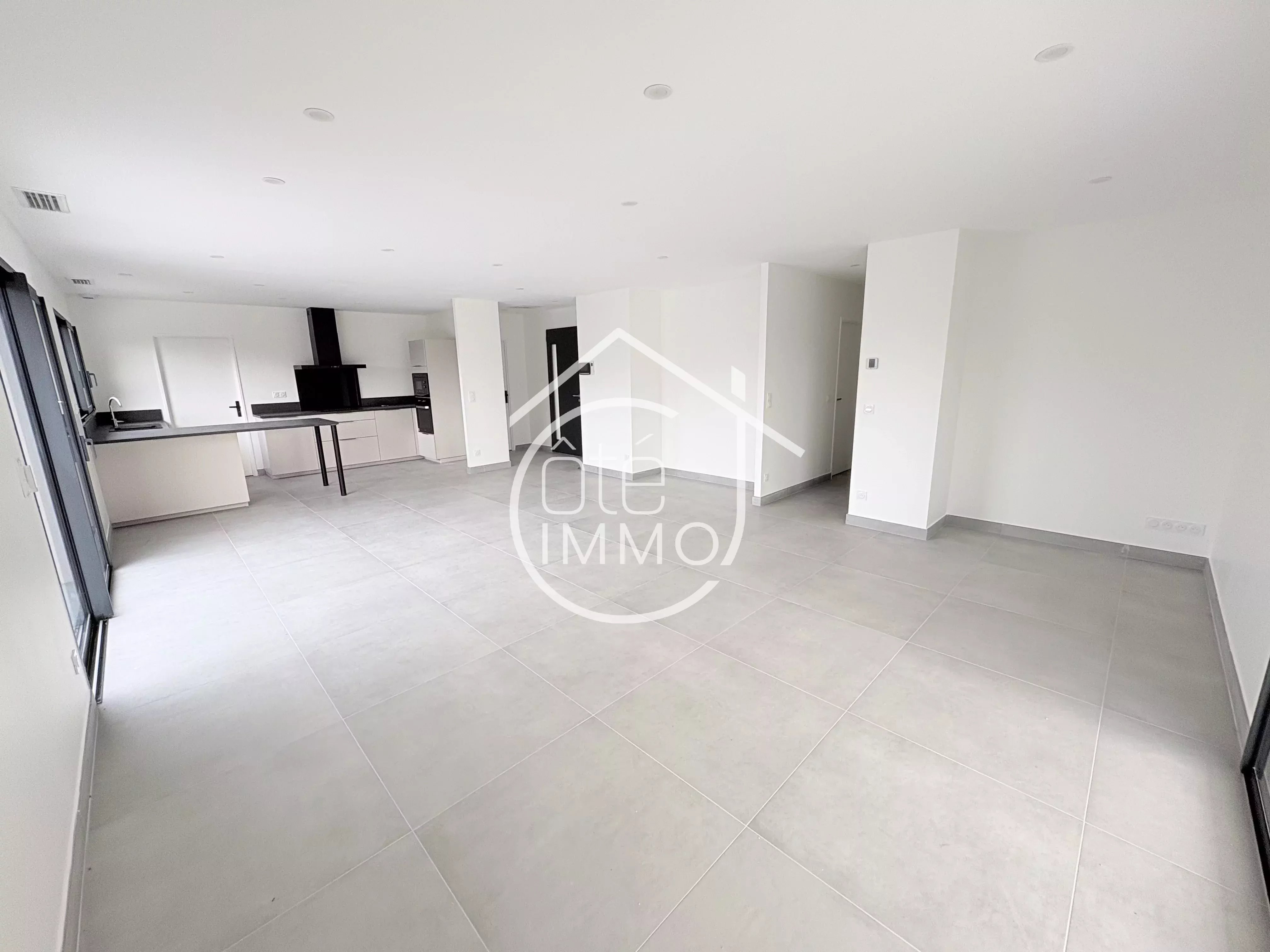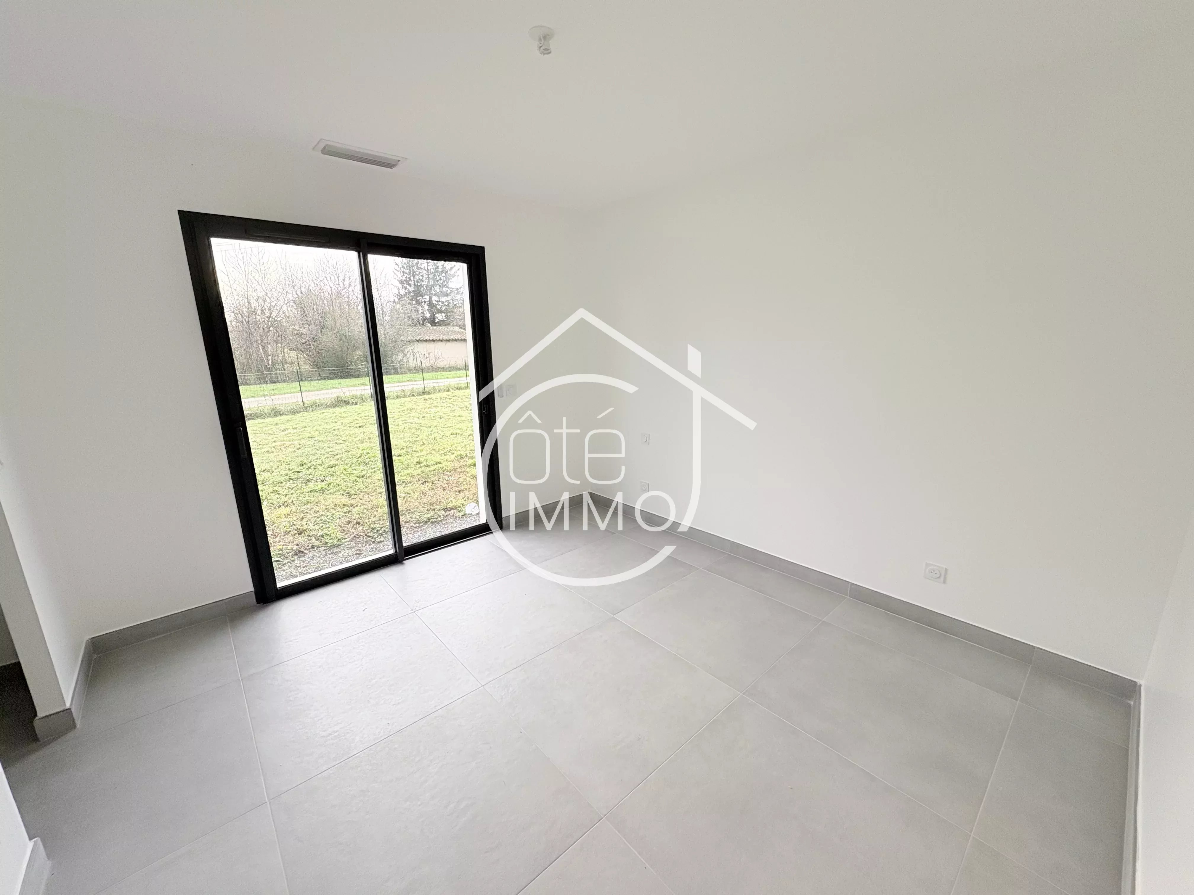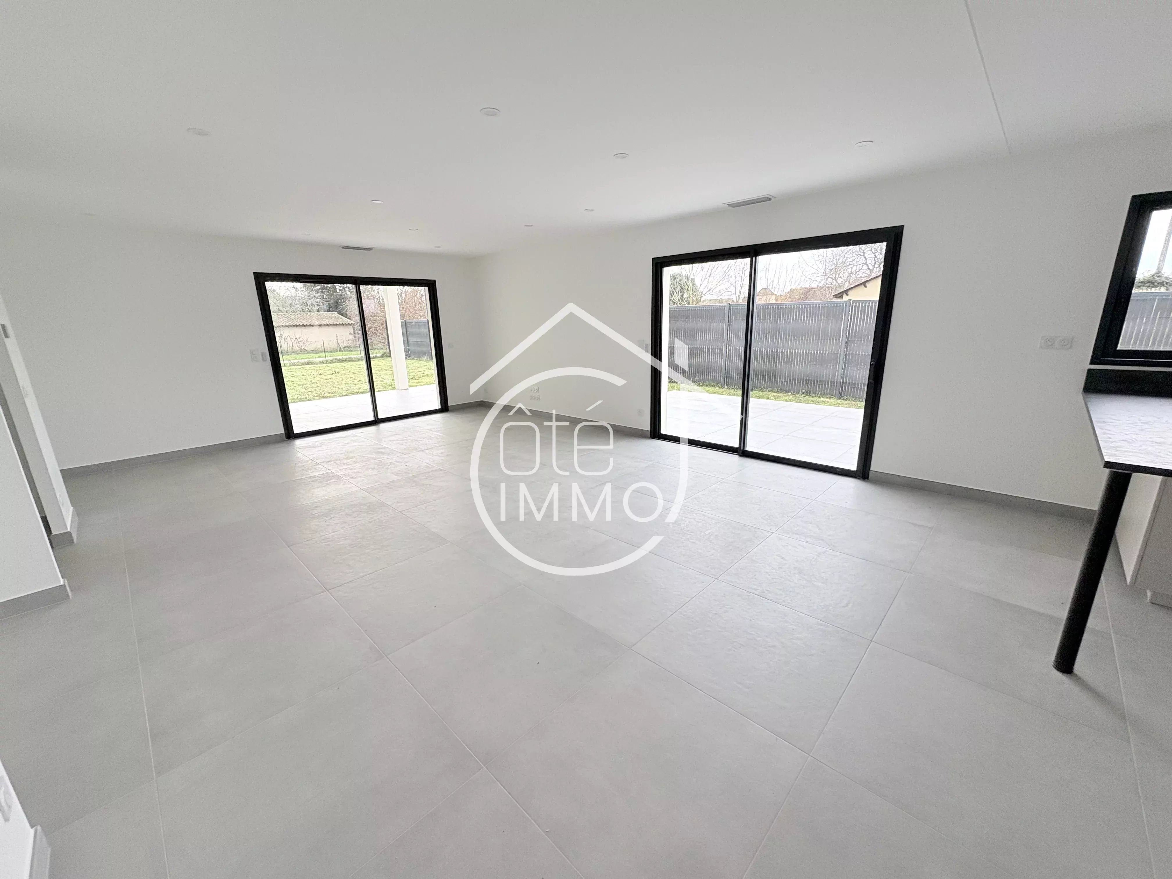 Côté Immo PRIGONRIEUX vous propose cette charmante maison neuve de 2025, située dans un environnement calme, à la campagne et à proximité des commodités du village. Ce bien dispose d'une surface habitable de 115m². Il comprend une entrée avec un WC séparé, un séjour lumineux donnant sur une cuisine ouverte, parfaitement intégrée et fonctionnelle, le tout pour une surface de 53m². Depuis cet espace, on accède à un cellier-buanderie, idéal pour le rangement, ainsi qu'à un garage attenant de 16m² offrant un espace de stationnement pratique. Dans le prolongement, vous aurez accès à une partie nuit où l'on trouve une suite parentale de 17m² avec un dressing et une salle d'eau privative. Deux autres chambres de 12m² complètent cet espace nuit, accompagnées d'une deuxième salle d'eau ainsi que d'un WC séparé. A l'extérieur, un jardin entièrement clos sur lequel se trouve un porche, deux terrasses dont une couverte de 16m². Ne manquez pas cette opportunité et venez visiter cette maison au plus vite !! Points techniques : - Climatisation par PAC air/air - Vidéophone - Portail électrique - Double vitrage PVC - Tout à l'égout