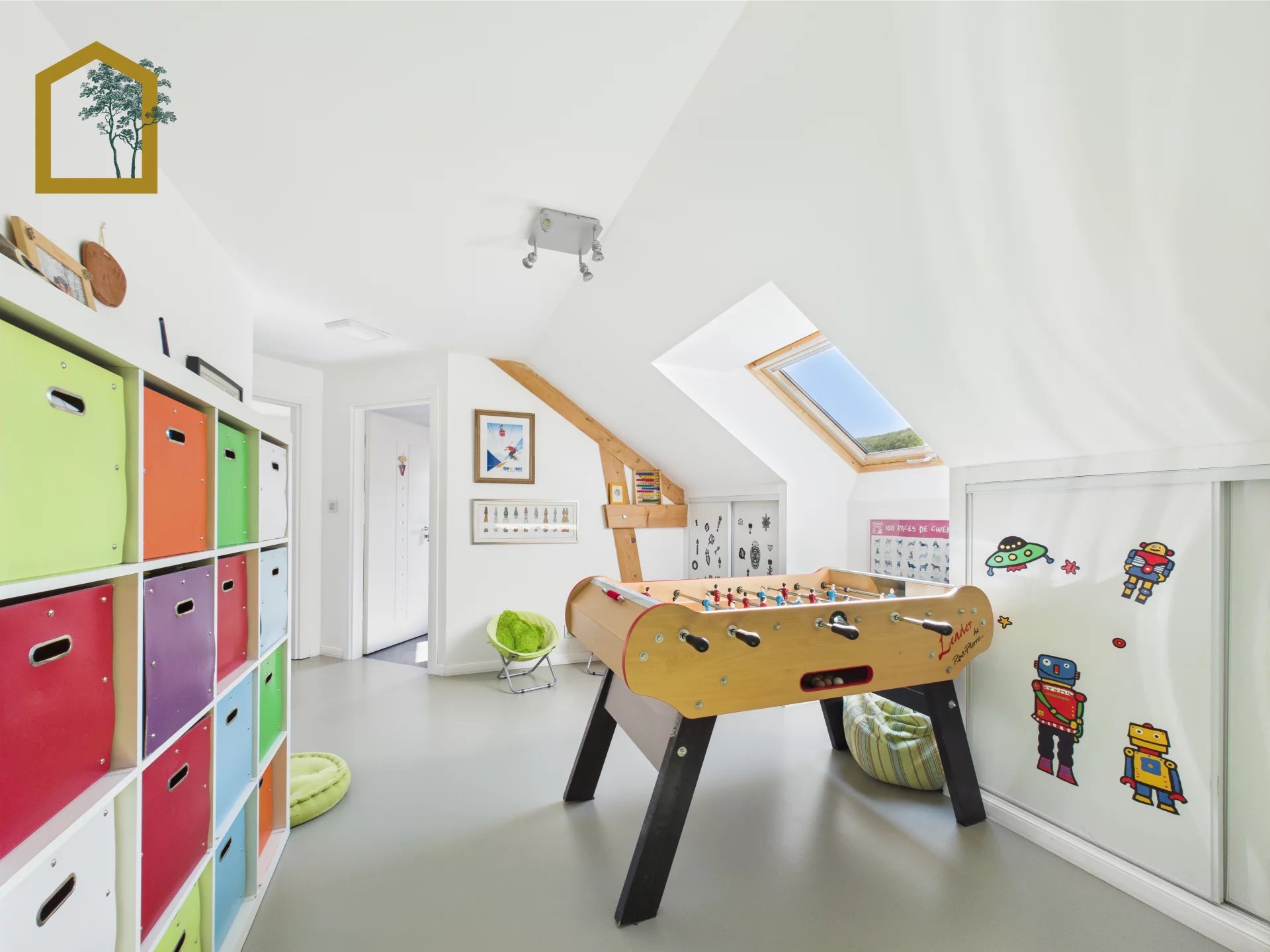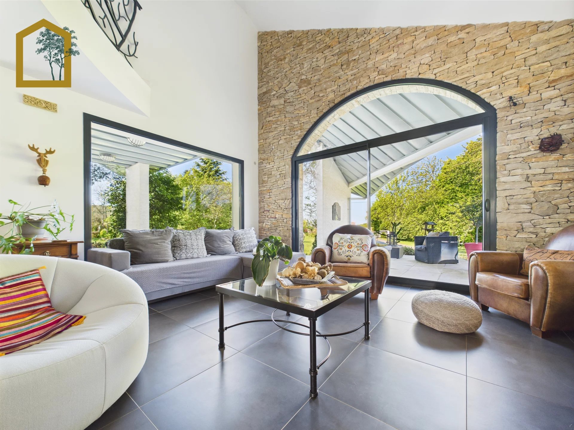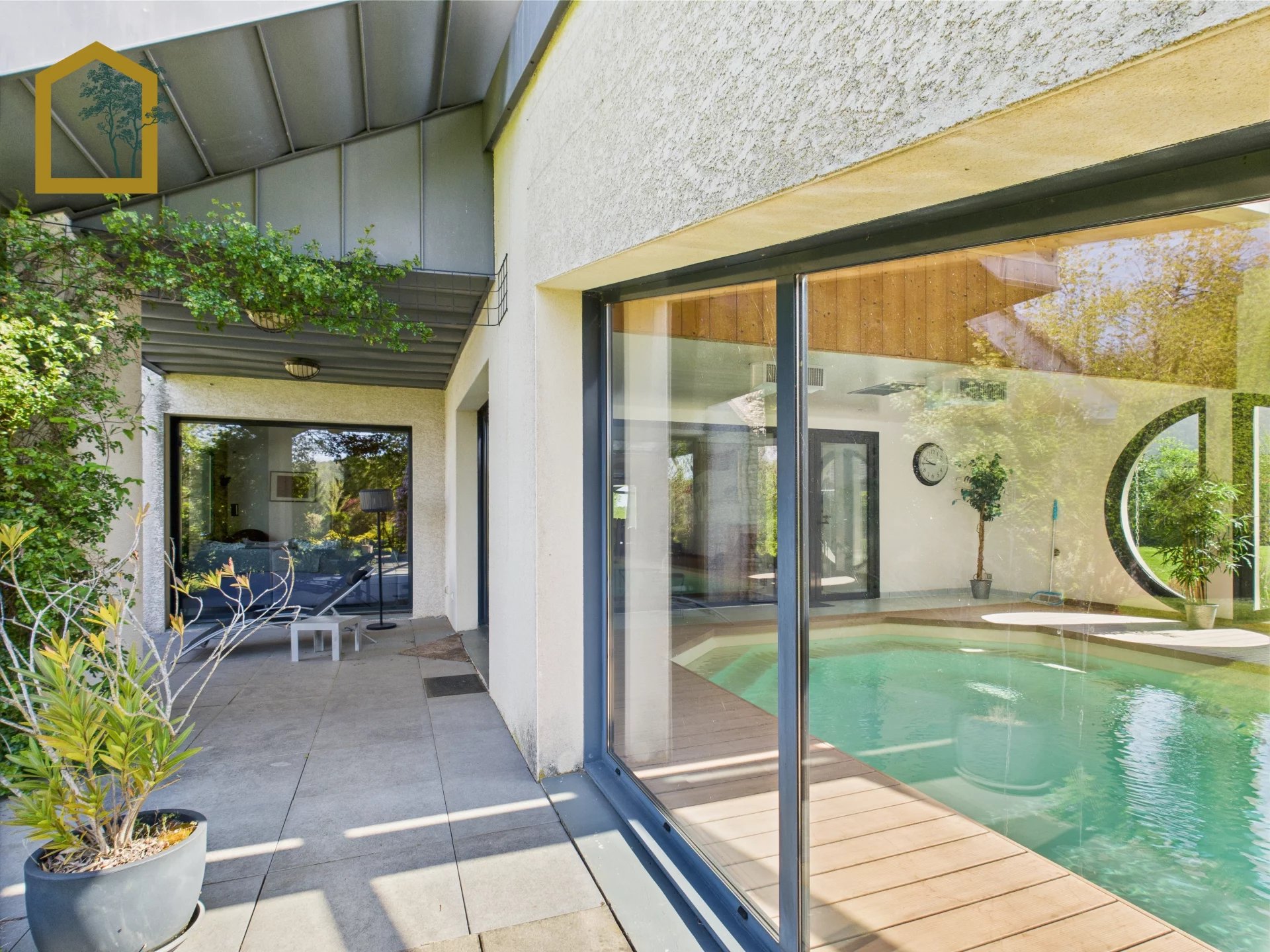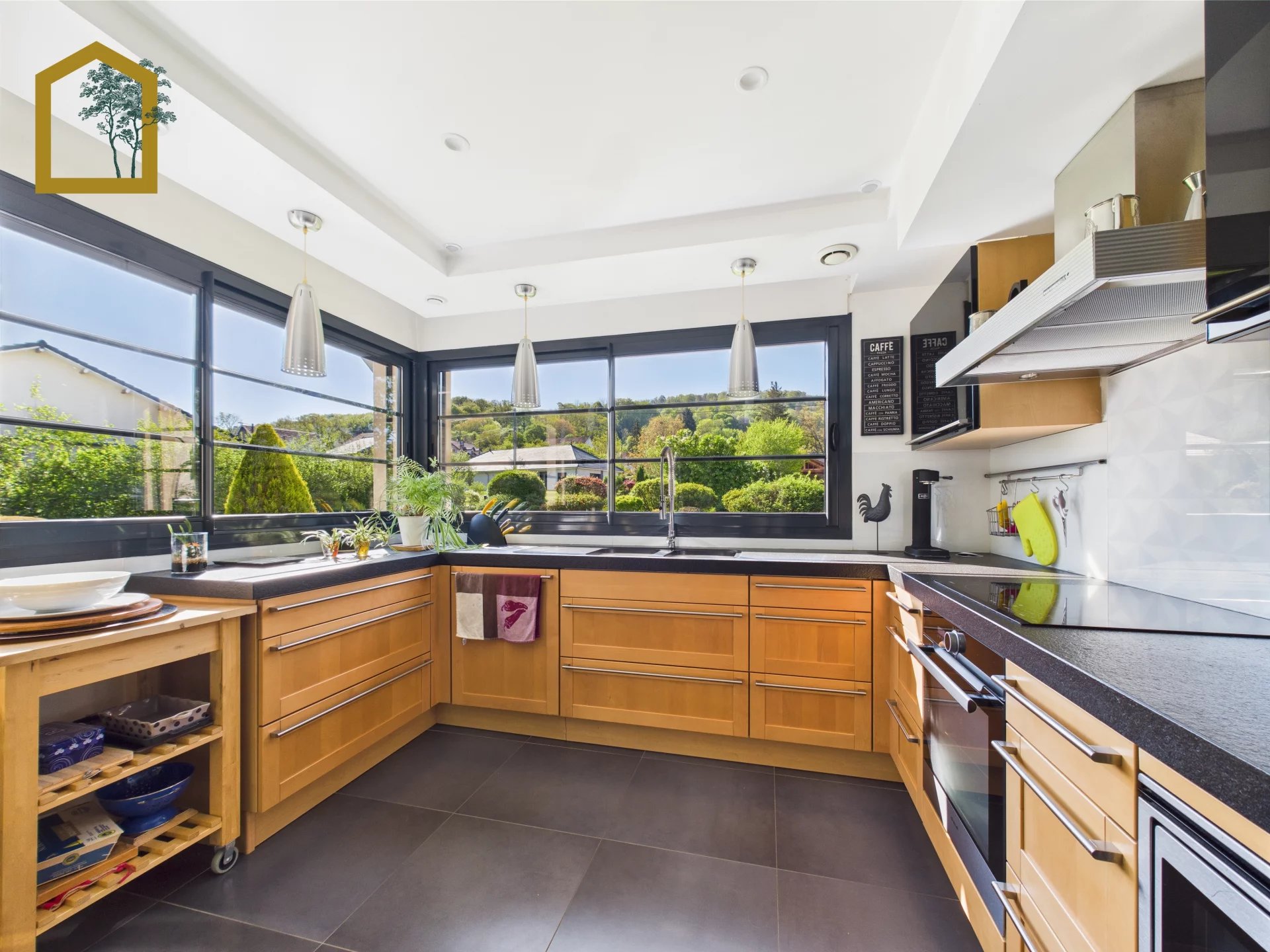 Située dans un charmant petit village de campagne entre Besançon et Montbéliard, cette maison d’exception allie confort moderne, volumes généreux et prestations haut de gamme. D’une surface totale de 440 m², dont 225 m² habitables, elle est édifiée sur un terrain de 75 ares offrant intimité et vue dégagée au pied de la forêt. La villa se compose de 8 pièces dont 5 chambres, parmi lesquelles une superbe suite parentale avec dressing, salle d’eau privative et terrasse. Vous profiterez également d’une salle de bains, de deux salles de douche et d’une cuisine contemporaine entièrement équipée avec électroménager de marque Brandt. Côté détente et loisirs, la maison dévoile une piscine intérieure, une salle de sport, ainsi qu’une salle de cinéma privée. Plusieurs terrasses permettent de profiter des extérieurs à différents moments de la journée, tandis que la cheminée bois moderne apporte une atmosphère chaleureuse et atypique. Le garage de plus de 60 m² peut accueillir plusieurs véhicules et s’accompagne d’un espace potager et d’une serre pour les amoureux de nature. Un cadre de vie privilégié : Nichée dans une plaine au pied de la forêt, cette propriété bénéficie d’un environnement calme, sans vis-à-vis, garantissant une intimité totale. Les commodités essentielles (écoles, commerces, transports) se trouvent à proximité, et les amateurs d’activités de plein air apprécieront les sentiers de randonnée et les deux golfs situés aux alentours. Prestations techniques et confort : Construite en 2007 avec des matériaux de qualité, la villa est conçue pour offrir de hautes performances énergétiques : • Chauffage par géothermie horizontale et production d’eau chaude sanitaire par système thermodynamique, • Isolation en laine de roche, • VMC double flux pour une ventilation optimale, • Construction en parpaings et pierre de taille avec rives et sous-faces en zinc, et toit de la piscine également en zinc, assurant une excellente durabilité. • Assainissement relié au tout-à-l’égout. • Taxes foncières faibles pour un bien de ce standing. Une propriété rare à découvrir : Alliant espace, élégance et environnement privilégié, cette villa d’architecte constitue un véritable havre de paix à seulement quelques minutes de l'accès autoroutes reliant Besançon et Montbéliard. ✮ DISPONIBLE APRÈS VISITE ✮ • Visite virtuelle • Plans 📞 Pour plus d’informations ou organiser une visite : Contactez Jérémy AUBERT ou L’Immobilier du Parc à Belfort.