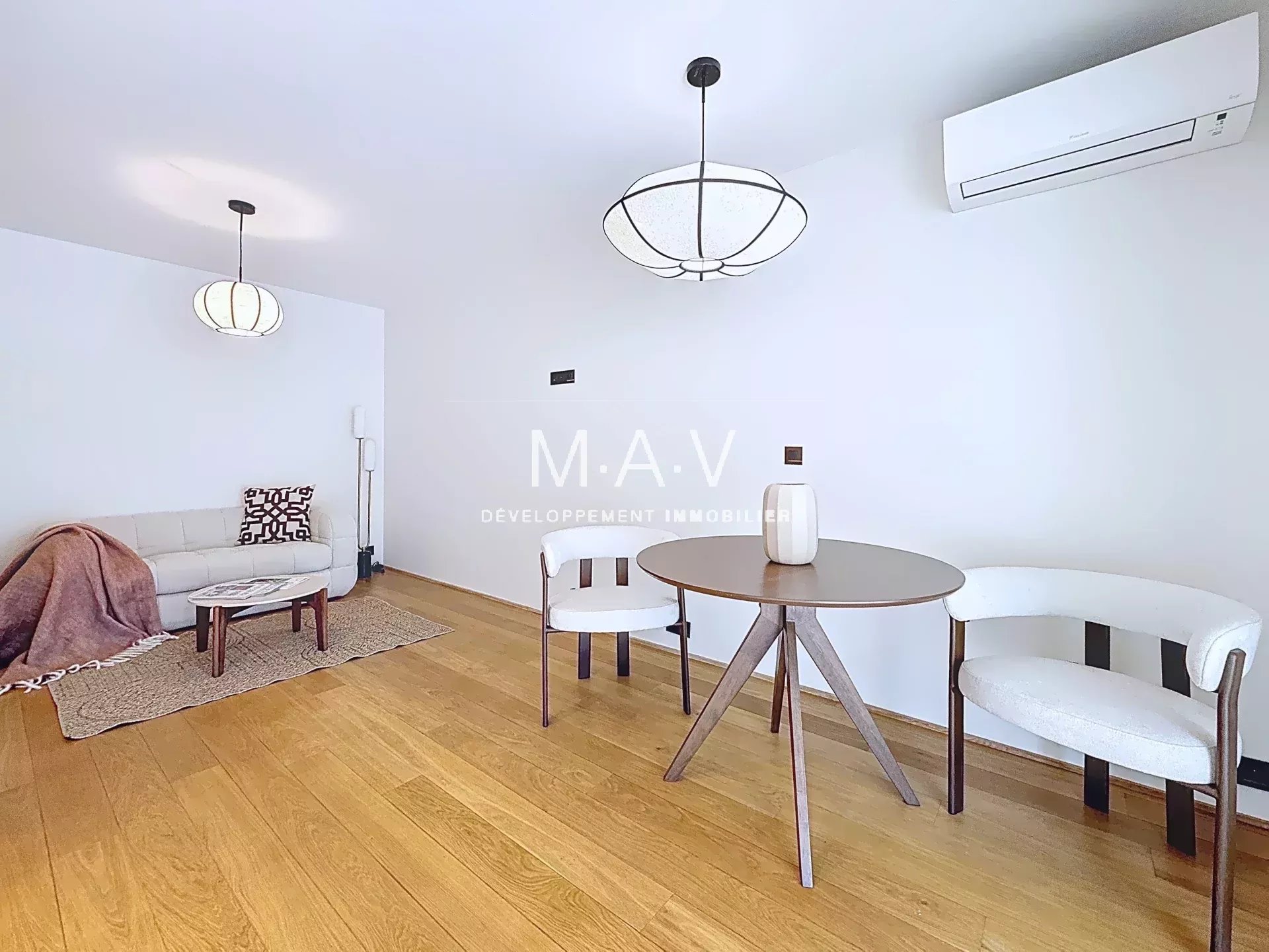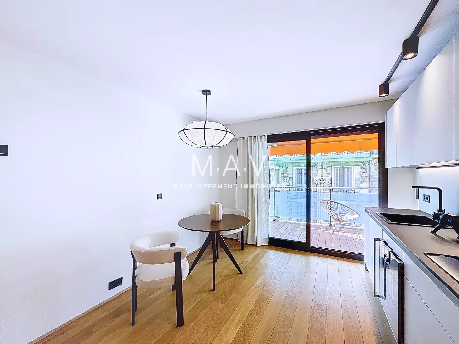 Idéalement situé au coeur du Carré D'Or, rue Maréchal Joffre, à 5 mn de la mer, à proximité des boutiques de luxe, et des lignes 1 et 2 du tramway (accès direct Aéroport/Port), au sein d'un immeuble moderne de standing avec gardien. Cet appartement 2 pièces, d'une superficie de 45 m2, niché au 5ème étage, incarne l'élégance contemporaine dans le quartier le plus prisé de Nice. Dès l'entrée avec rangement, le ton est donné : des volumes optimisés et une luminosité baignant chaque pièce grâce à son orientation ouest/sud. Le séjour, prolongé par une superbe terrasse de 14 m², offre un espace de réception unique. La cuisine design, véritable signature esthétique, s'intègre parfaitement à cet espace de vie raffiné. La partie nuit, avec sa chambre ouverte sur l'extérieur, son dressing sur mesure, et son élégante salle de de douche avec toilettes est un havre de calme. Chaque détail a été pensé pour le confort : climatisation réversible, matériaux nobles et mobilier choisi avec soin. Une adresse d'exception pour les plus exigeants. Possibilité de louer une place de parking dans la résidence. Dossier de présentation avec vidéo disponible sur demande.