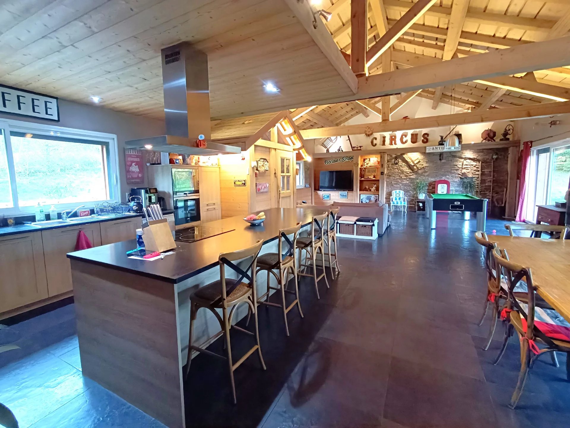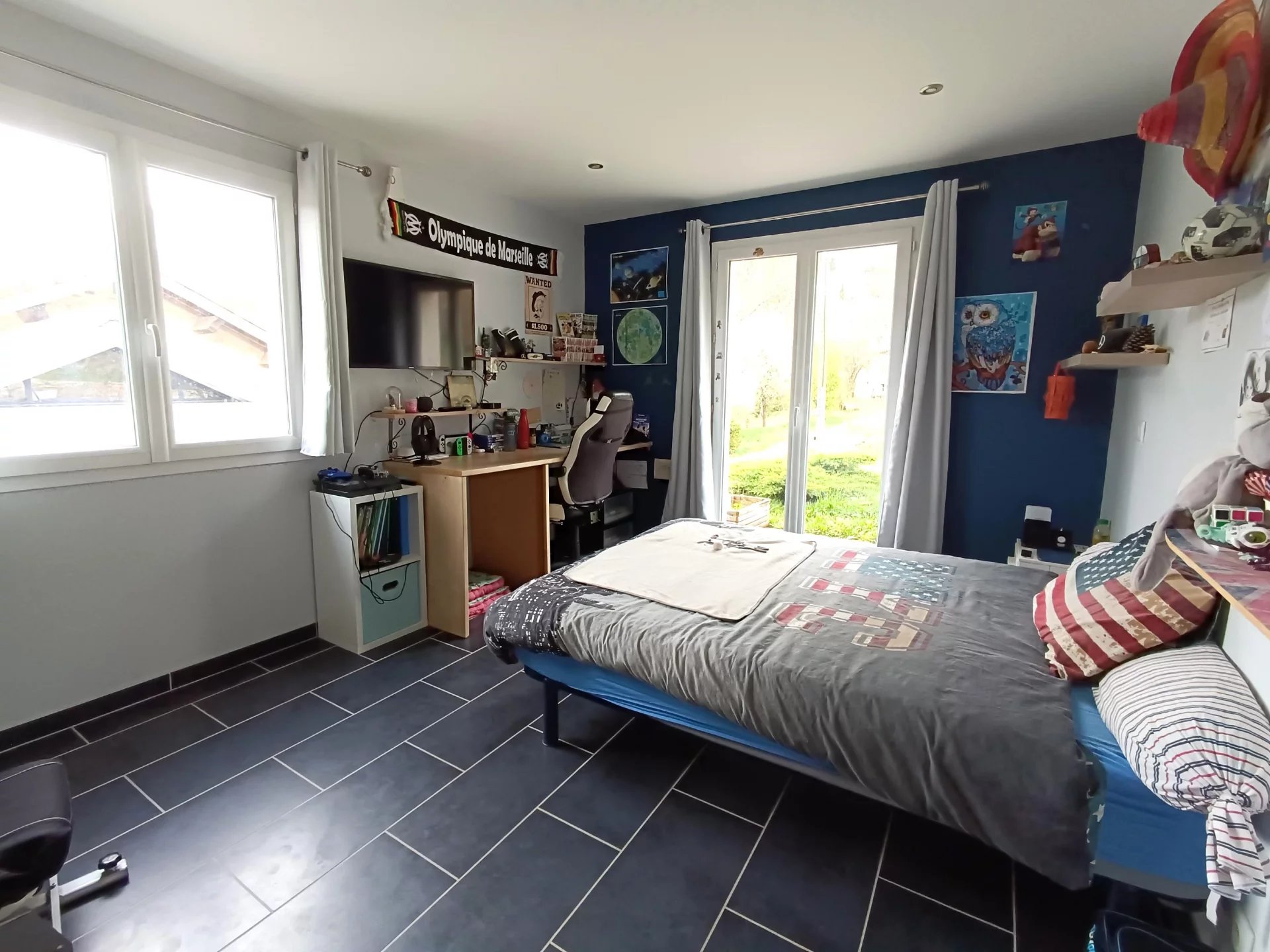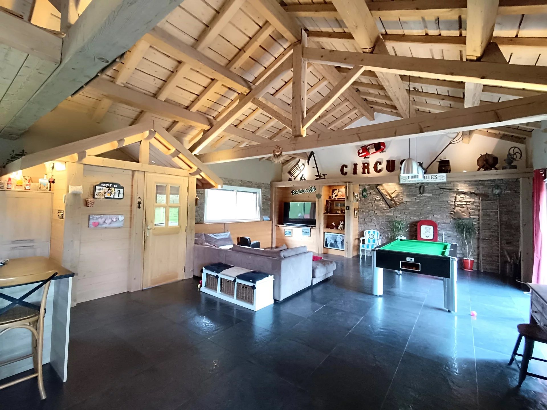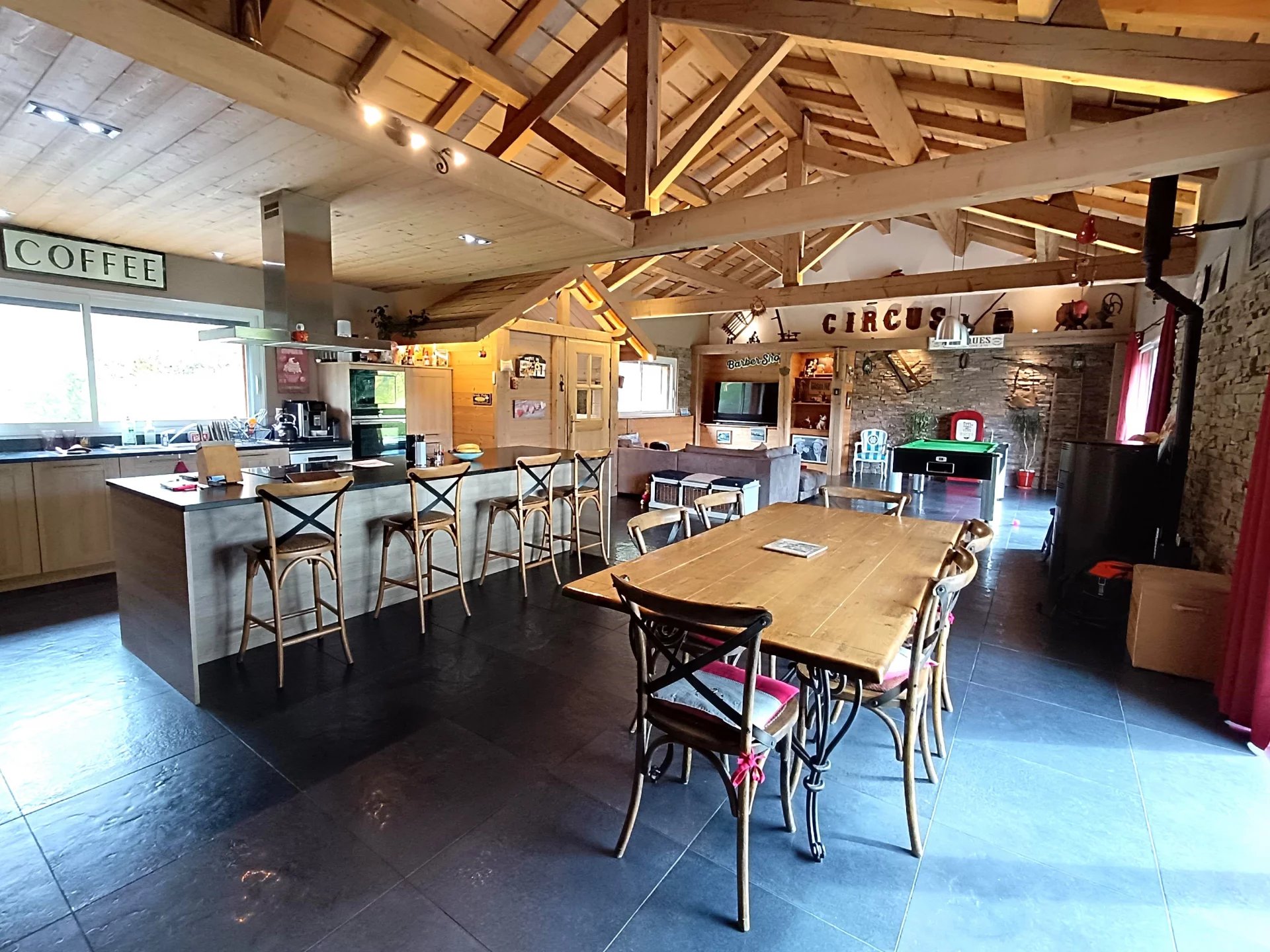 ESPACE IMMO 38 (Karine o6 o1 o7 o2 55 ). Coup de cœur pour cette belle propriété avec piscine, terrain d'environ 2900m2 et chambres d'hôtes. D'une surface de 303 m2 habitables et 341 m2 au sol, cette maison est située dans un petit hameau très calme avec une belle situation dominante et une exposition Sud-Ouest. Entièrement rénovée cette maison offre de belles prestations et d'excellentes performances thermiques : DPE: C et GES: A A l'extérieur : Vous pourrez profiter d'une belle piscine de 10x4m avec margelle en Travertin, liner armé, pataugeoire et vue sur les montagnes, d'un grand jardin au calme, d' un local technique de 16m2 et d'un espace de stationnement entièrement goudronné. A l'intérieur : La maison se compose d'une spacieuse entrée pleine de charme avec sa forme de chalet, d'une magnifique pièce de vie de plus de 82 m2 avec charpente traditionnelle apparente, cuisine (Schmidt) ouverte toute équipée, cellier buanderie attenant, espace salon avec poêle à granulés. Le tout donnant sur le jardin plat exposé Sud. Suite parentale de 25 m2 avec grand dressing et salle d'eau (baignoire plus douche) et deux chambres de près de 14m2 avec rangements . Cet espace est entièrement de plein pied. A l'étage, vous trouverez un grand salon, une belle salle de bain avec wc et deux grandes chambres mansardées de plus de 22m2 chacune. Cet espace est actuellement exploité en chambres d'hôtes labellisées " Inspiration Vercors " Au niveau -1 se trouve un grand salon /Cinéma de 47 m2 avec bar offrant la possibilité de créer un studio indépendant . Cet espace est accessible par l'intérieur ou par le garage /chaufferie/cave de plus de 37m2 . La maison dispose de tout le confort nécessaire : - Chauffage performant grâce à la chaudière à pellets de 2022 (Chauffage centrale ) plus poêle granulés. - Domotique - Fibre - Cumulus électrique - Menuiseries PVC et Alu en 4/16/4 - Volets roulants électriques - Raccordée au tout à l'égout - Parking goudronné Taxe foncière : 1100€/an DPE:C et GES: A Aucun travaux à prévoir ! N'hésitez pas à me contacter pour obtenir plus d'informations et venir visiter ! PRIX de vente : 599.000€ honoraires agence inclus à la charge des vendeurs. CONTACT : Karine o6 01 07 02 55 ou espaceimmo.goyot@hotmail.com Cette annonce immobilière a été rédigée par Karine GOYOT ,agent commercial immobilier immatriculée au RSAC de Grenoble sous le n° 415 296 797 . Les informations concernant les risques auxquels peut être soumis ce bien sont disponibles sur le site Géorisques : www.georisques.gouv.fr