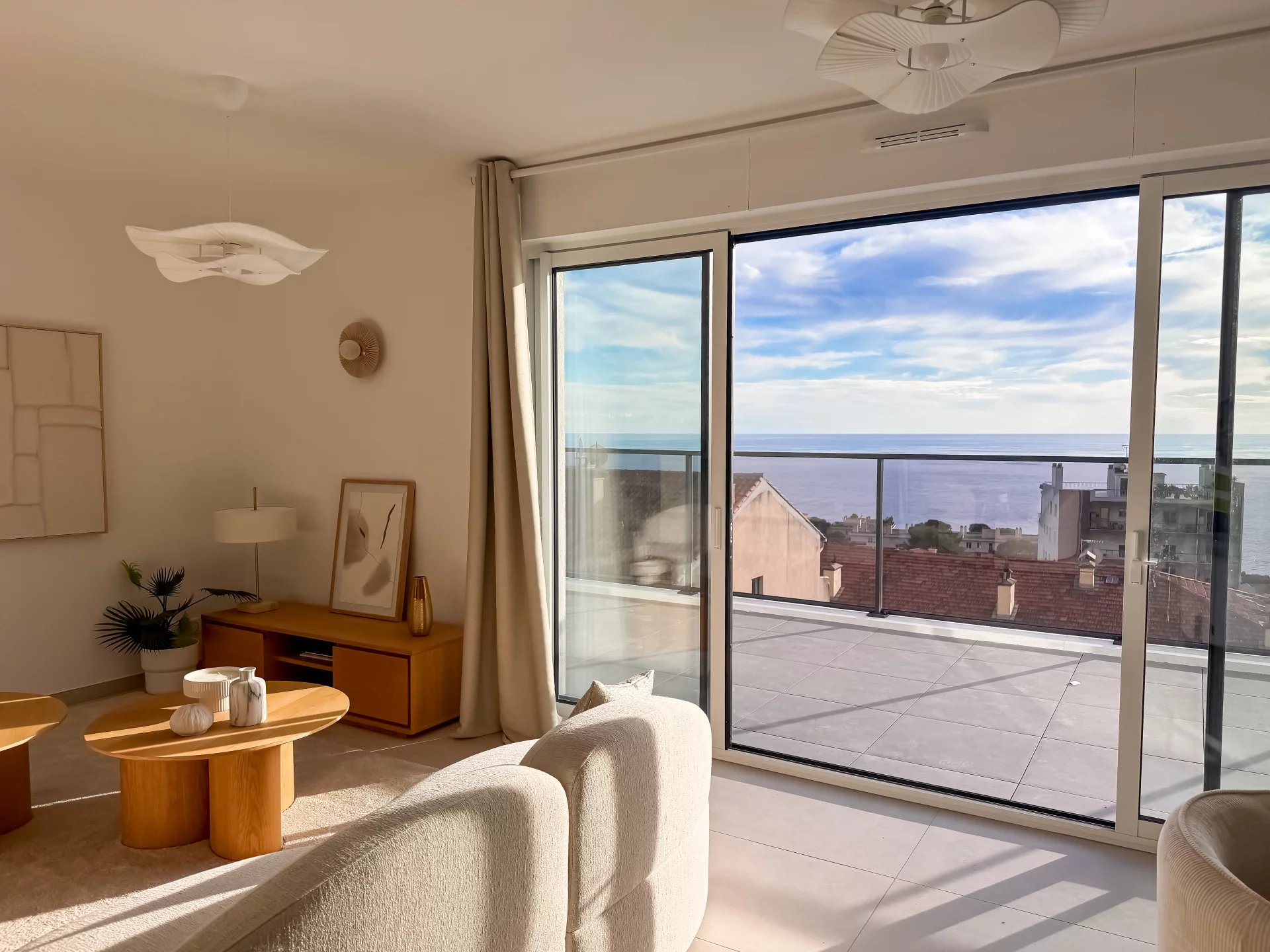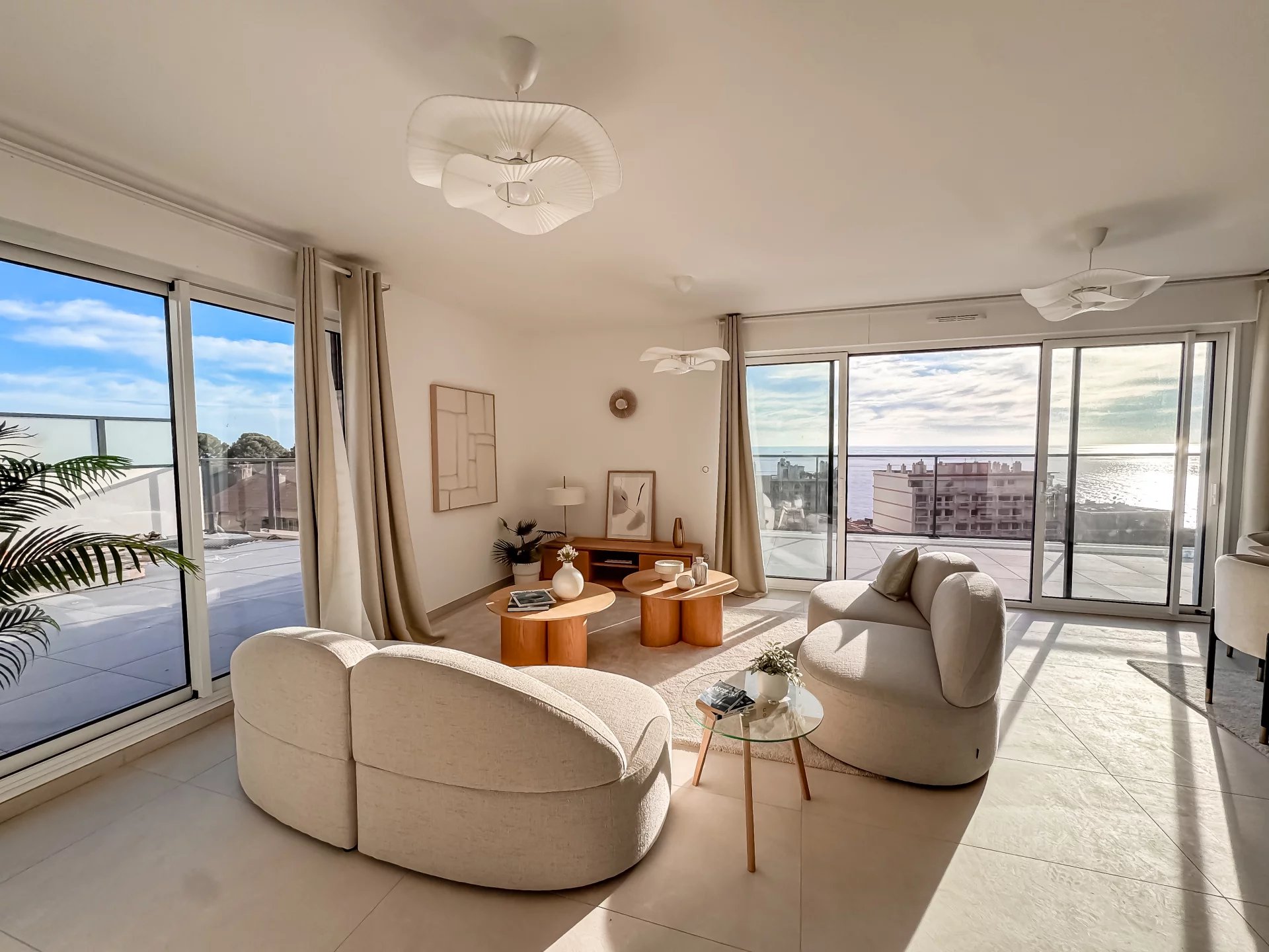 Ultimo piano con 65 m² di terrazze ✨ Raro e luminoso Situato all’ultimo piano, questo quattro locali gode di tripla esposizione e di una luminosità eccezionale. Inserito in una residenza di prestigio nel cuore di Cap-d’Ail, offre 65 m² di spazio esterno distribuiti su tre terrazze, ideale per godersi la vita sulla Costa Azzurra. 🏡 Spazi studiati per il benessere Il soggiorno si apre sulla terrazza più grande di 25,5 m², estendendo naturalmente gli ambienti verso l’esterno e offrendo una vista panoramica sul mare. Due camere hanno ciascuna la propria terrazza, mentre una terza camera completa la zona notte con bagno e doccia separata. Gli spazi sono stati progettati per combinare eleganza, fluidità e comfort moderno. ✨ Servizi e comfort di alto livello Aria condizionata, doppi vetri, finestre scorrevoli, termostato connesso, tapparelle elettriche, ascensore, accesso disabili, fibra ottica, codice digitale e citofono video. ℹ️ Informazioni legali Spese a carico del venditore. Le informazioni sui rischi a cui l’immobile è esposto sono disponibili su: georisques.gouv.fr.