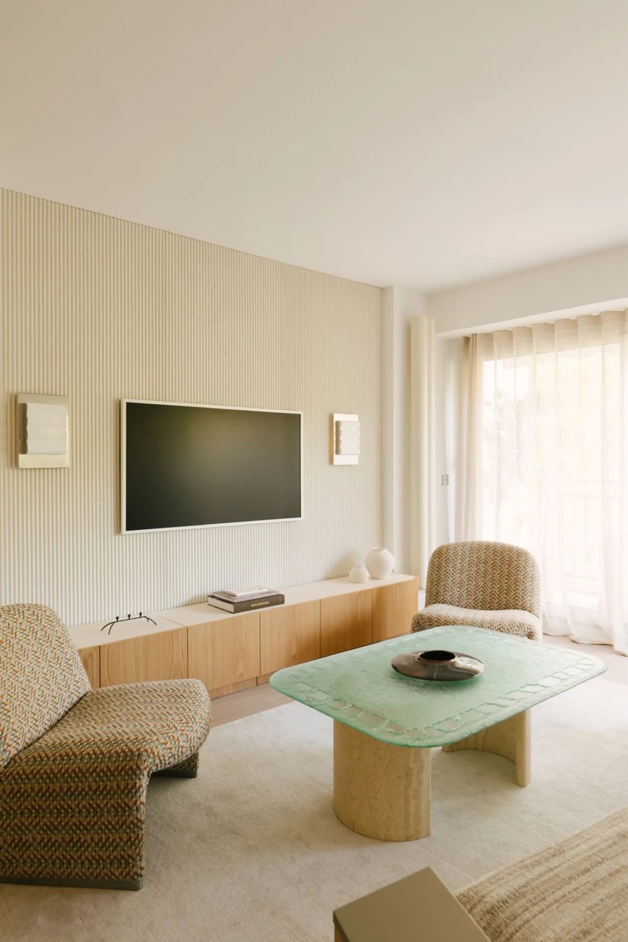 Il se compose d’une belle pièce de vie spacieuse et raffinée, idéale pour recevoir, de deux chambres confortables, chacune offrant calme et intimité, ainsi que de deux salles de bains élégantes, pensées pour un confort quotidien optimal.
