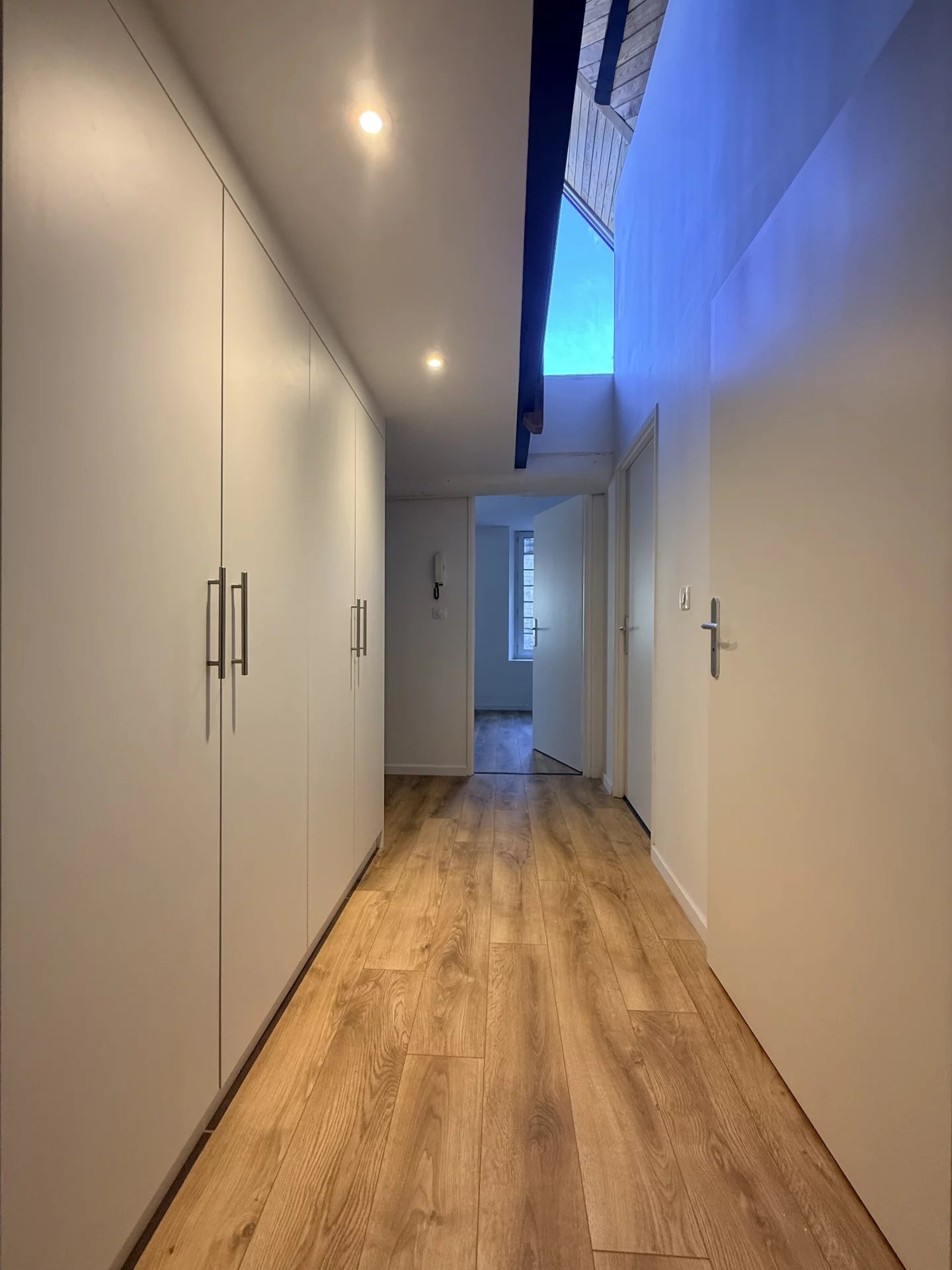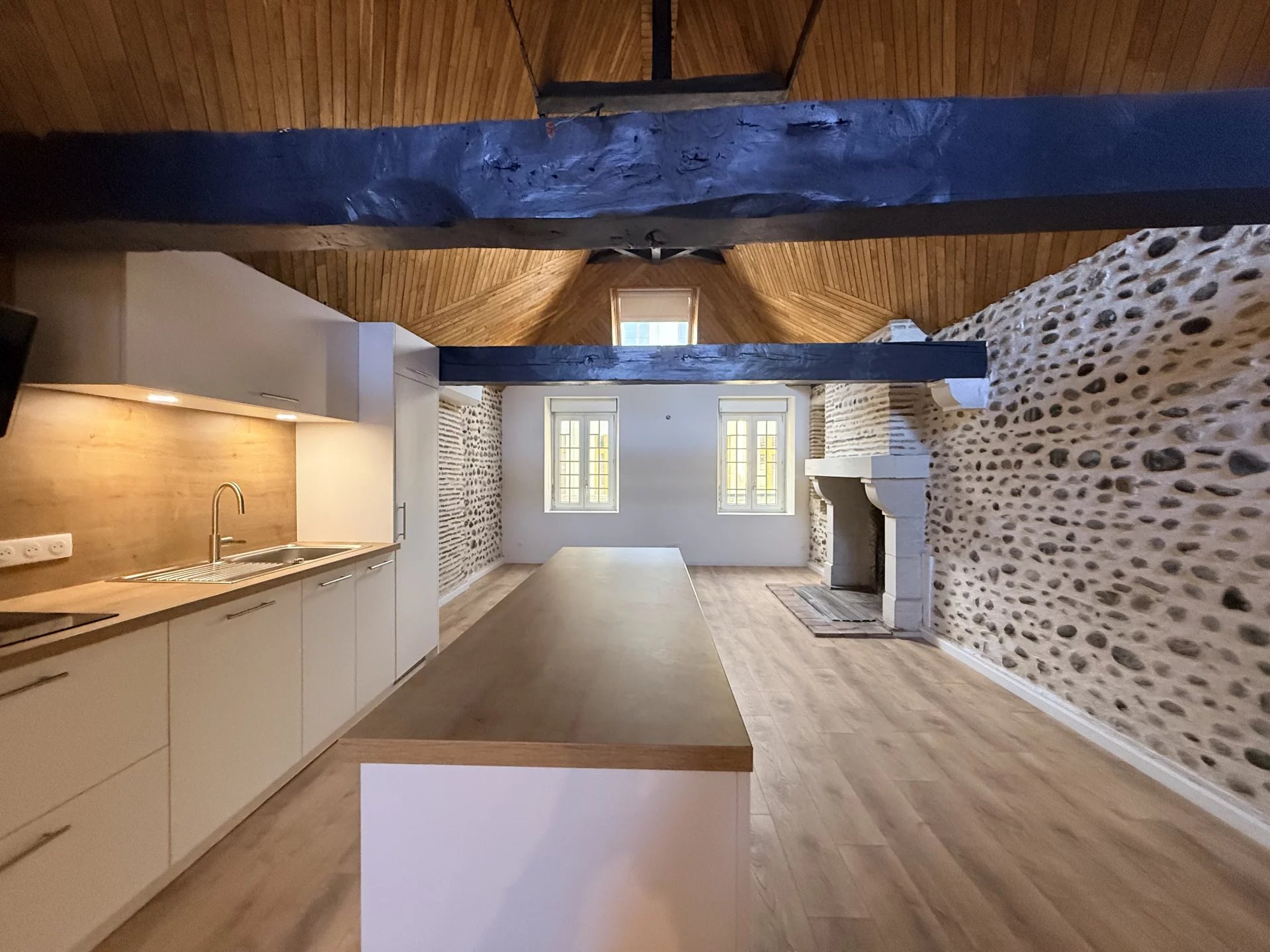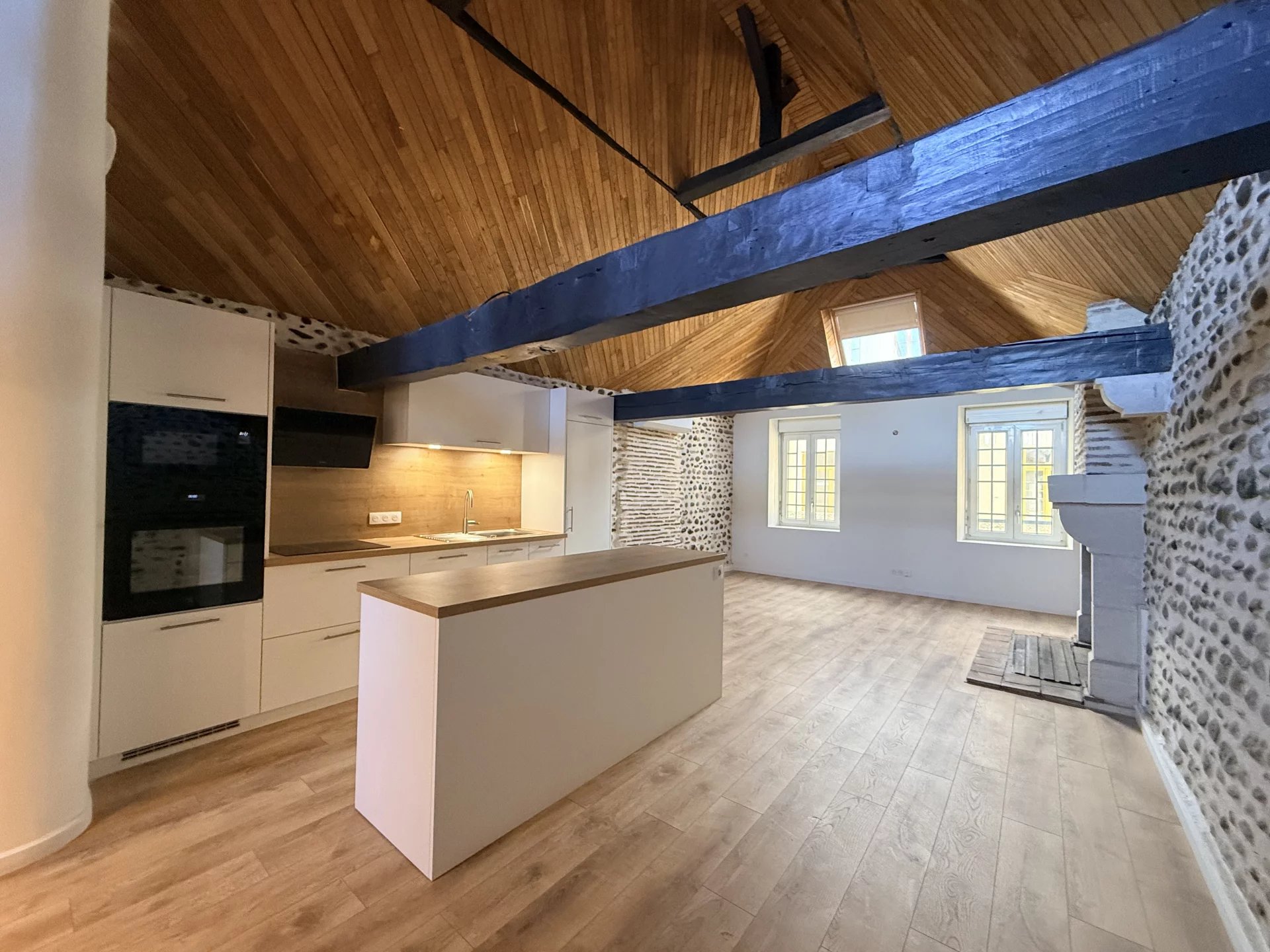 Centre ville de Pau, loft 3 chambres. Appartement en triplex entièrement rénové, composé d'une pièce de vie avec cuisine ouverte équipée, trois chambres, deux salles d'eau, deux WC et une belle terrasse de 17m² avec une vue dégagée. Prestations : climatisation réversible, cuisine équipée, double-vitrage. Possibilité d'avoir une double-garage pour 110€/mois.