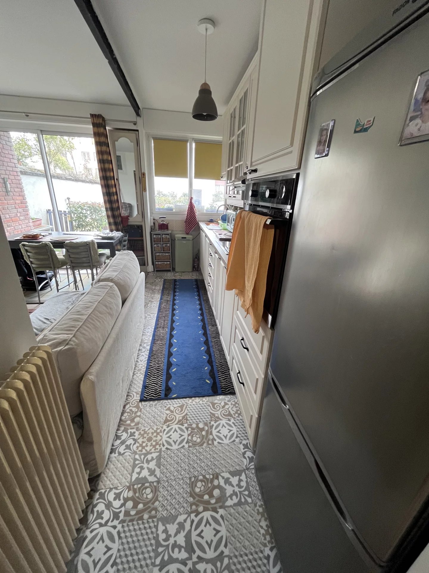 il comprend, une entrée , une chambre avec une terrase de 15 m2 sur rue L'appartement dispose également d’une cuisine totalement équipée ouverte sur le séjour, offrant un espace convivial et lumineux