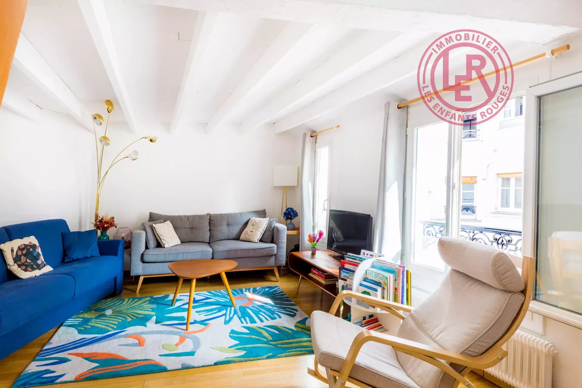 EXCLUSIVITÉ. Rue de Saintonge. Au sein d'une belle copropriété bien tenue et sécurisée datant de 1880, l'agence des Enfants Rouges vous propose un très bel appartement, en duplex, de 56,37 m² loi Carrez et 70,86 m² au sol au 4ème et dernier étage, sans ascenseur. Lumineux avec sa double exposition Est/Ouest, traversant sur rue et cour. Il comprend au premier niveau : une entrée, un séjour/salle à manger avec une cuisine américaine entièrement équipée, un coin bureau, plusieurs rangements sur mesure et une salle de bains avec WC. Au deuxième niveau : une chambre avec rangements et une chambre d'enfant/bureau. Récemment refait avec de beaux matériaux, sans travaux à prévoir. Poutres apparentes, double vitrage. Cet appartement est plein de charme et calme. Ce bien s'accompagne d'une cave, d'un grand débarras et d'une buanderie sur le palier. Local vélo. Les informations sur les risques auxquels ce bien est exposé sont disponibles sur le site Géorisques : www.georisques.gouv.fr Agent commercial immatriculé au Registre spécial des agents commerciaux du greffe du tribunal de commerce de Paris sous le numéro 798 425 583 00019.9.