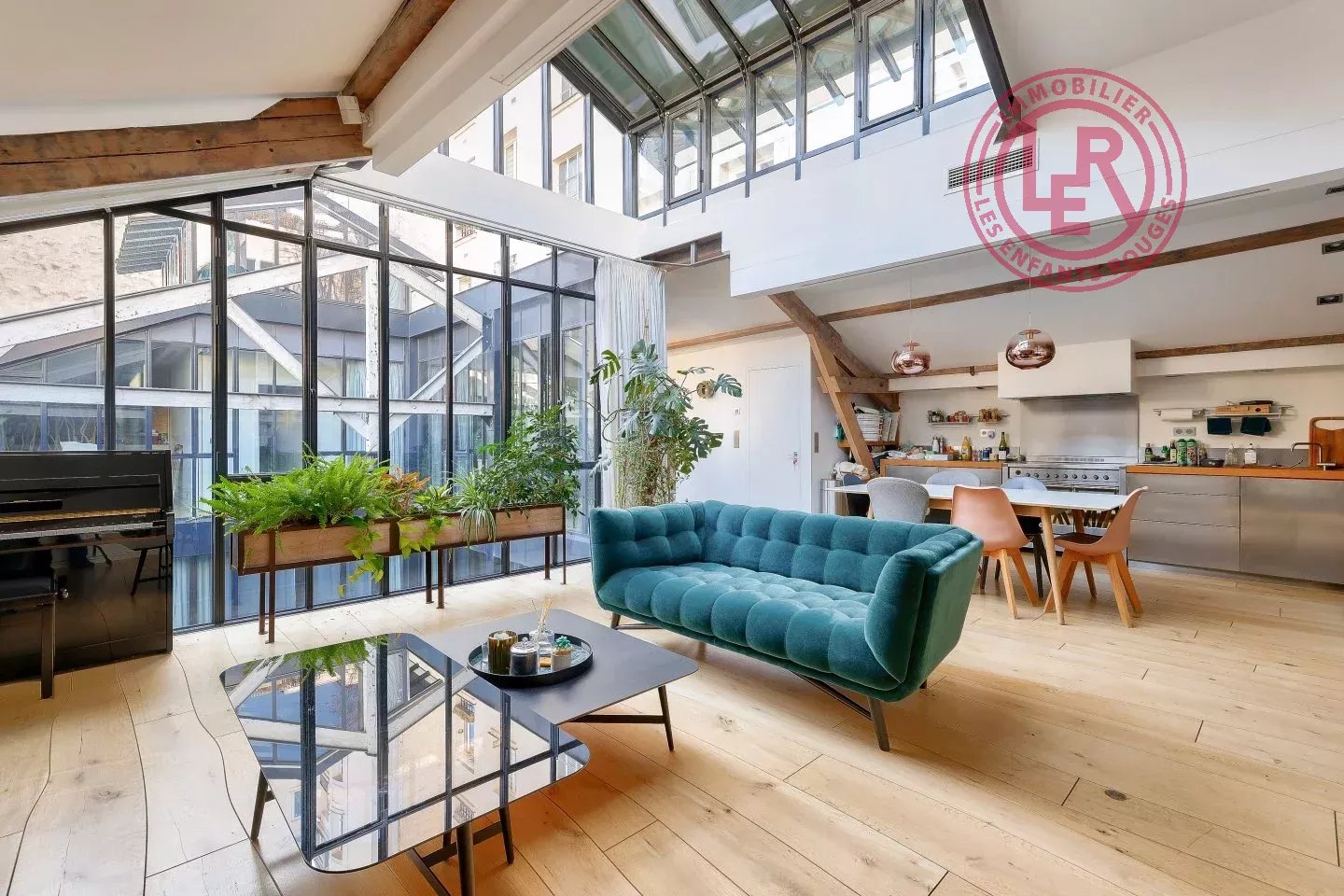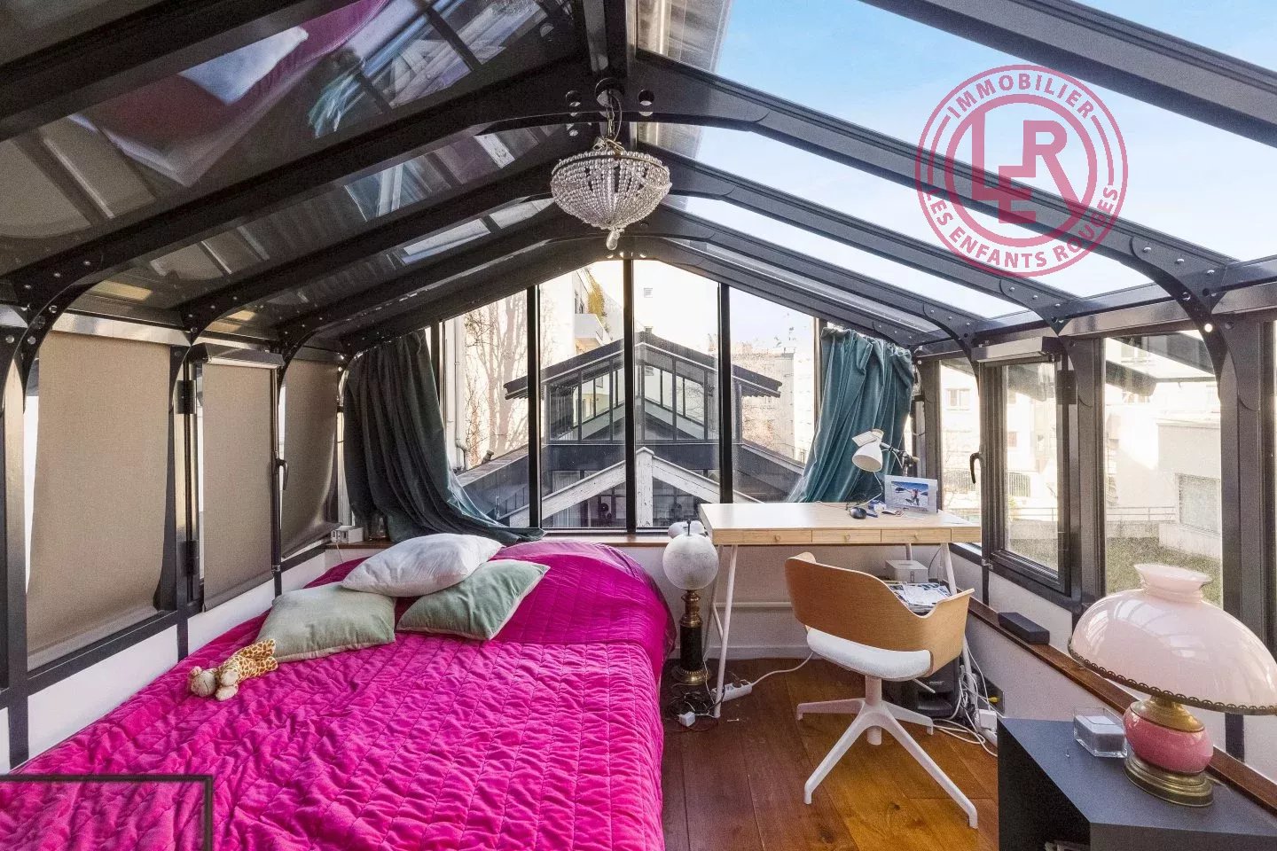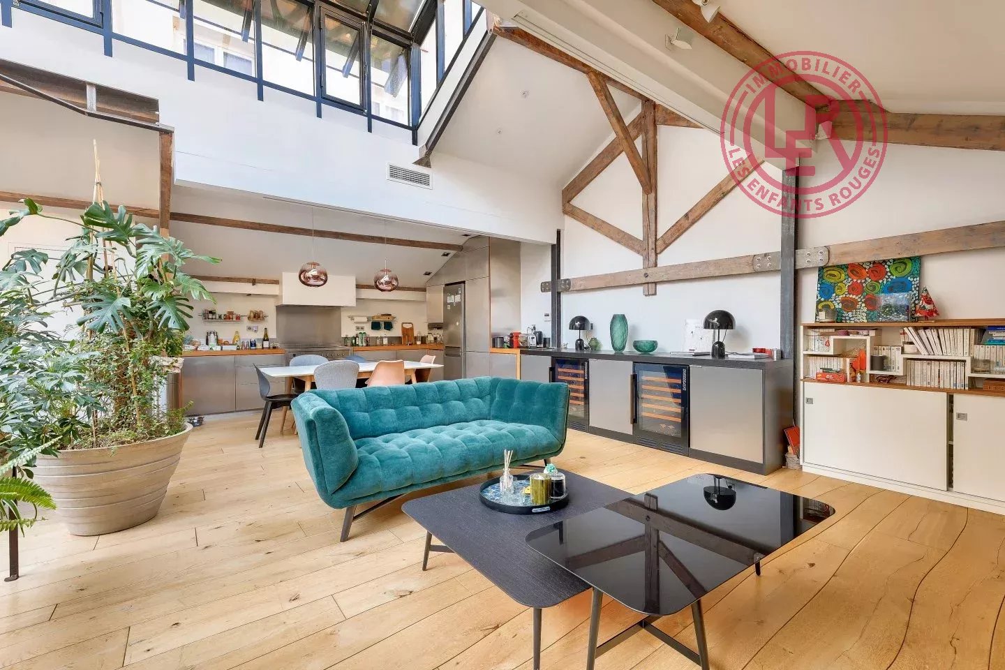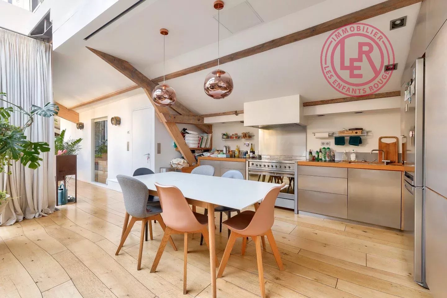 L’Agence des Enfants Rouges vous propose : Niché au dernier étage d’un ancien ensemble d’ateliers en arrière-cour, ce bien rare situé dans le secteur prisé du 18ème arrondissement, quartier Joseph de Maistre offre un calme absolu à deux pas des Abbesses. Dès l’entrée privative, le charme opère, une vaste pièce de vie baignée de lumière se déploie sous un toit cathédrale entièrement vitré. Entièrement rénové avec des matériaux nobles, ce loft de 136 m² au sol propose actuellement deux chambres (possibilité de trois) avec une séparation parfaite entre les espaces de jour et de nuit. Sans aucun vis-à-vis, il allie volumes spectaculaires et prestations haut de gamme dans l’un des quartiers les plus dynamiques de la capitale. Copropriété de 3 lots. Les informations sur les risques auxquels ce bien est exposé sont disponibles sur le site Géorisques : www.georisques.gouv.fr