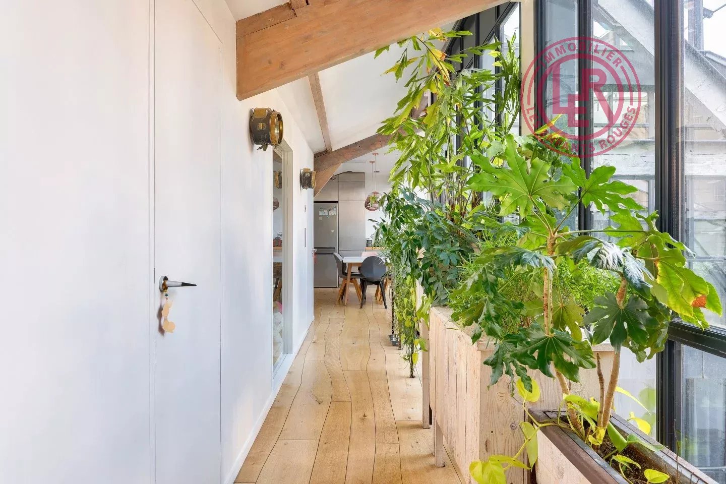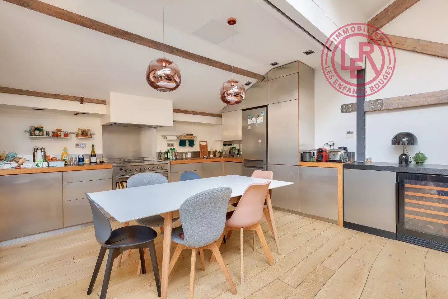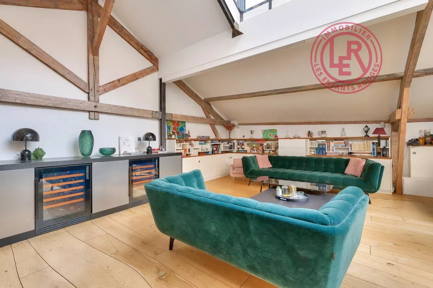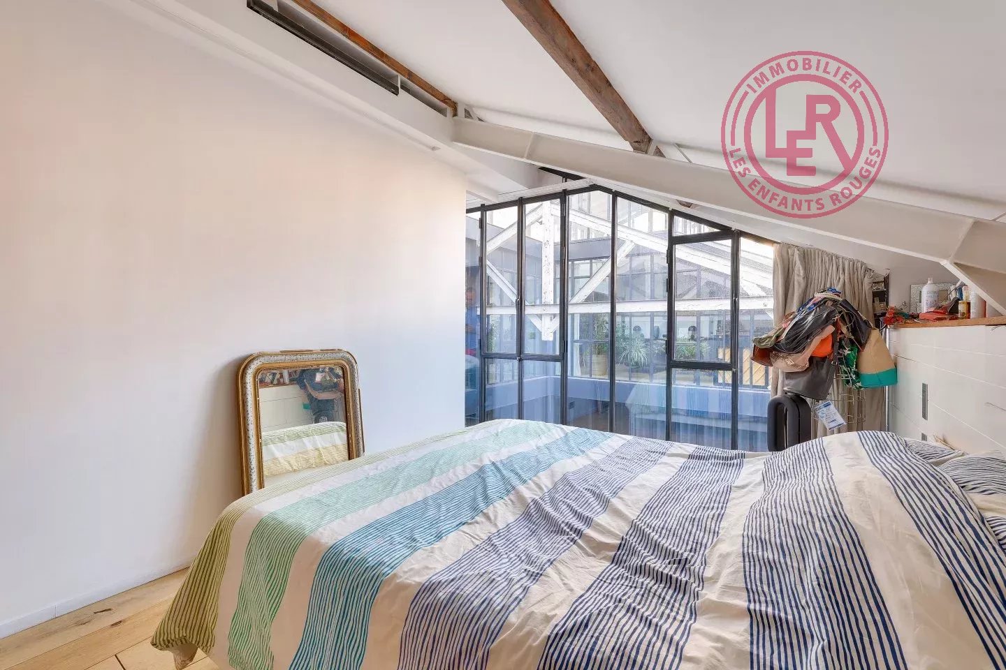 L’Agence des Enfants Rouges vous propose : Niché au dernier étage d’un ancien ensemble d’ateliers en arrière-cour, ce bien rare situé dans le secteur prisé du 18ème arrondissement, quartier Joseph de Maistre offre un calme absolu à deux pas des Abbesses. Dès l’entrée privative, le charme opère, une vaste pièce de vie baignée de lumière se déploie sous un toit cathédrale entièrement vitré. Entièrement rénové avec des matériaux nobles, ce loft de 136 m² au sol propose actuellement deux chambres (possibilité de trois) avec une séparation parfaite entre les espaces de jour et de nuit. Sans aucun vis-à-vis, il allie volumes spectaculaires et prestations haut de gamme dans l’un des quartiers les plus dynamiques de la capitale. Copropriété de 3 lots. Les informations sur les risques auxquels ce bien est exposé sont disponibles sur le site Géorisques : www.georisques.gouv.fr