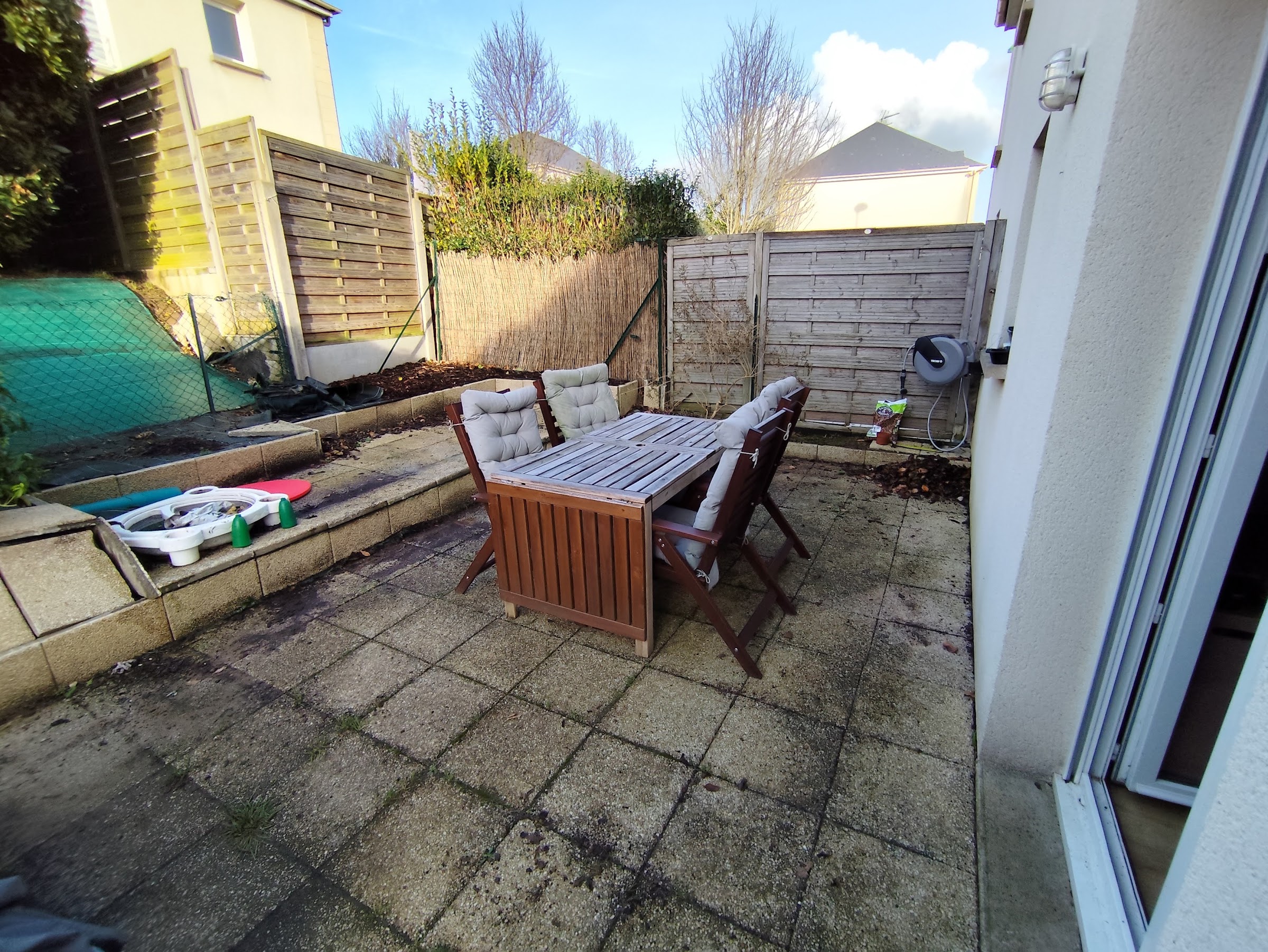Elle dispose d'un jardin d'environ 200m² et d'une terrasse de 15 m² avec salon de jardin.