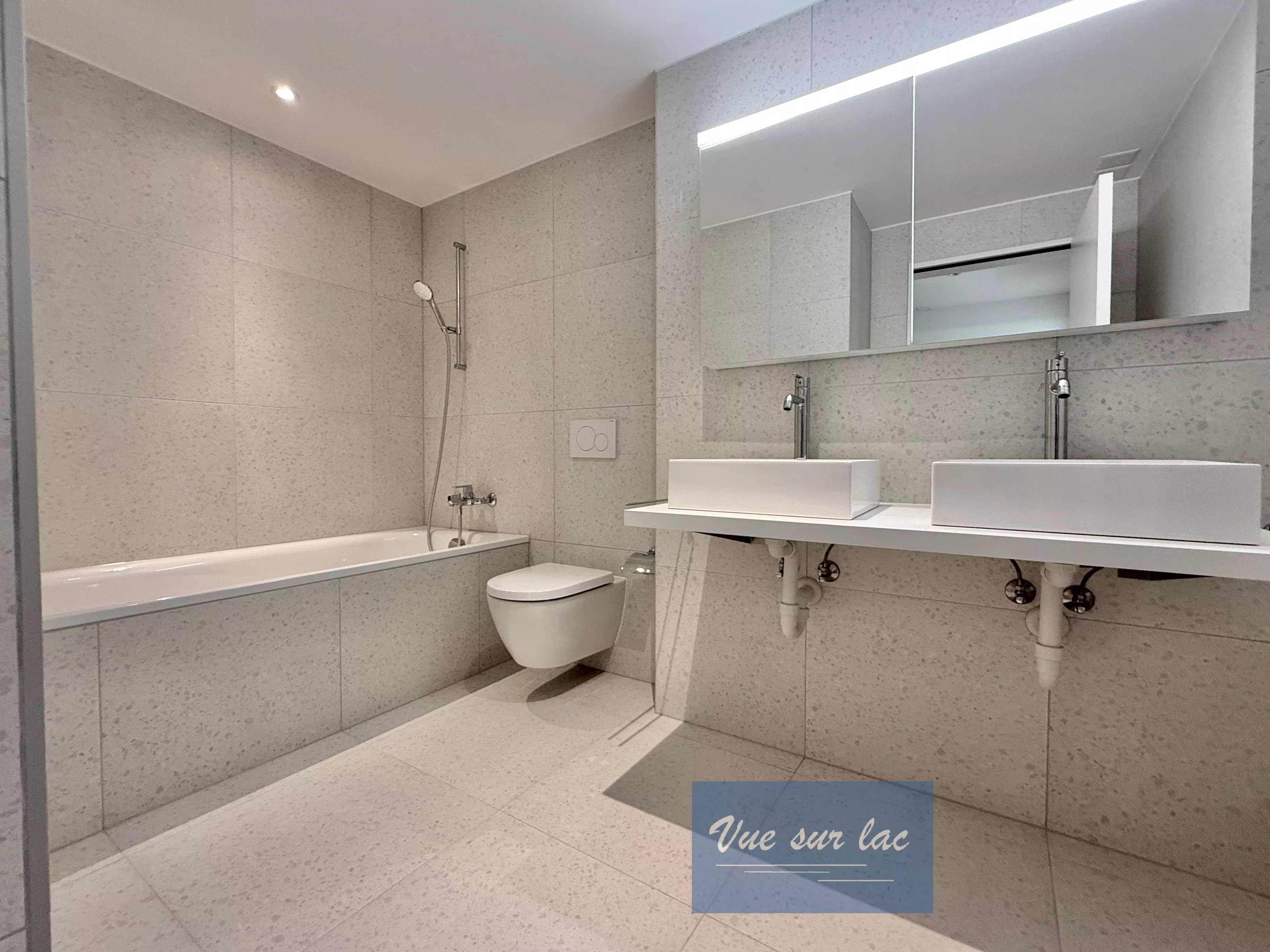 - belle et grande salle de bains, avec WC et double vasque