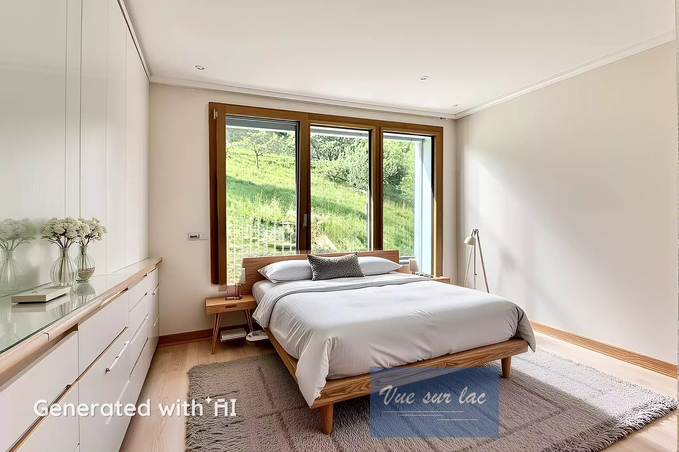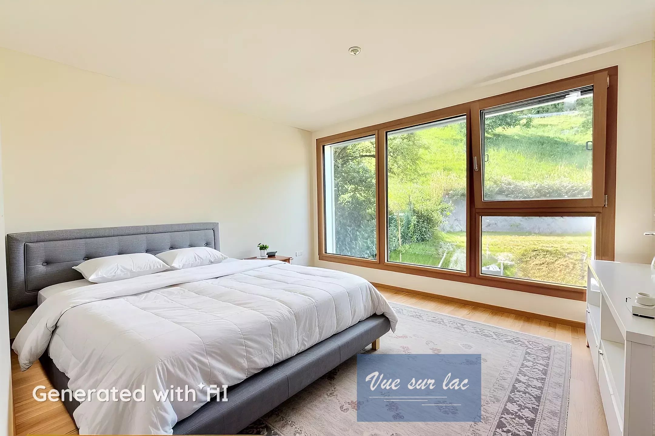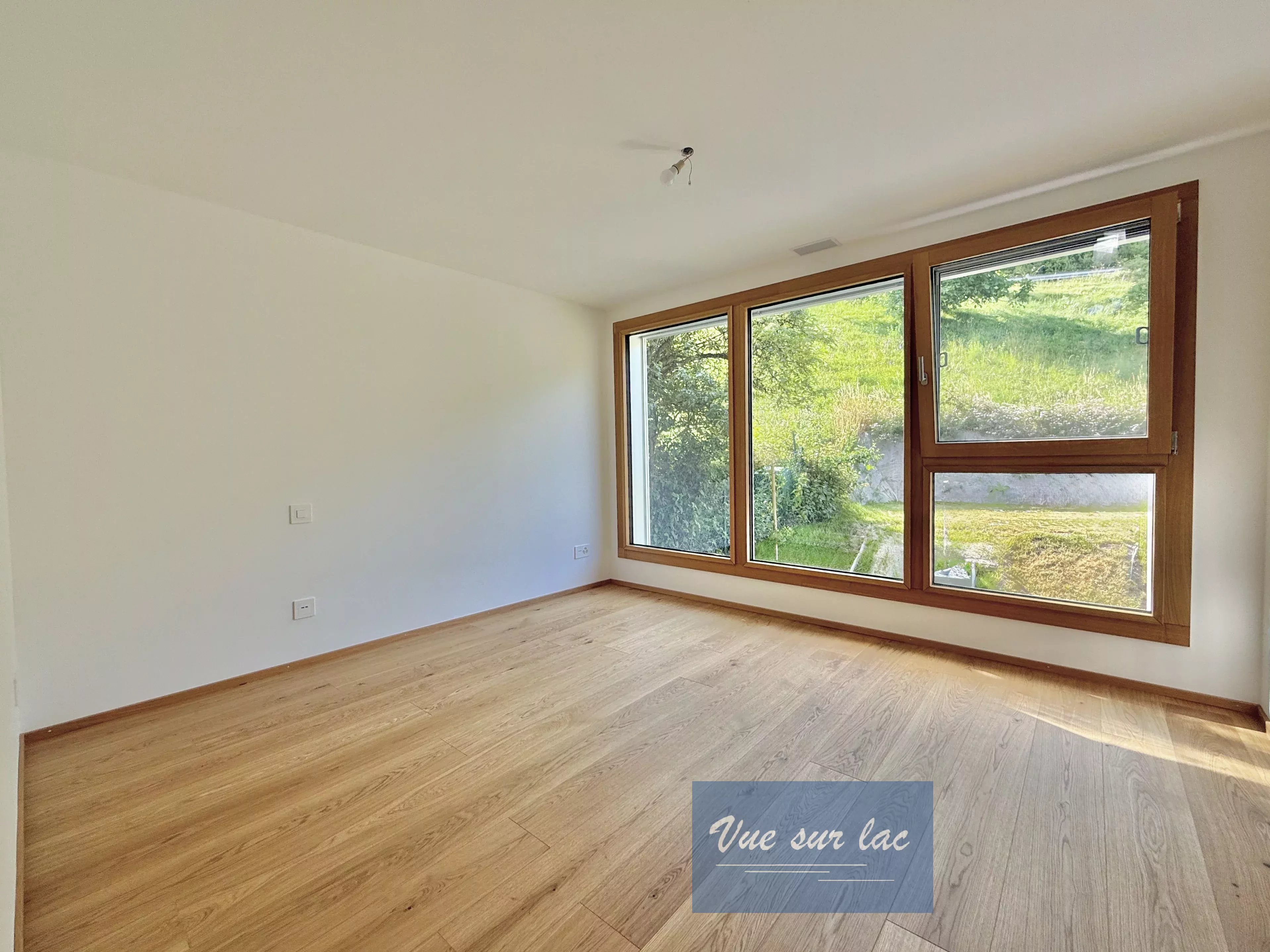 - 2 chambres Sud dont une avec dressing, vue sur le Lac et Alpes au travers de trois "oeil de boeuf" dont le chassis en bois est fait à l'ancienne, les V-Lux dans le toit apportent beaucoup de lumière