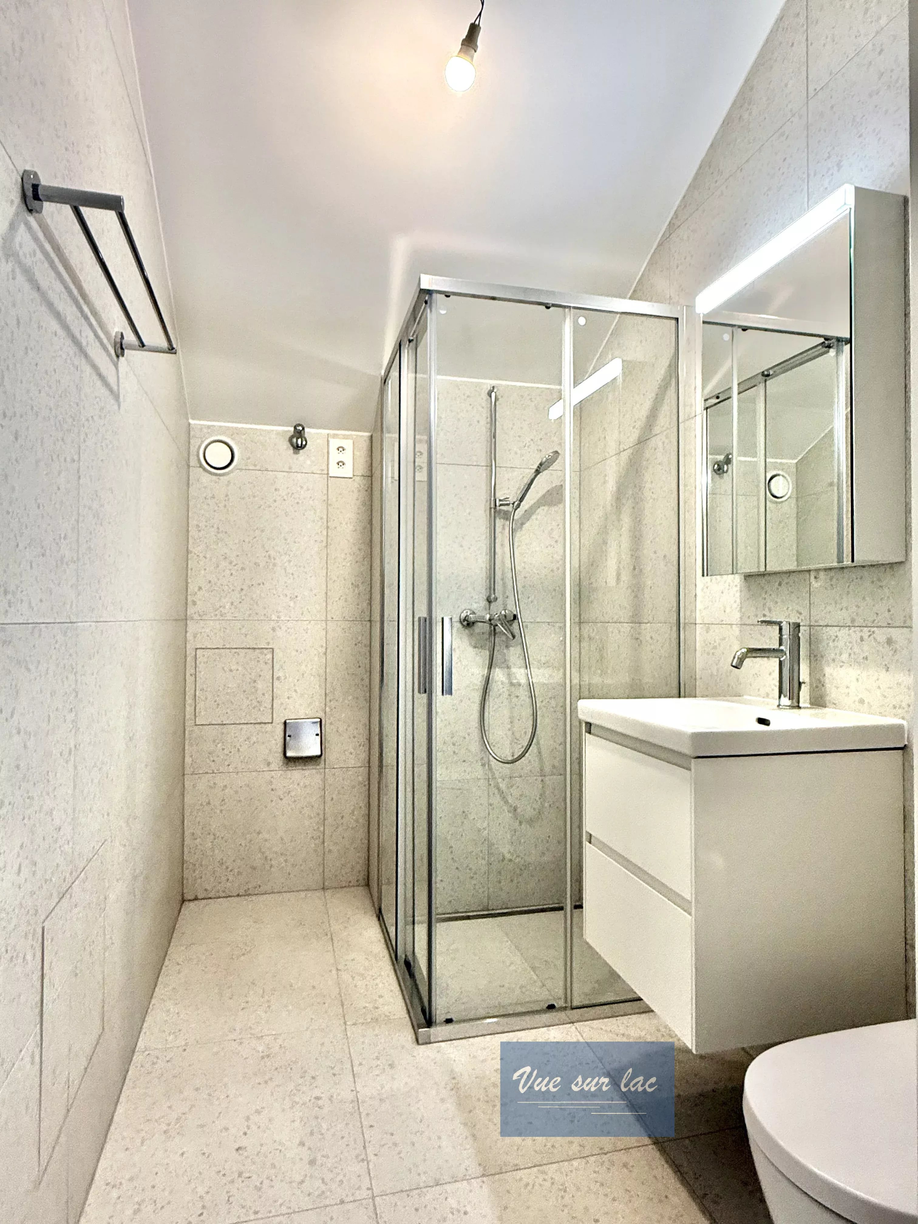 - un WC, lavabo et douche au centre de l'appartement