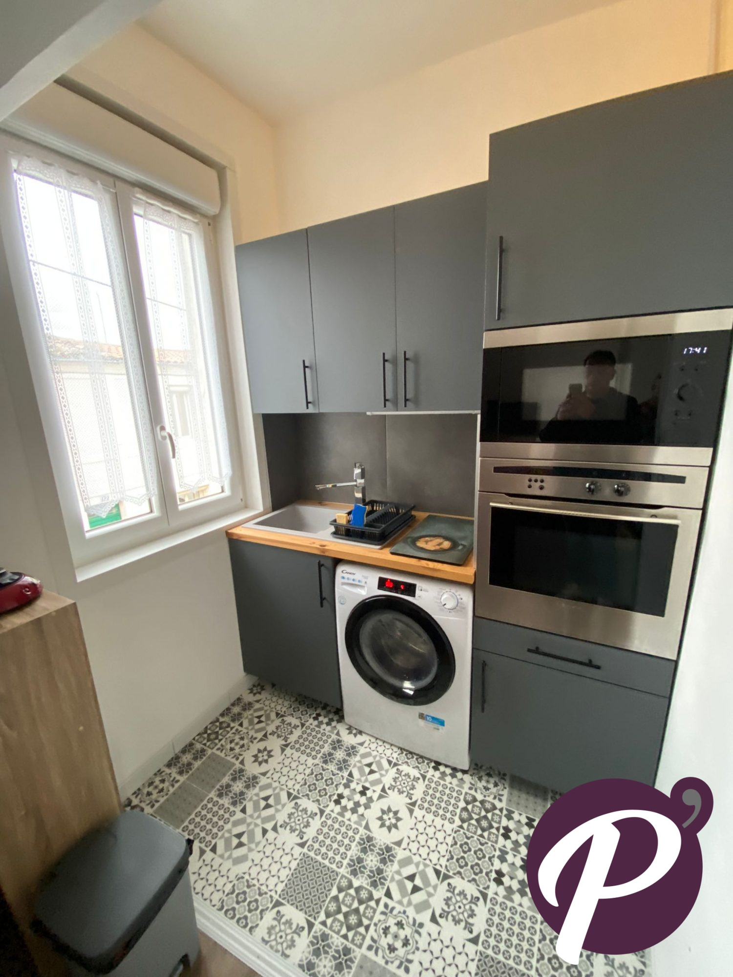 avec une pièce de vie, salle de bain, cuisine équipée, une cour, loué 450€/mois début du bail 2021.