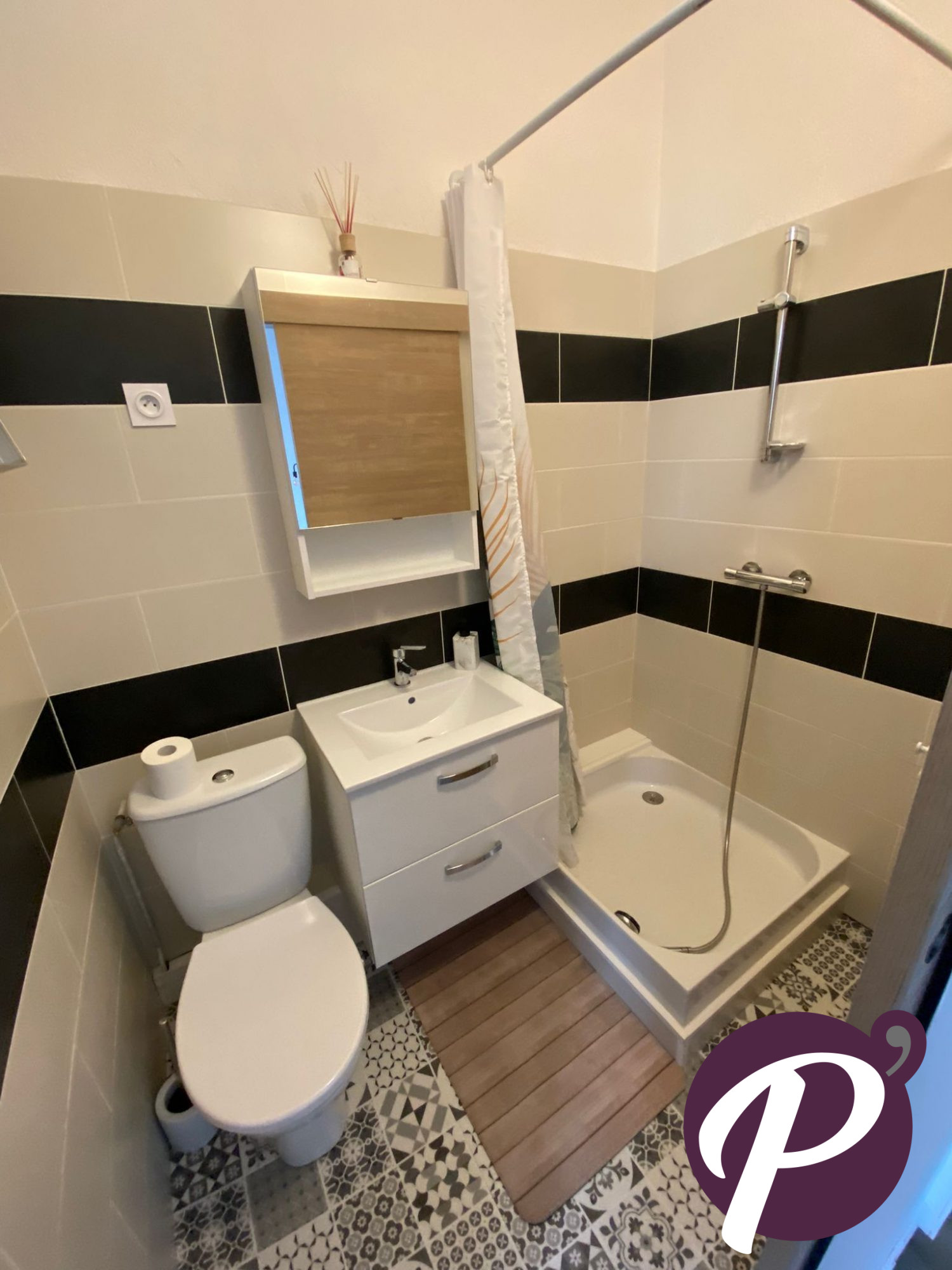 1er étage un T2 meublé avec une cuisine équipée, salle d'eau et une chambre, loué en saisonnier ou possibilité de le louer 650€/ mois.