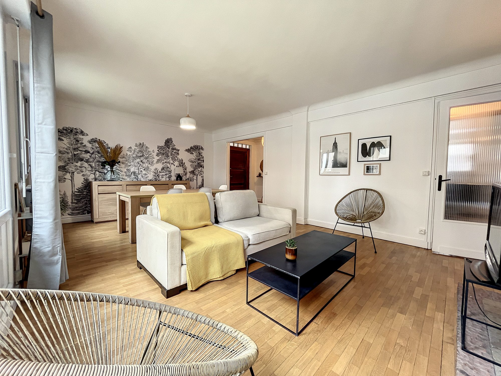 Appartement de 118 m2 possedant 4 chambres individuelles partageant une cuisine aménagée et équipée, un salon-séjour, 2 salles de bains et 2 wc.