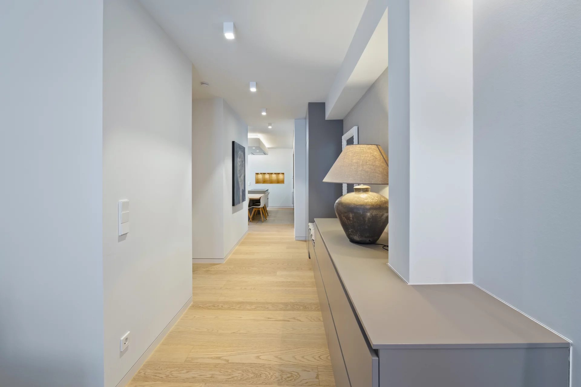 Situé au cœur de la Ville Haute de Luxembourg, dans la très prisée Rue Beaumont, ce remarquable appartement meublé se trouve au 3ème étage d’une résidence contemporaine de standing avec ascenseur. Un bien rare qui combine volumes généreux, élégance architecturale et prestations haut de gamme, dans l’un des emplacements les plus recherchés de la capitale. Dès l’entrée, l’appartement séduit par sa luminosité naturelle, ses lignes épurées et la qualité de ses finitions. L’espace de vie principal offre une atmosphère chaleureuse et raffinée, sublimée par un parquet en bois massif et de larges ouvertures. La cuisine ouverte, entièrement équipée, s’intègre parfaitement à l’espace séjour et salle à manger, créant un ensemble fluide et convivial, idéal pour recevoir ou profiter d’un quotidien urbain confortable. La mezzanine apporte une dimension architecturale forte et distinctive. Elle peut accueillir un espace bureau, une bibliothèque, un coin détente ou un espace polyvalent selon les besoins du futur occupant, tout en conservant une belle hauteur sous plafond et une véritable sensation d’espace. L’appartement dispose de deux chambres élégantes et confortables, pensées pour offrir calme et intimité. Deux salles de bains contemporaines, aux finitions soignées, complètent l’espace nuit, ainsi que deux WC séparés, garantissant un confort optimal au quotidien. Une buanderie privative intégrée à l’appartement renforce la praticité et le standing du bien. Les prestations techniques répondent pleinement aux exigences actuelles avec un vidéophone, un ascenseur, une excellente performance énergétique classée B tant pour la performance que pour l’isolation thermique, ainsi que des charges de copropriété de 400 EUR par mois. Un emplacement de stationnement intérieur peut être proposé en supplément, sous réserve de disponibilité, un avantage rare et recherché en plein centre-ville. Disponible immédiatement, cet appartement s’adresse à des locataires à la recherche d’un bien d’exception, offrant espace, modernité et adresse prestigieuse, au cœur de la Ville Haute de Luxembourg.