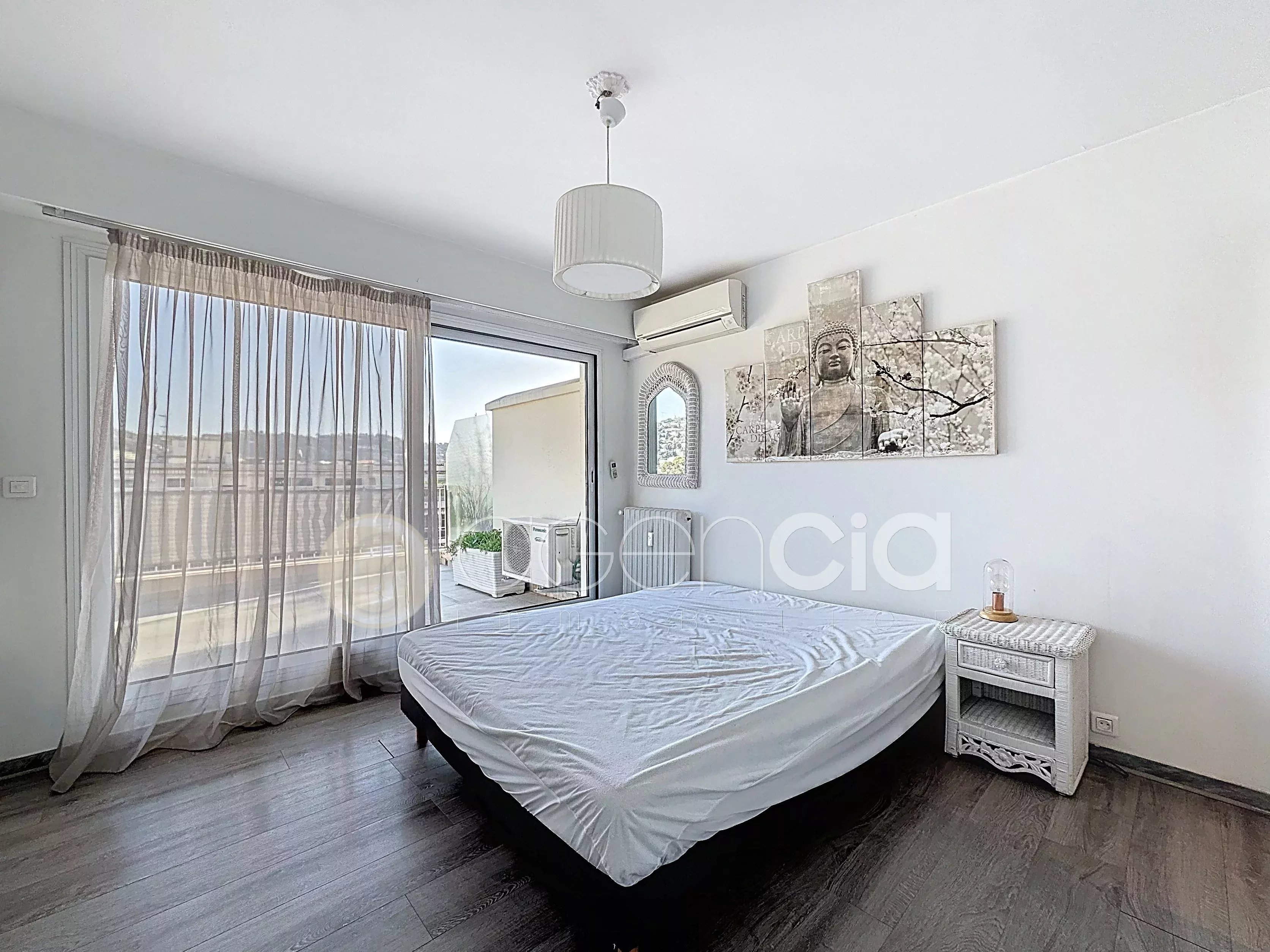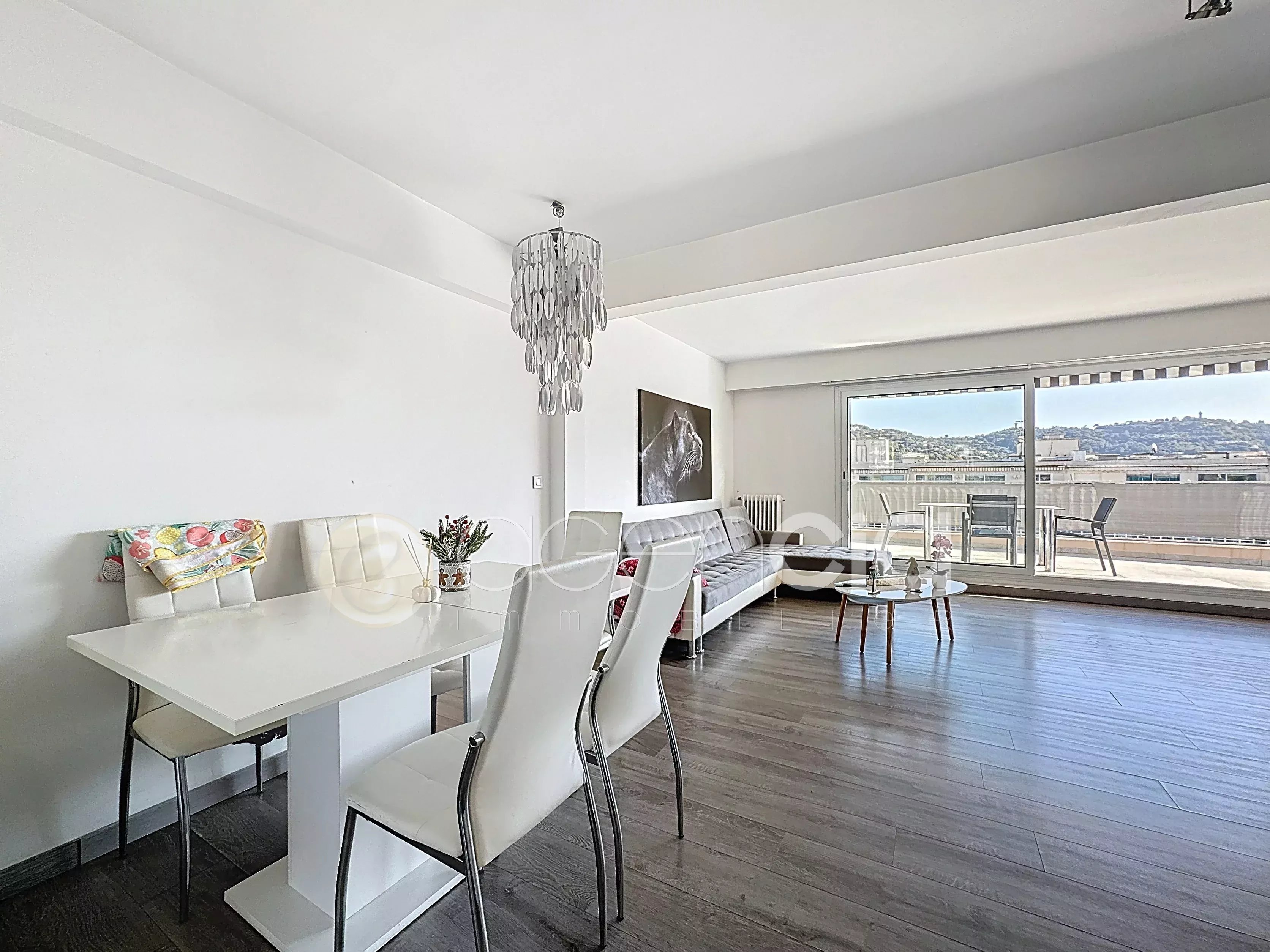 Découvrez ce magnifique appartement de 84,94 m² situé vers le lycée Carnot. Il se compose d'un spacieux séjour avec cuisine ouverte, une chambre avec placard et salle de bain/wc, une chambre avec placard et salle d'eau, nombreux placards et deux grandes terrasses de 35 m² chacune. Cave et parking en sous-sol. Ascenseur, chauffage, eau chaude et eau froide dans les charges. Climatisation, double vitrage, et de grandes baies vitrées coulissantes inondant l'espace de lumière. L'ascenseur s'arrête au 7e étage, il faudra emprunter les escaliers pour arriver à l'appartement. Situé dans un quartier proche de toute commodité, cet appartement offre une opportunité exceptionnelle de vivre à proximité des attractions dynamiques de Cannes tout en profitant d'un cadre de vie confortable.