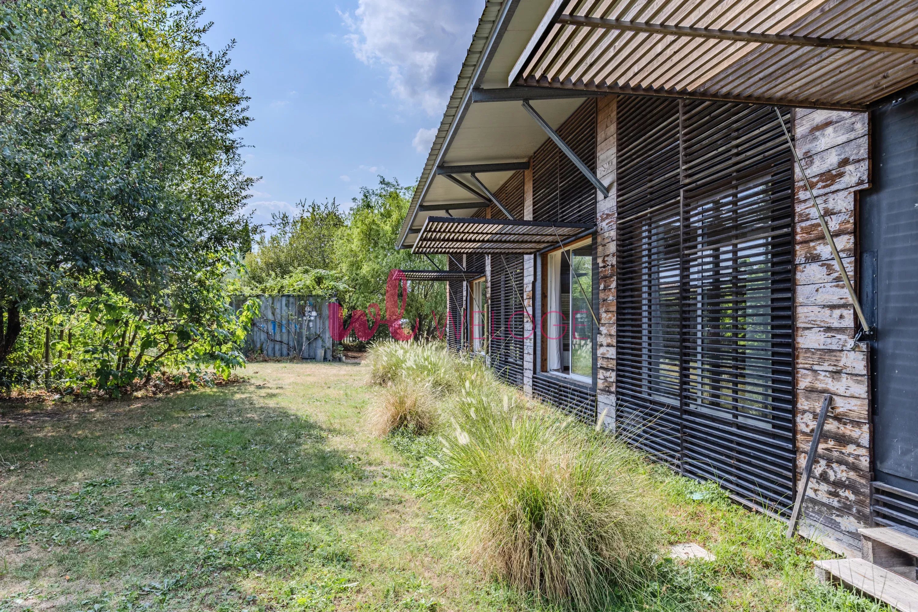 Votre consultante Weloge a le plaisir de vous présenter cette maison d'architecte unique de 205 m2, à Montussan, à seulement 20 minutes de Bordeaux. Un lieu de vie rare, où le pin Douglas et l'acier se rencontrent dans une harmonie contemporaine et chaleureuse. Dès l'entrée, une spacieuse cuisine ouverte prolonge la convivialité vers un séjour lumineux. Quelques marches mènent à un salon décaissé, véritable pièce signature, orienté plein sud. Les brise-soleil modulent la lumière naturelle et créent une atmosphère changeante tout au long de la journée. Le couloir distribue quatre chambres dont deux suites, ainsi qu'une salle de bain familiale. L'agencement a été pensé pour combiner intimité et fluidité de circulation. Inspiré des anciens séchoirs à tabac, cette réalisation contemporaine marie avec élégance architecture et lignes modernes. Prestations haut de gamme et volumes généreux : un lieu à la fois apaisant et vibrant. Vous disposez d'un confort énergétique grâce à une climatisation réversible combinée à un poêle à bois. Implantée au calme, le long d'un chemin bordé de vignes, cette propriété s'épanouit dans un jardin paysagé pensé pour la détente et la convivialité. Saule tortueux, goyavier du Brésil, figuier, cerisier et graminées composent un décor vivant et gracieux au fil des saisons. Niché dans un environnement résidentiel préservé, ce bien bénéficie : - d'un accès rapide aux commerces, écoles et à la rocade - d'un cadre familial renforcé par la présence d'un collège - et de la proximité de Bordeaux pour profiter de la vie urbaine sans renoncer au calme. Si vous recherchez un lieu de vie qui inspire, ressource et accueille vos plus beaux moments, cette propriété est faite pour vous. Contactez-nous dès aujourd'hui pour organiser une visite privée et en découvrir toutes les facettes ! Les informations sur les risques auxquels ce bien est exposé sont disponibles sur le site Géorisques : www.georisques.gouv.fr