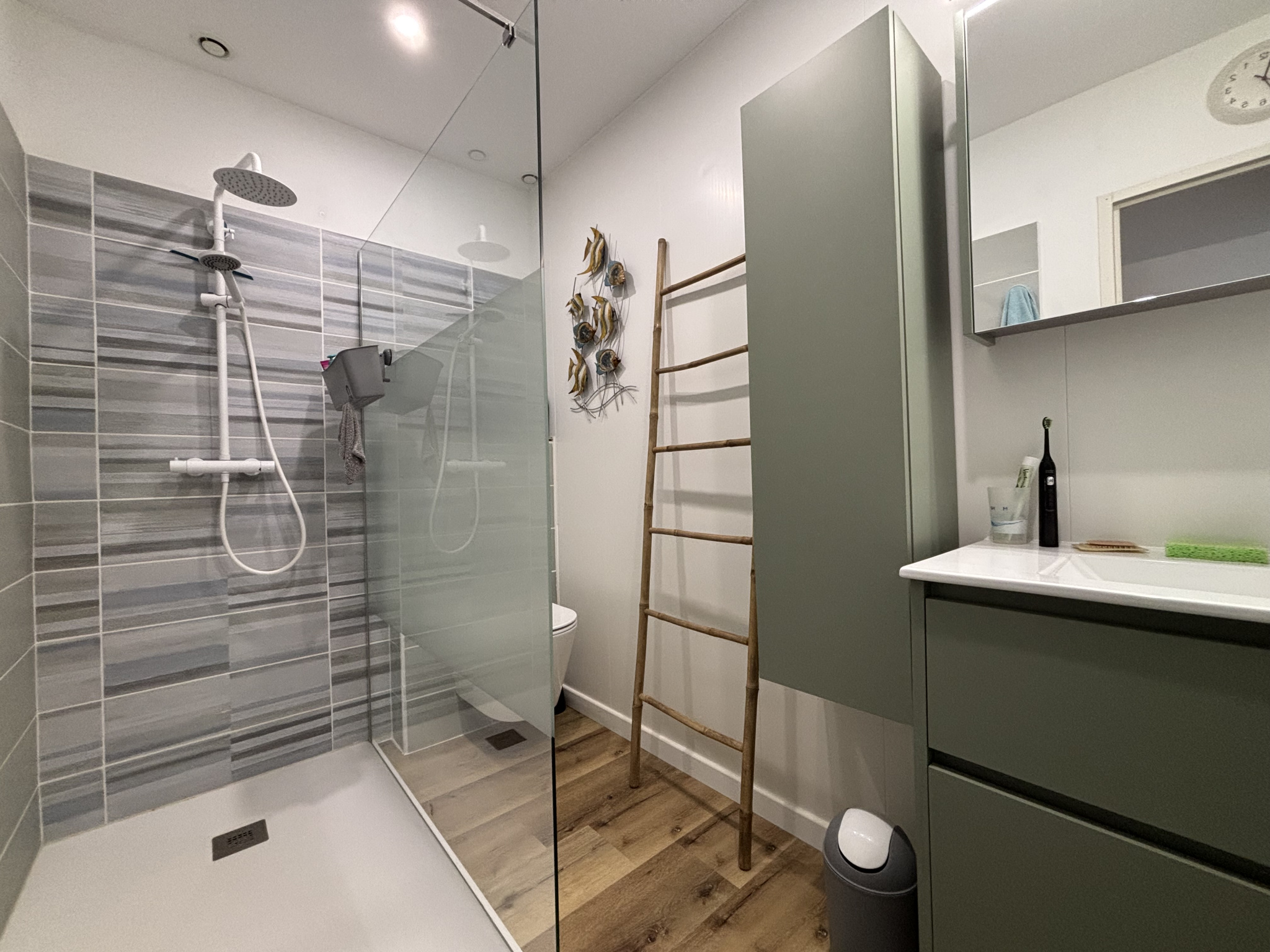 L'espace nuit se compose de deux chambres, d'une salle d'eau moderne avec WC et d'un deuxième WC indépendant.