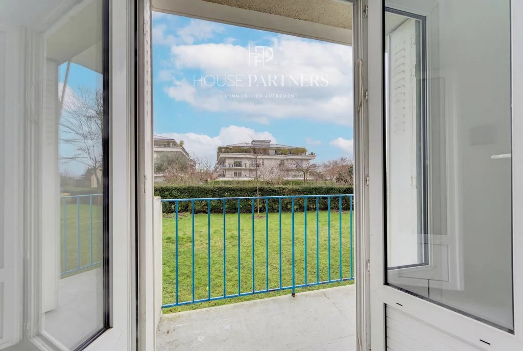 Balcon sans vis à vis avec vue sur le jardin de la résidence.