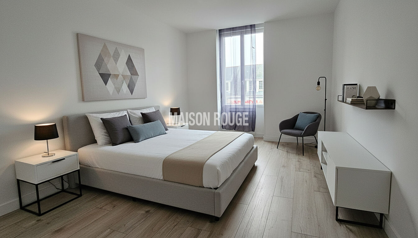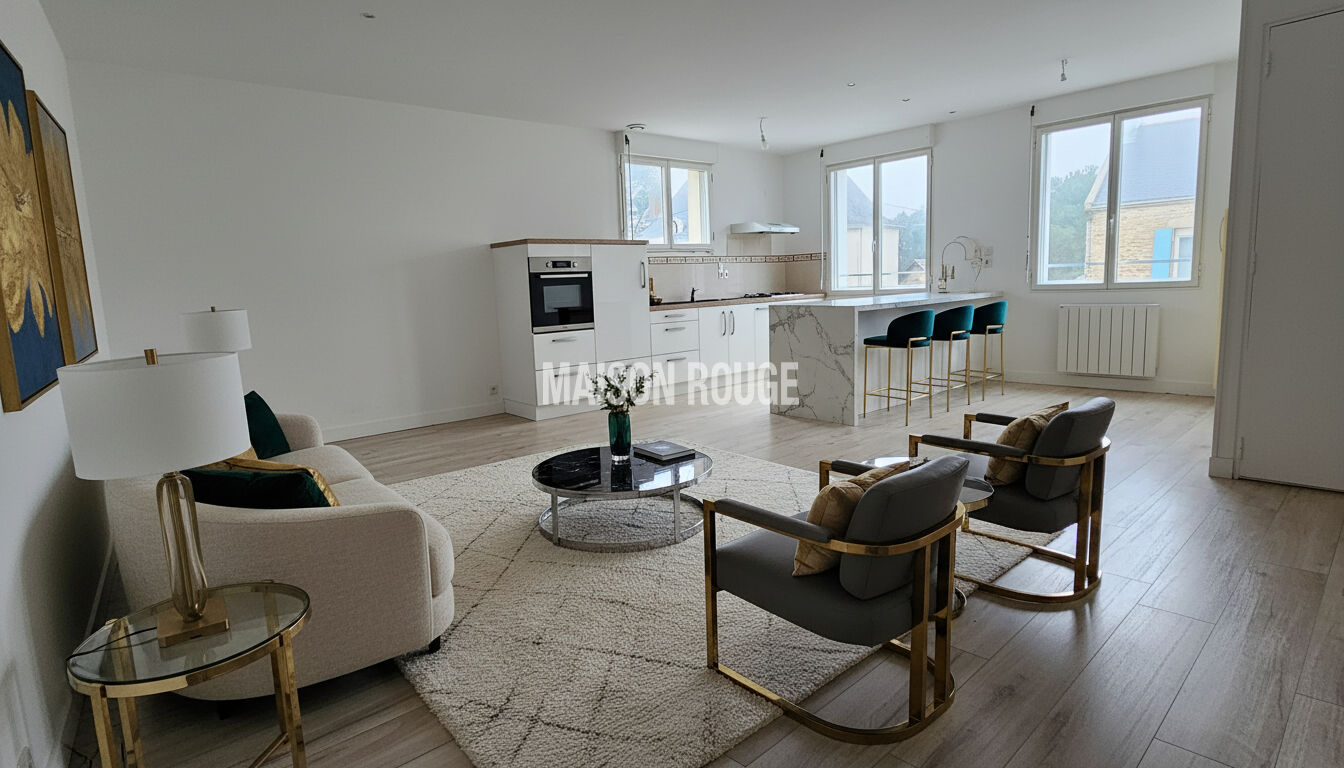 Maison Rouge Sarzeau Au coeur du centre-ville de Sarzeau, à deux pas de toutes les commodités, découvrez ce superbe appartement entièrement rénové de 104,97 m², situé au 1er étage d'une petite copropriété prisée. Ses atouts majeurs : Grande pièce de vie lumineuse : séjour + salon + cuisine équipée 3 chambres spacieuses, dont une suite parentale avec salle de bains et WC privatifs Salle d'eau moderne avec WC Buanderie indépendante Parking privatif extérieur, très recherché en centre-ville Rénové avec goût, cet appartement offre de superbes volumes, une luminosité rare, et un confort de vie idéal pour tout faire à pied : commerces, marché, école, services et animations du bourg. Un bien rare sur le secteur, parfait pour une résidence principale, un pied à terre haut de gamme ou un investissement de qualité. Une opportunité à ne pas manquer : venez ressentir le charme et l'espace de ce lieu d'exception ! Prix FAI : 340 000 euros dont 4.62 % honoraires TTC à la charge de l'acquéreur. Copropriété de 11 lots - dont 6 lots habitation. (Pas de procédure en cours). Charges annuelles : 480 euros.