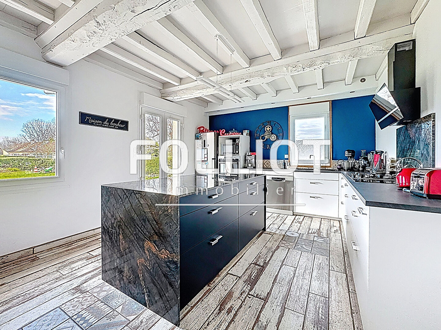 Située sur la commune recherchée d'Éterville, à seulement quelques minutes du centre-ville de Caen, cette superbe maison d'environ 198 m² vous séduira par ses volumes spectaculaires, sa luminosité et son environnement paisible. Édifiée sur un terrain de plus de 1430 m², totalement clos, elle offre un cadre de vie idéal pour une famille en quête d'espace et de confort. Dès l'entrée, vous découvrirez une pièce de vie exceptionnelle de plus de 70 m², baignée de lumière, avec un salon impressionnant bénéficiant d'une hauteur sous plafond proche de 8 mètres. Ce volume rare s'ouvre sur une mezzanine aménagée en salle de billard, apportant une touche unique et conviviale à l'ensemble. Côté nuit, la maison dispose de 4 chambres, dont une au rez-de-chaussée, parfaite pour une vie de plain-pied ou pour recevoir. Vous bénéficierez également de deux pièces d'eau (1 salle d'eau + 1 salle de bain) et 2 WC, pour un confort optimal au quotidien. Enfin, un sous-sol complet vient compléter ce bien, offrant de nombreuses possibilités : rangement, atelier, stockage, espace loisirs, etc. Emplacement privilégié : commune agréable, proche de Caen, avec accès rapide aux commodités et axes routiers. Un bien rare sur le secteur, idéal pour les amoureux de beaux volumes et d'espaces extérieurs. Date de réalisation du Diagnostic de Performance Energétique : 07/01/2026 Consommation énergie primaire : 263 kWh/m²/an - Rang E GES : Rang D Montant estimé des dépenses annuelles d'énergie pour un usage standard : entre 3840 euros et 5240 euros. Les informations sur les risques auxquels ce bien est exposé sont disponibles sur le site Géorisques : www.géorisques.gouv.fr