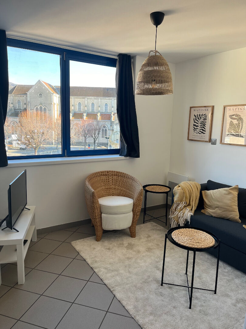 AMBERIEU EN BUGEY - Centre ville - Appartement T2 rénové et meublé- 3ème étage, ascenseur, env. 47 m². Comprenant : hall d'entrée avec placard - séjour avec coin cuisine équipée, 1 chambre - salle de bains (baignoire) - wc - cave en sous-sol - chauffage électrique DPE classe D GES B. Estimation du coût annuel des énergies pour un usage standard : entre 700 euros et 1 000 euros (Abonnement compris) -Année de référence des prix de l'énergie : 01/01/2021 Les informations sur les risques auxquels ce bien est exposé sont disponibles sur le site Géorisques : www.georisques.gouv.fr LOYER : 695 euros C.C - CHARGES : 60 euros - Dépôt de garantie : 1 270 euros - Frais d'agence à la charge du locataire : Constitution du dossier, visite, rédaction de contrat : 376 euros TTC - Etat des Lieux : 141 euros TTC DISPONIBLE DE SUITE