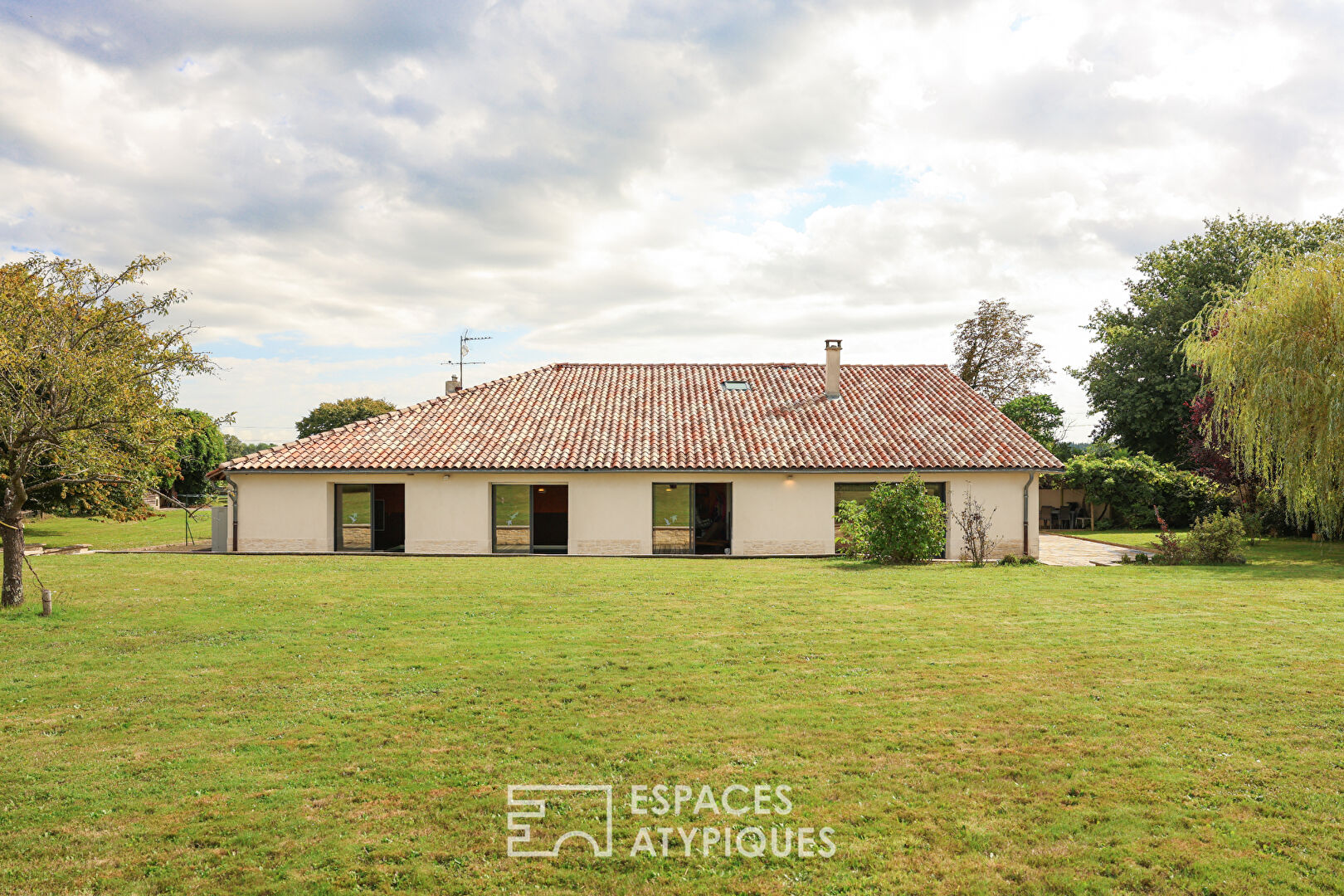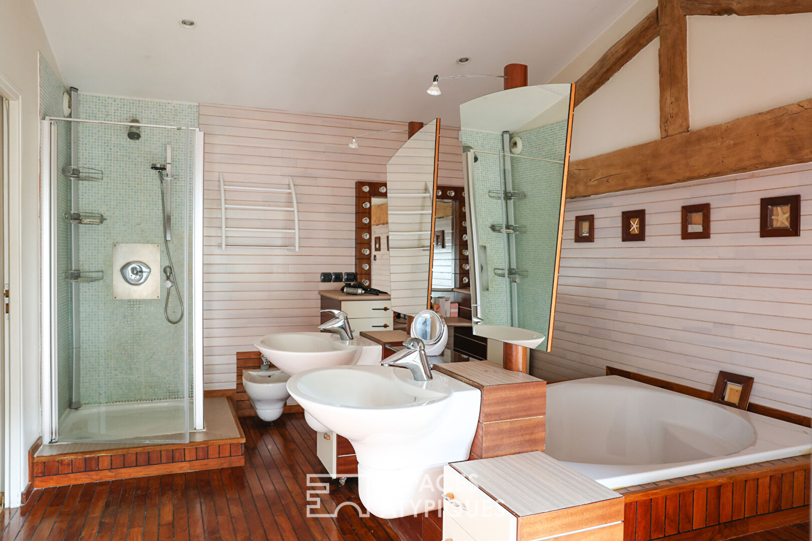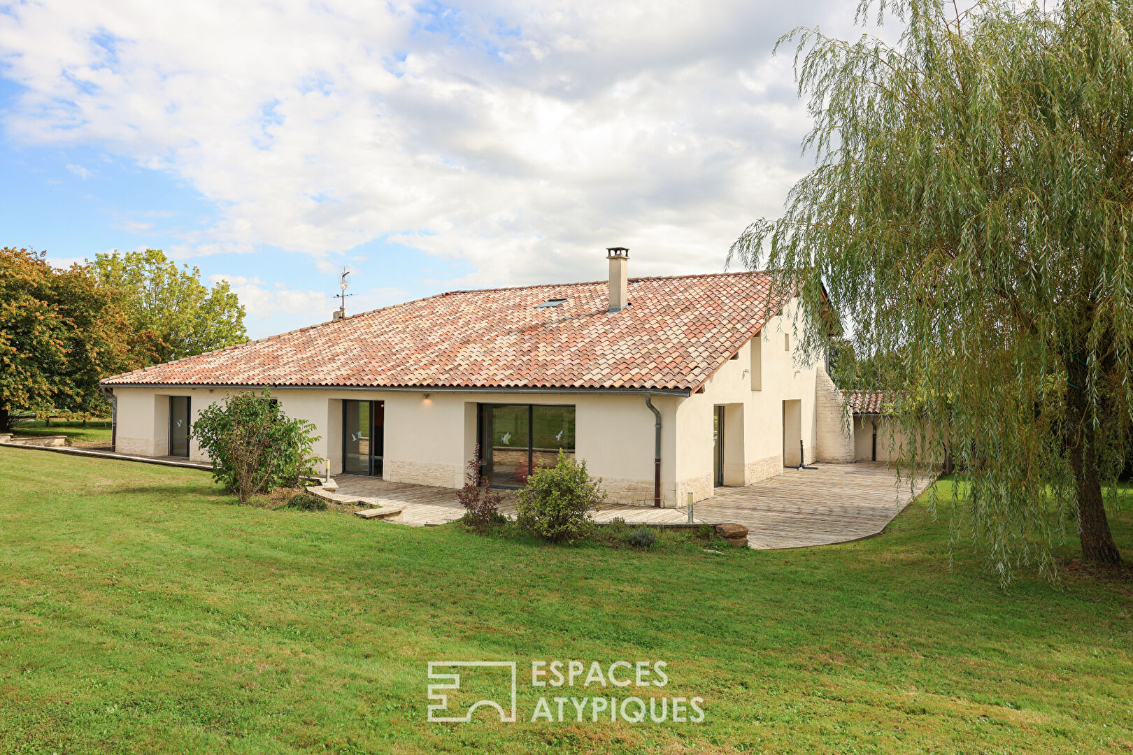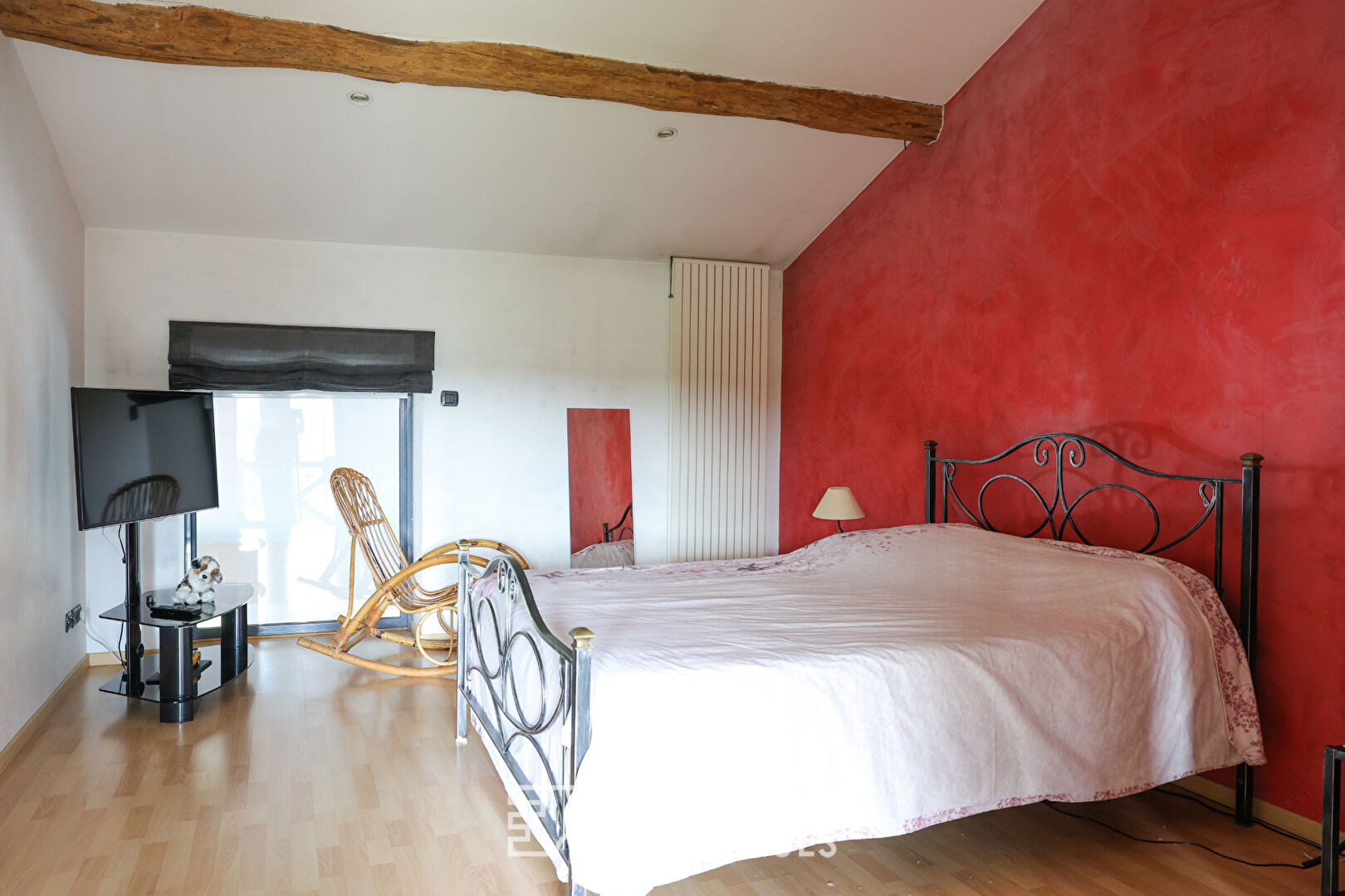 Idéalement située entre Bourg-en-Bresse et Mâcon, cette ancienne bâtisse rénovée séduit par ses volumes généreux et sa luminosité exceptionnelle, au coeur d'un environnement champêtre de 2,6 hectares de terrain pouvant accueillir des chevaux. Le rez-de-chaussée baigné de lumière se compose d'une cuisine indépendante, parfaitement équipée, avec îlot central et rangements optimisés, une salle à manger et une salon cosy avec cheminée, avec accès terrasse pour toutes les pièces. Pour le côté nuit, un bureau et deux chambres se partagent une salle de bains. Egalement, véritable surprise de la maison, un espace détente avec une belle piscine et un hammam pour rester zen toute l'année. L'étage offre une suite parentale avec salle de bains privative, ainsi trois chambres supplémentaires et un espace loisirs. A l'extérieur, le terrain sans vis-à-vis offre une vue dégagée sur la campagne environnante, propice à de belles ballades pédestres, cyclistes ou équestres. Un garage double de 80 m² et un hangar de 150 m², comprenant un espace de stockage et trois boxes à chevaux, complètent les prestations. Le bien bénéficie d'un cadre rural paisible, tout en restant proche des commodités, commerces et ramassages scolaires. CLASSE ENERGIE : D/ CLASSE CLIMAT C : Prix moyens des énergies indexés sur les années 2021, 2022, 2023 (abonnements compris) : entre 5250 euros et 7130 euros. Les informations sur les risques auxquels ce bien est exposé sont disponibles sur le site Géorisques pour les zones concernées. Jean-Charles BUATOIS, 06.27.47.49.38. Agent commercial (EI), 911 278 737 RSAC. Bourg en Bresse. Jeancharles BUATOIS (EI) Agent Commercial - Numéro RSAC : 911278737 - Bourg en Bresse.