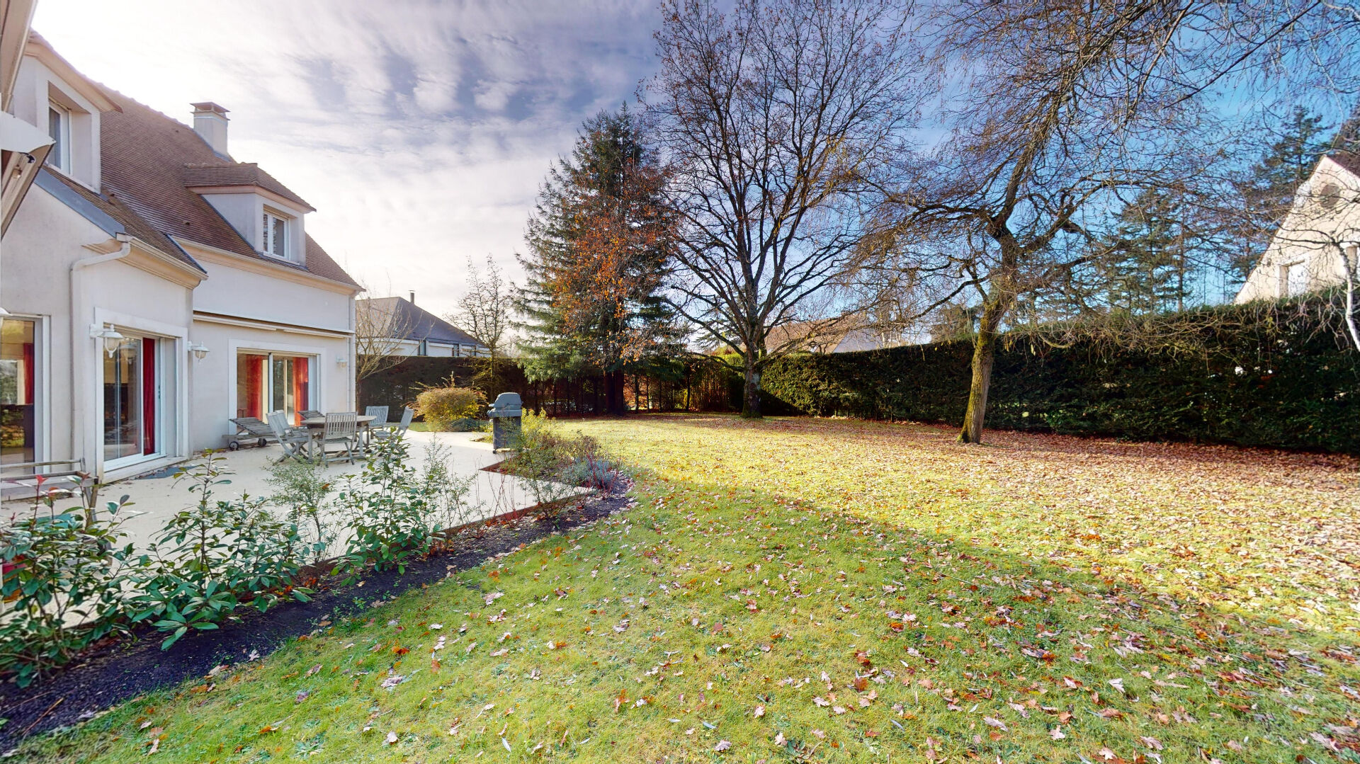 EXCLUSIVITE de L'Agence de Saint Nom. Sur le plateau Saint Gemme à Feucherolles, quartier très recherché près de Saint-Nom la Bretèche, à 7 mn de l' A14, 9 mn de l' A13, et à proximité immédiate de la Forêt de Marly. Une propriété récente, aux volumes et espaces généreux, qui offre tout le confort d'une maison neuve comme en témoigne ce magnifique DPE en C. Cette maison d'architecte, propose également un vaste jardin clos de 1485 m², plat et arboré, qui pourra assurément accueillir une belle piscine si tel est votre souhait. Au total, plus de 463 m² de surface au sol, qui comprennent de très belles pièces : un séjour triple de 86 m², une cuisine et son arrière-cuisine pour 32 m², une chambre en rez de chaussée; 4 belles chambres à l'étage dont une grande suite parentale de 46 m². Le sous-sol aménagé de près de 145 m², comprend une salle de jeux de 62 m². La pièce à vivre de 86 m² ouvre au sud sur la terrasse et le jardin. Ses cinq chambres ne demandent qu'à accueillir une grande famille. (3.45 % honoraires TTC à la charge de l'acquéreur.)