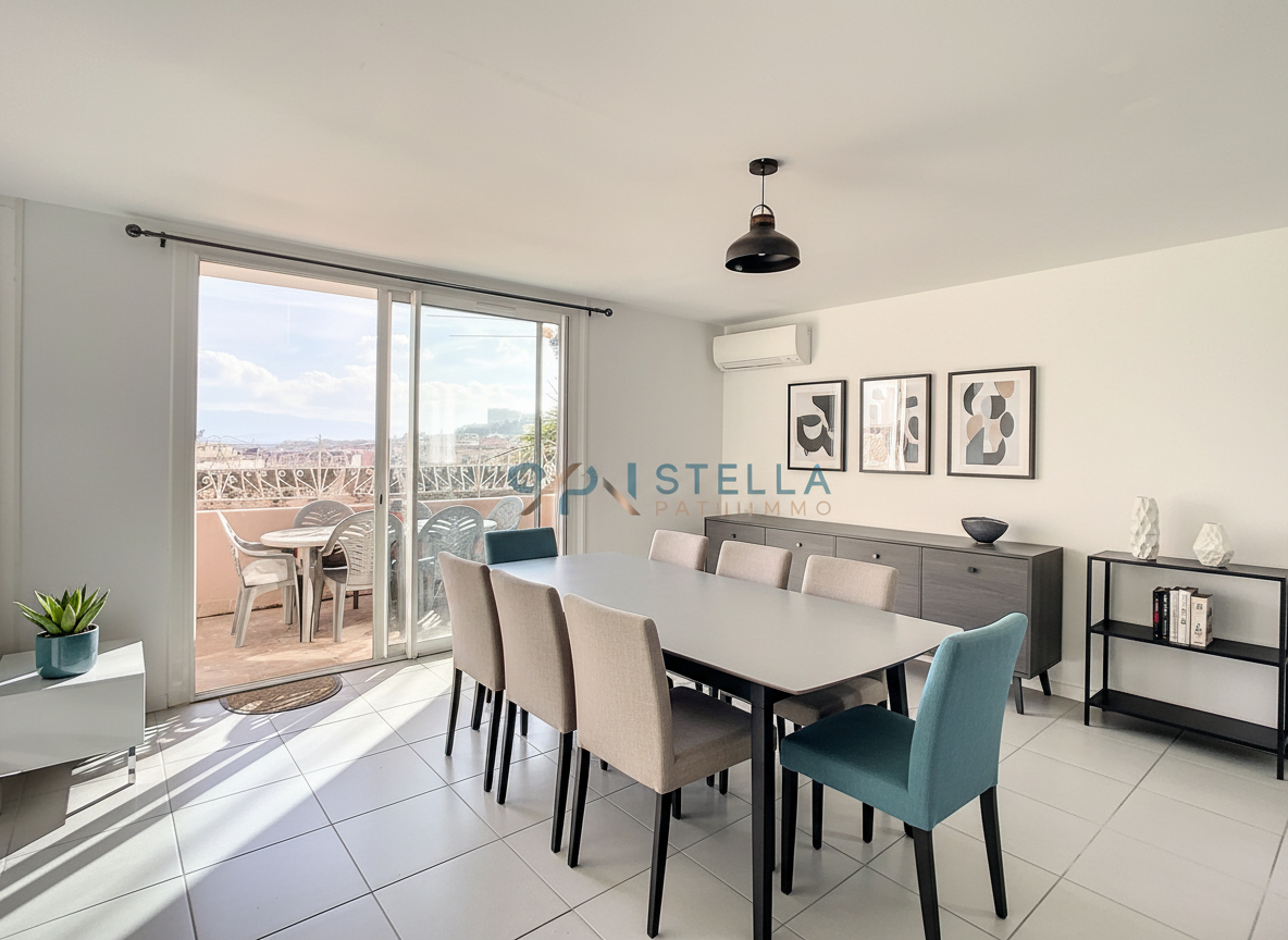 L'Agence Stella Patr'Immo vous propose à la vente, en exclusivité, ce bel appartement T4 meublé transformé en T3, situé à Castelvecchio. D'une superficie généreuse de 88 m², ce bien séduit par ses volumes, sa luminosité et sa vue mer dégagée. A l'origine configuré en T4, l'appartement offre aujourd'hui la possibilité de recréer une chambre supplémentaire selon les besoins et projets de ses futurs occupants. Il se compose d'un hall d'entrée, d'une salle d'eau avec WC, de deux chambres avec rangements, ainsi que d'une cuisine entièrement équipée ouverte sur un spacieux séjour / salle à manger. L'espace de vie s'ouvre sur un balcon filant d'environ 18 m², idéal pour profiter pleinement de l'extérieur et du panorama. L'appartement est entièrement climatisé, apportant un confort supplémentaire au quotidien. En option, possibilité d'acquérir un garage fermé d'environ 30 m², proposé en supplément, un atout rare et recherché sur le secteur. Un bien offrant souplesse d'aménagement, emplacement privilégié et cadre de vie agréable. Honoraires à la charge du vendeur. Alexandre DELERIA (EI) Agent Commercial - Numéro RSAC : 2 - .