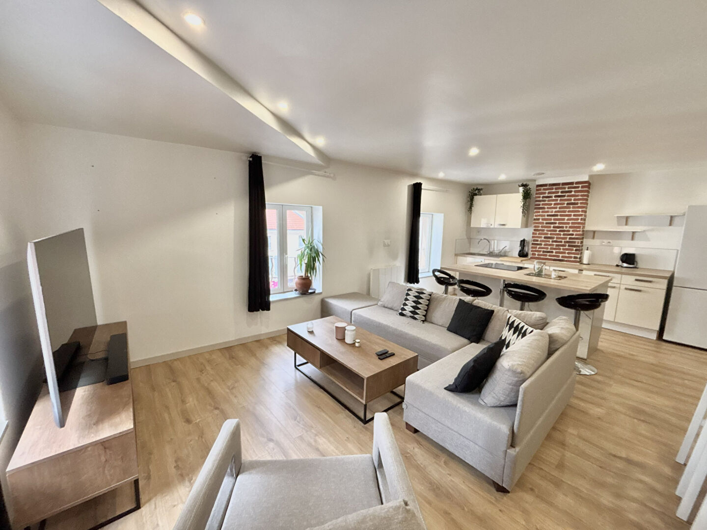 Région Auvergne - Rhône-Alpes - Département Loire (42) Votre agence immobilière IMMO FACTORY à Roanne vous propose, en hyper centre-ville, Cet appartement rénové de type 3 d'environ 71 m² habitables situé au troisième et dernier étage. Il se compose d'une entrée, d'un agréable séjour lumineux avec cuisine ouverte entièrement équipée et îlot central, idéal pour recevoir, de deux chambres dont une faisant office de bureau ou chambre d'amis, dont une avec dressing, d'une salle d'eau moderne, de WC séparés, ainsi que d'un grenier offrant un espace de rangement supplémentaire. Vous apprécierez son emplacement privilégié, à proximité immédiate des commerces, transports et écoles, permettant un mode de vie tout à pied. Idéal pour un premier achat ou un investissement locatif. Copropriété de 29 lots - dont 9 lots habitation. (Pas de procédure en cours). Charges annuelles : 1200 euros.